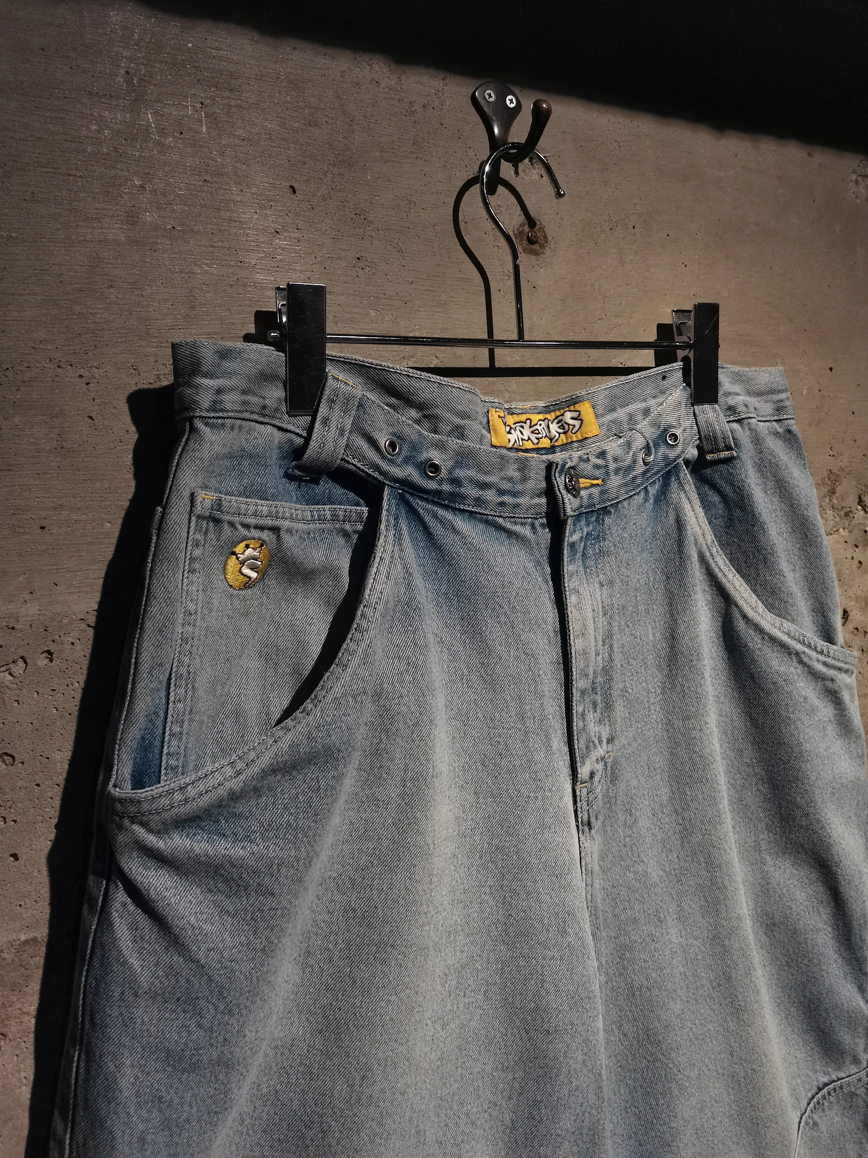 年代感を感じさせる低めに設置された大きめのバックポケットに、ストンと落ちるバギーなシルエットも最高。シンプルなデザインながらもバッチリと存在感を見せる仕上がりに。