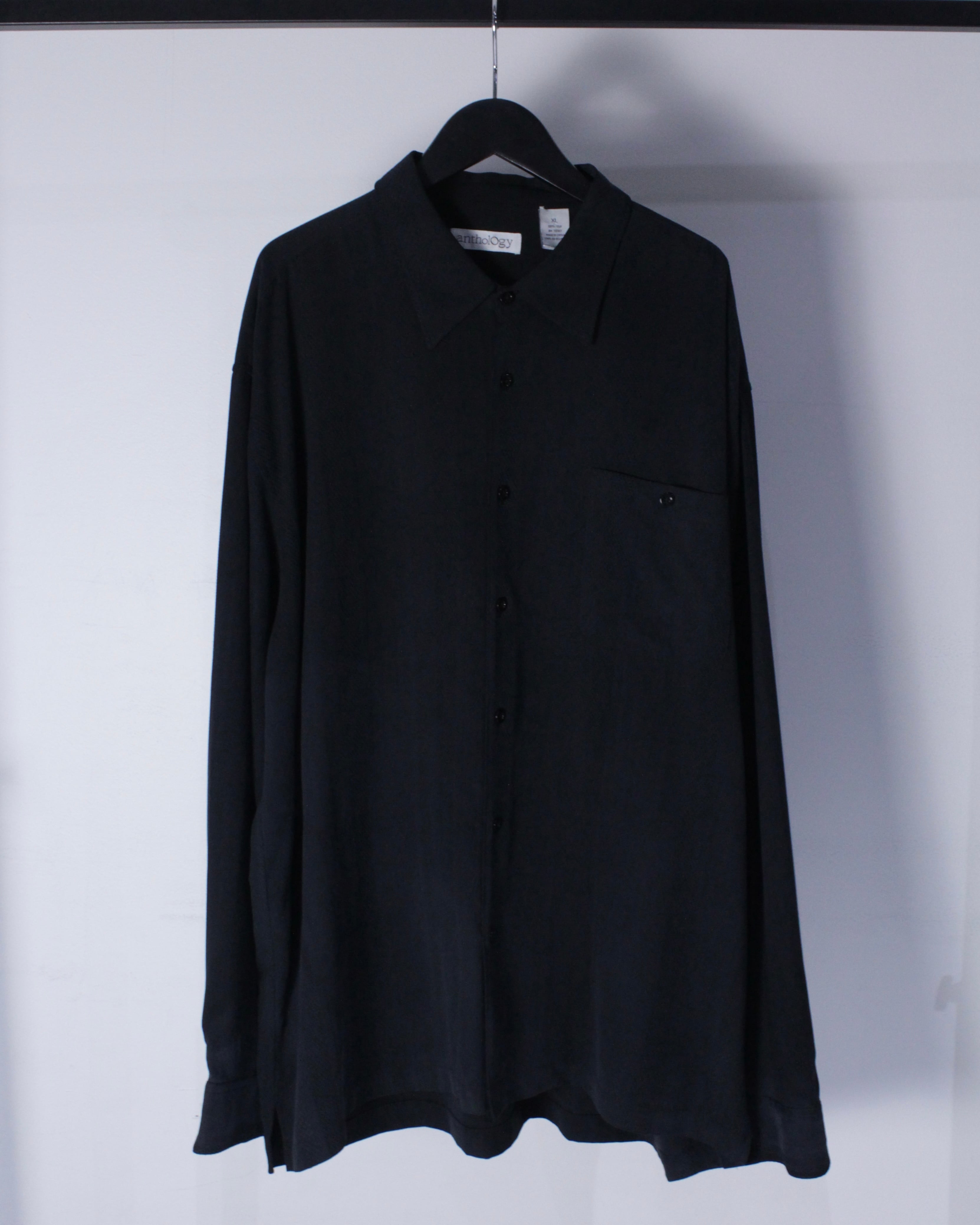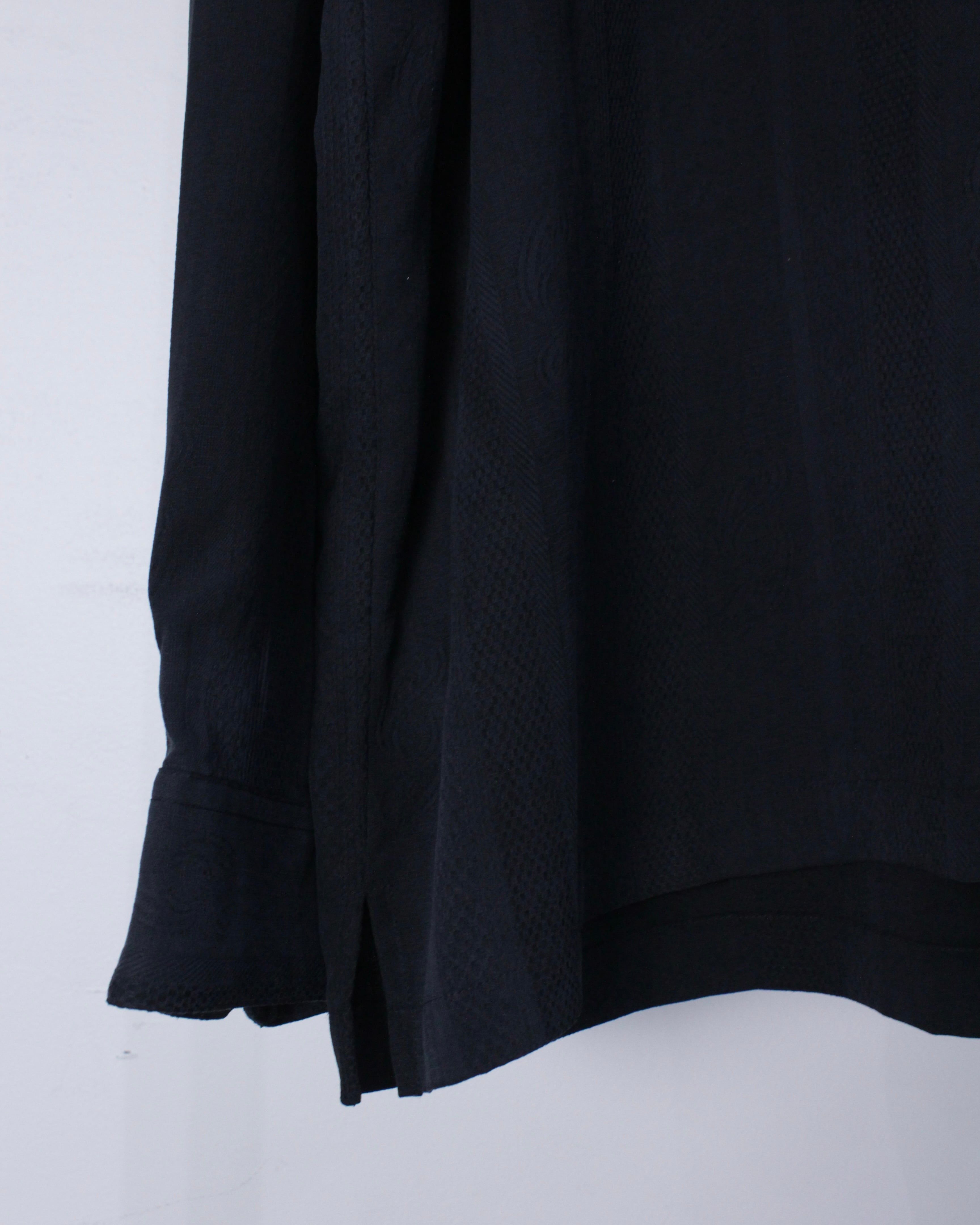 ブラックシルクを用いた、当店らしいモードな雰囲気を放つ長袖シャツ。織りによってメッシュ調の切り替えを施したボディに、奥行きのあるデザインに仕上がっています。