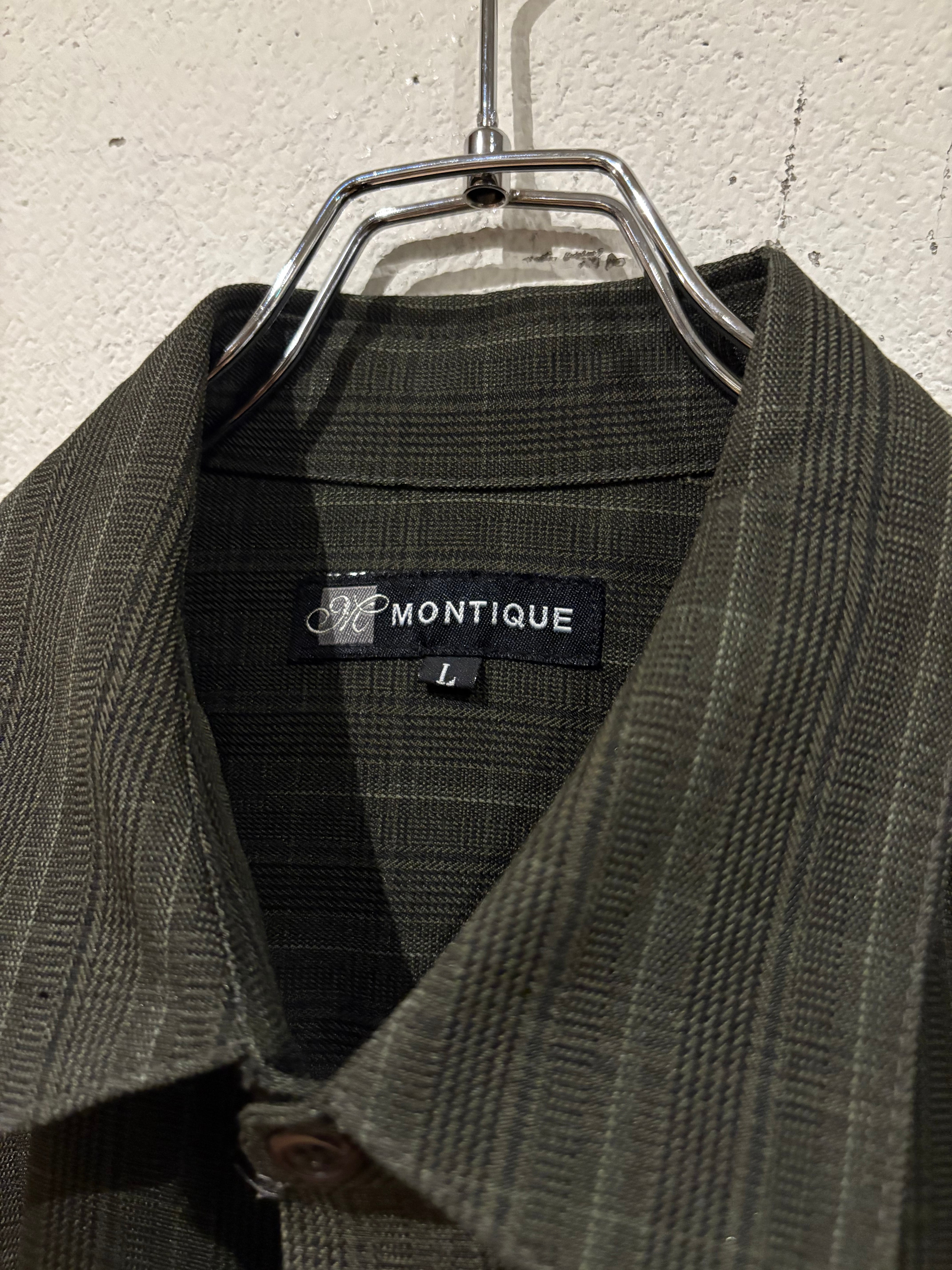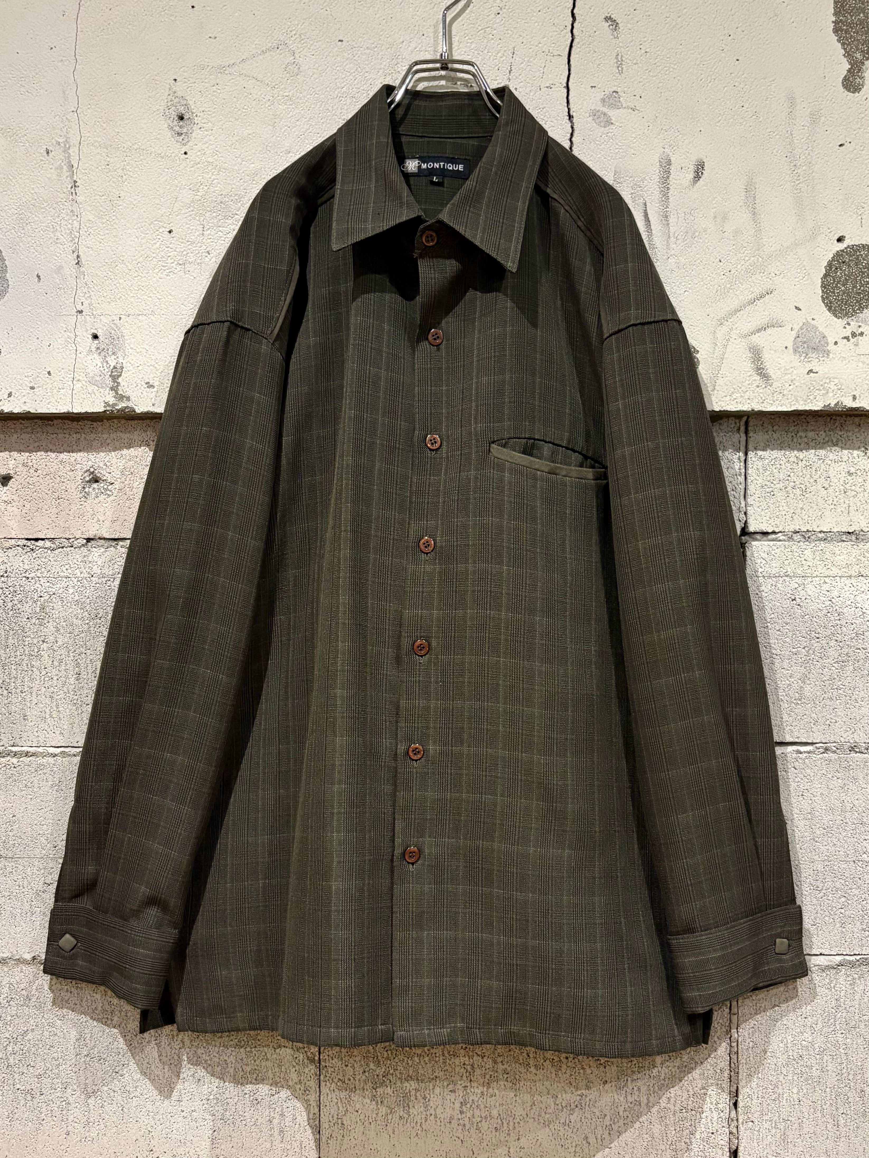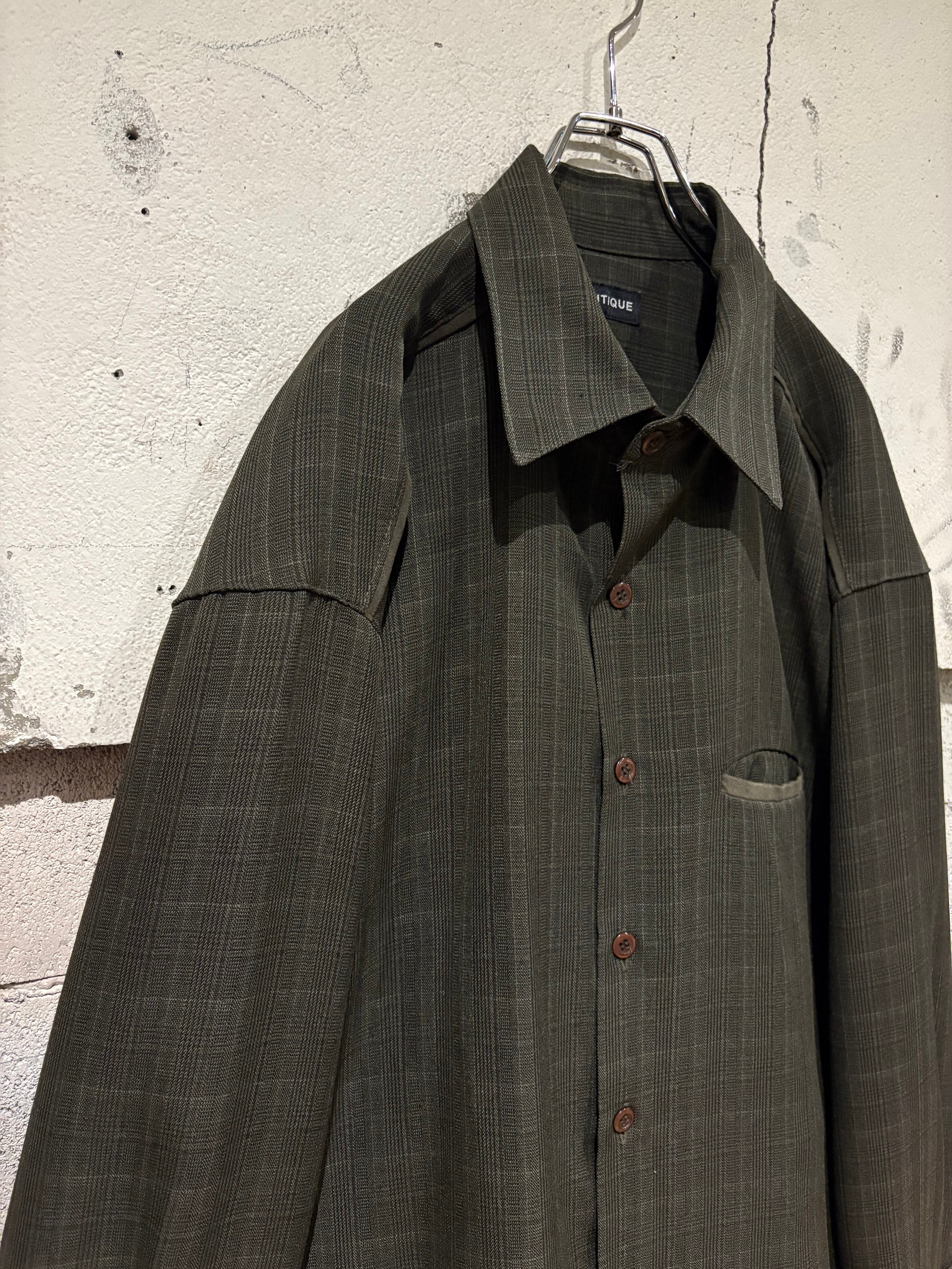 シャツの左胸にはスラッシュポケット、肩部分の切り替えには生地を一枚挟み立体感を演出。フロントはボタンタイプで、ルーズなサイジングのボックスシルエット。シャツとしてはもちろん、ジャケットとしてもお使いいただける優秀な型。