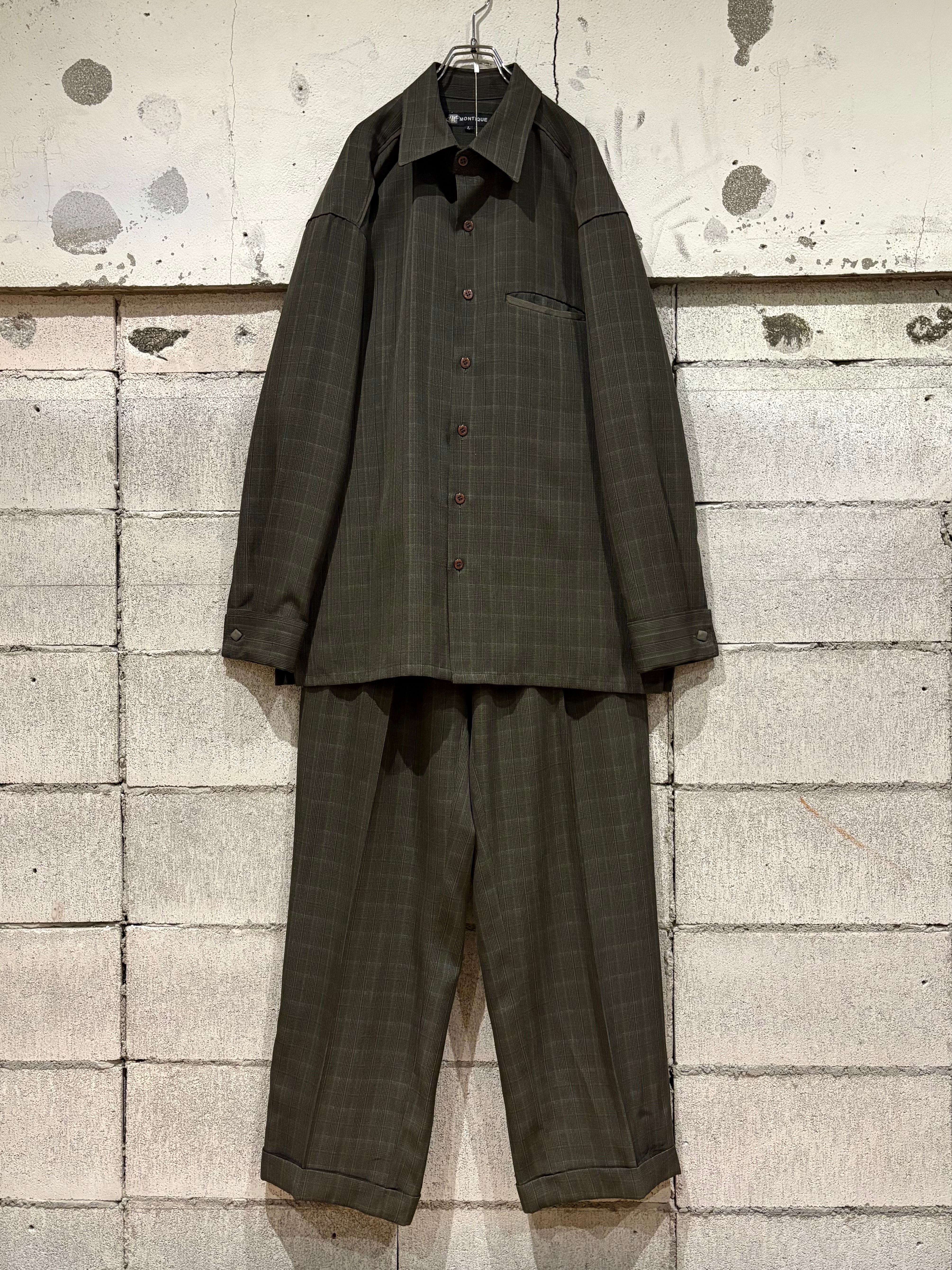 ポリレーヨンの柔らかく滑らかなボディに、チェック柄を載せた稀有なシャツセットアップ。