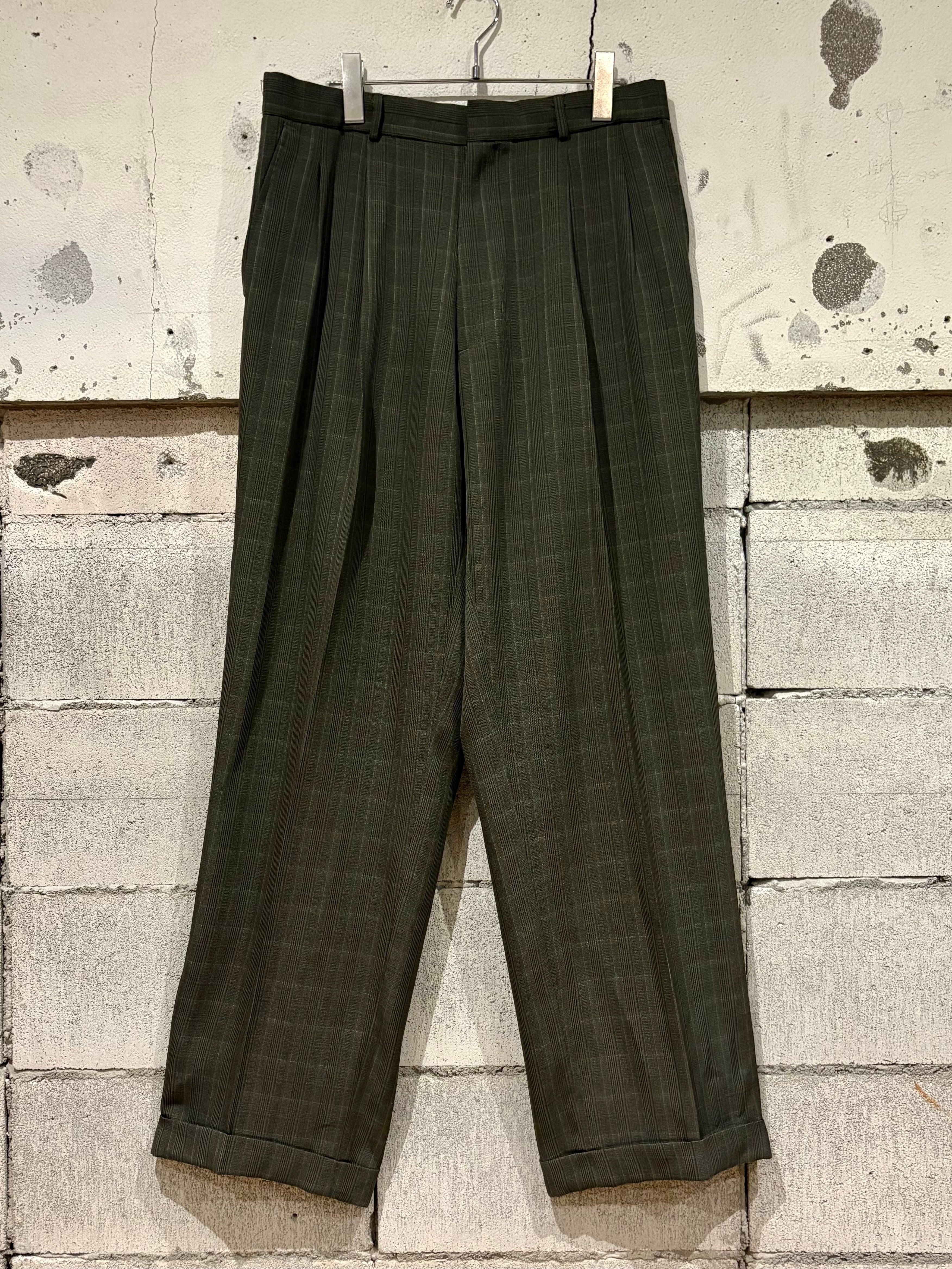 パンツはタック入り、ズドンとワイドで裾に向かって落ちるストレートシルエット。ウエストをギュッと絞った際のシルエットが非常に美しく、太めのスラックスって今まさに気分ですよね。