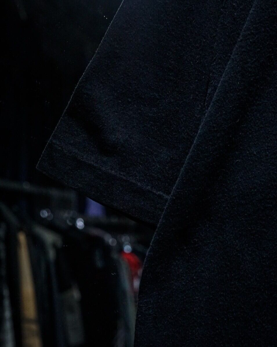 フェード感のあるブラックのボディに、左胸にはパッチポケットにネームのプリントをON。背面には月夜にコヨーテが遠吠えする姿を載せた1着。