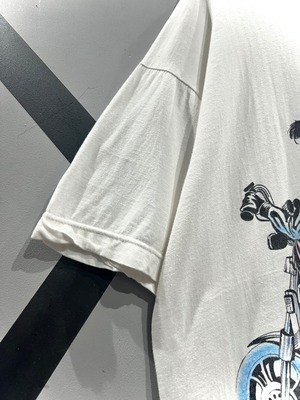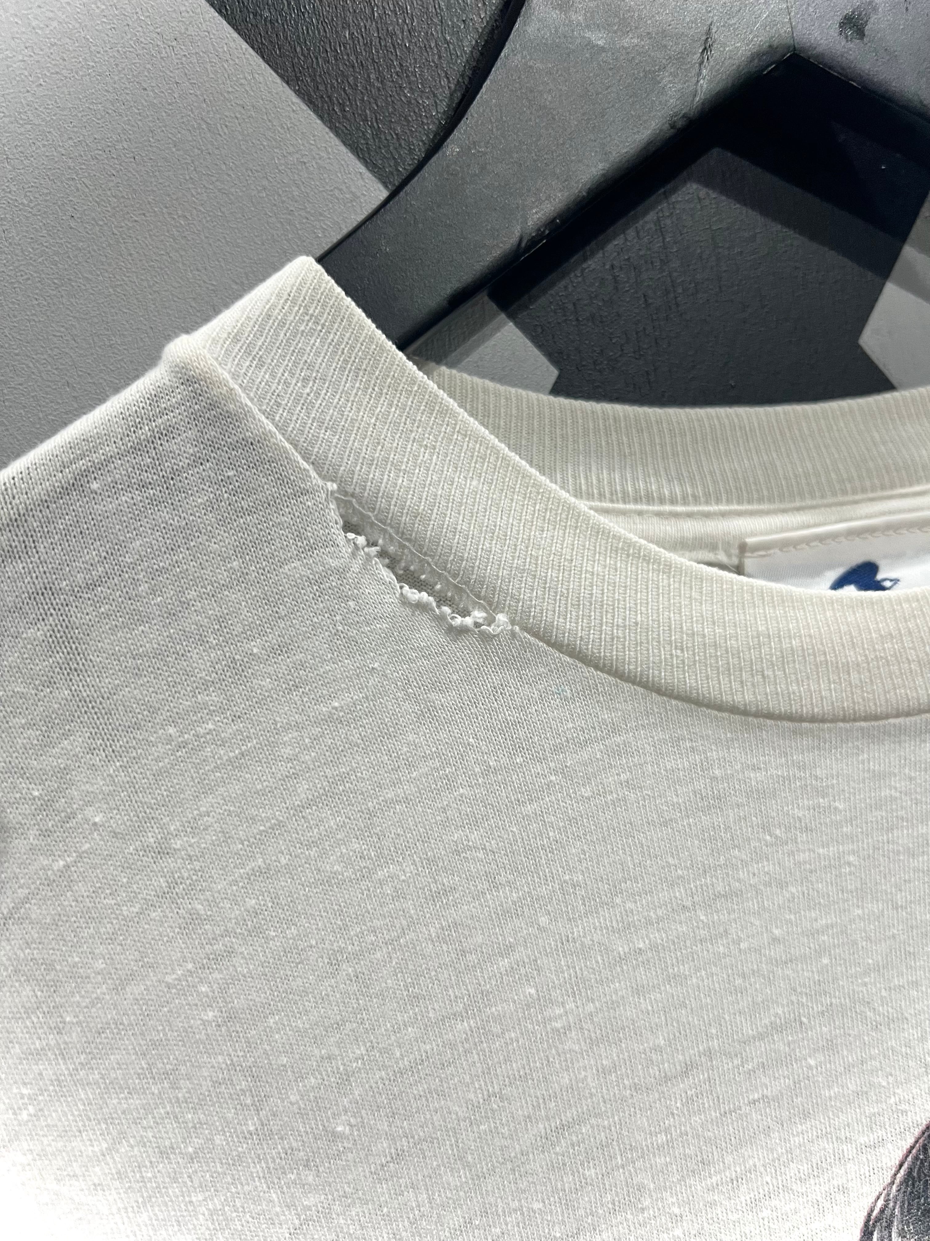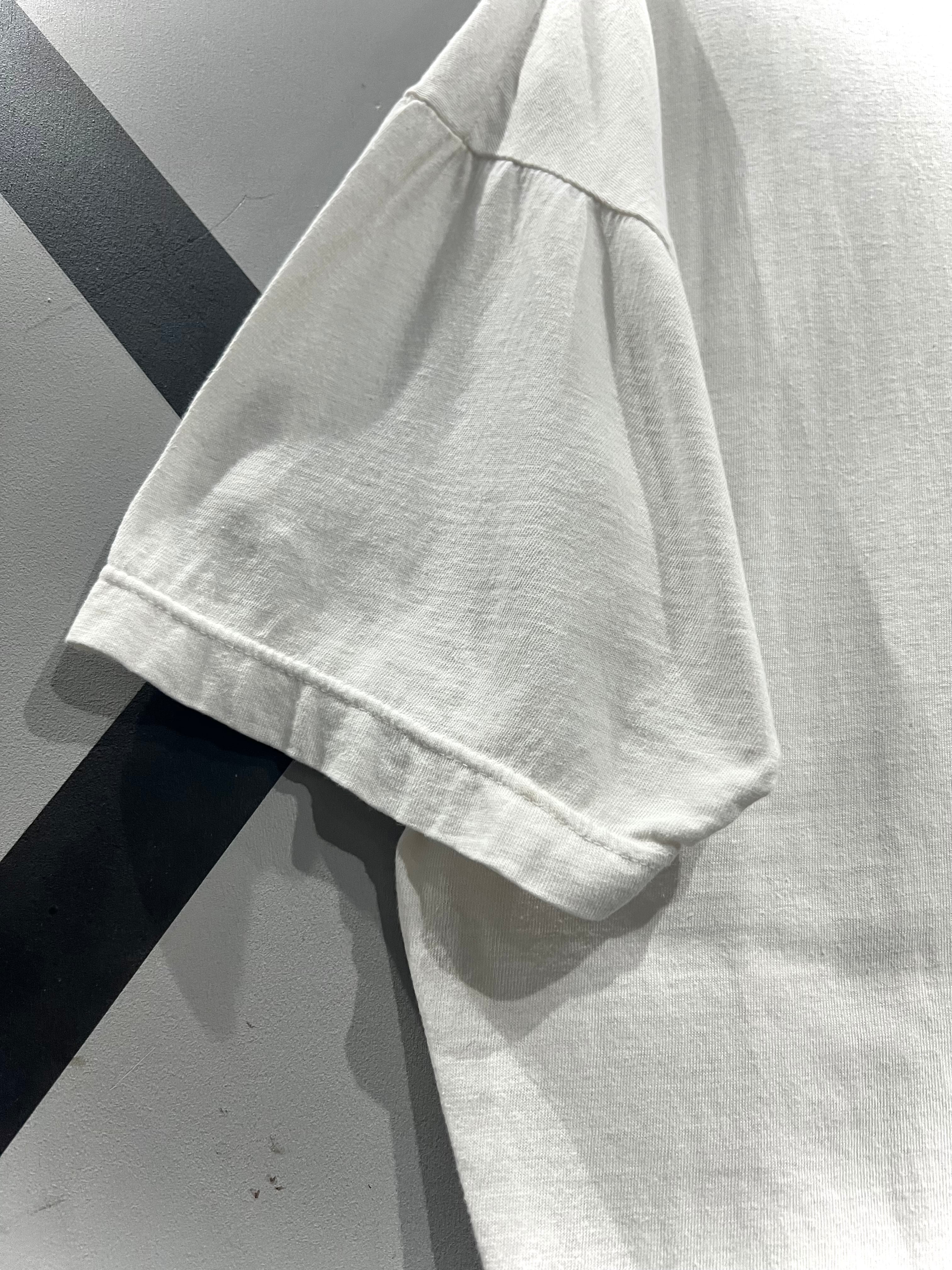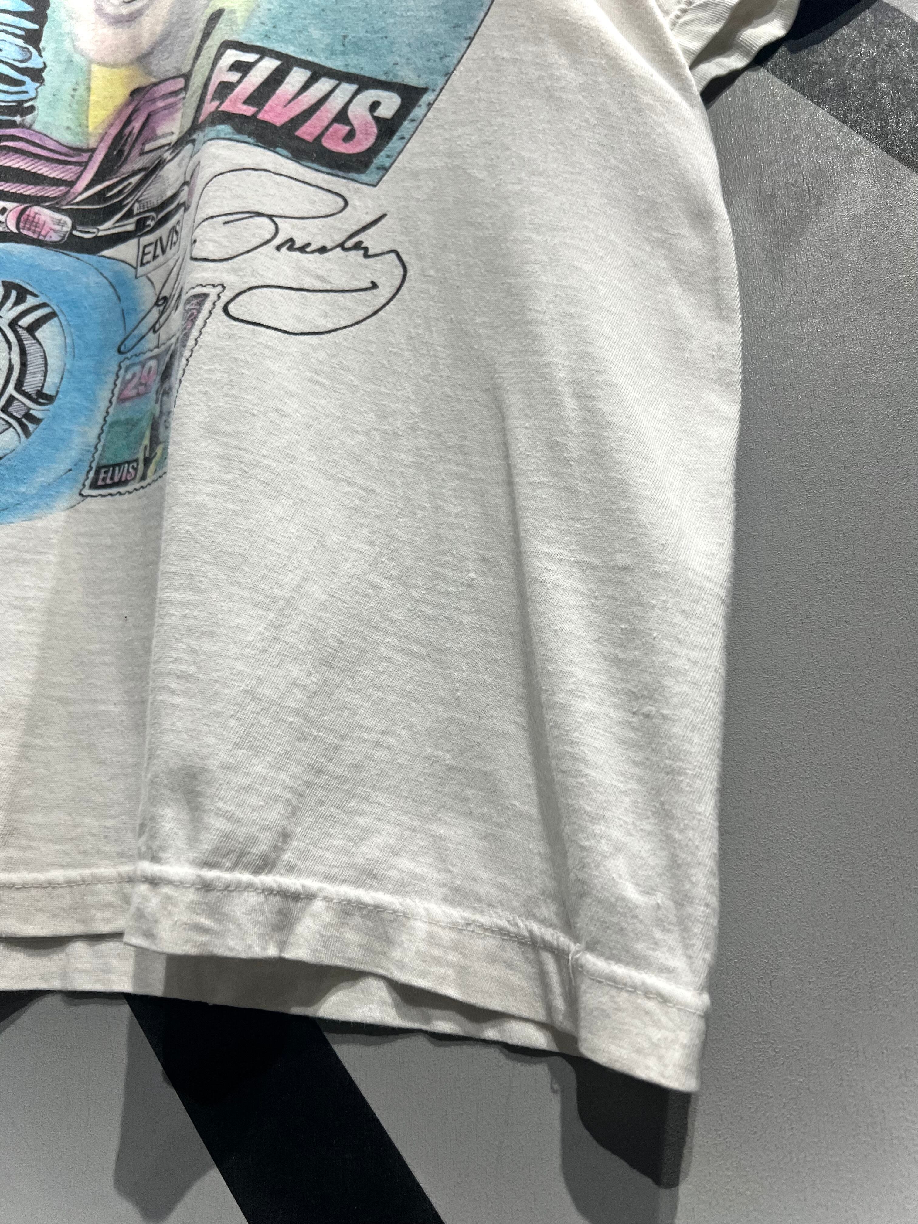こちらは経年変化によって程よくクタリの出たホワイトボディに、リアルなタッチで描かれたアート調のエルビスのプリントデザインをフロントに載せたUSA製のTシャツ。