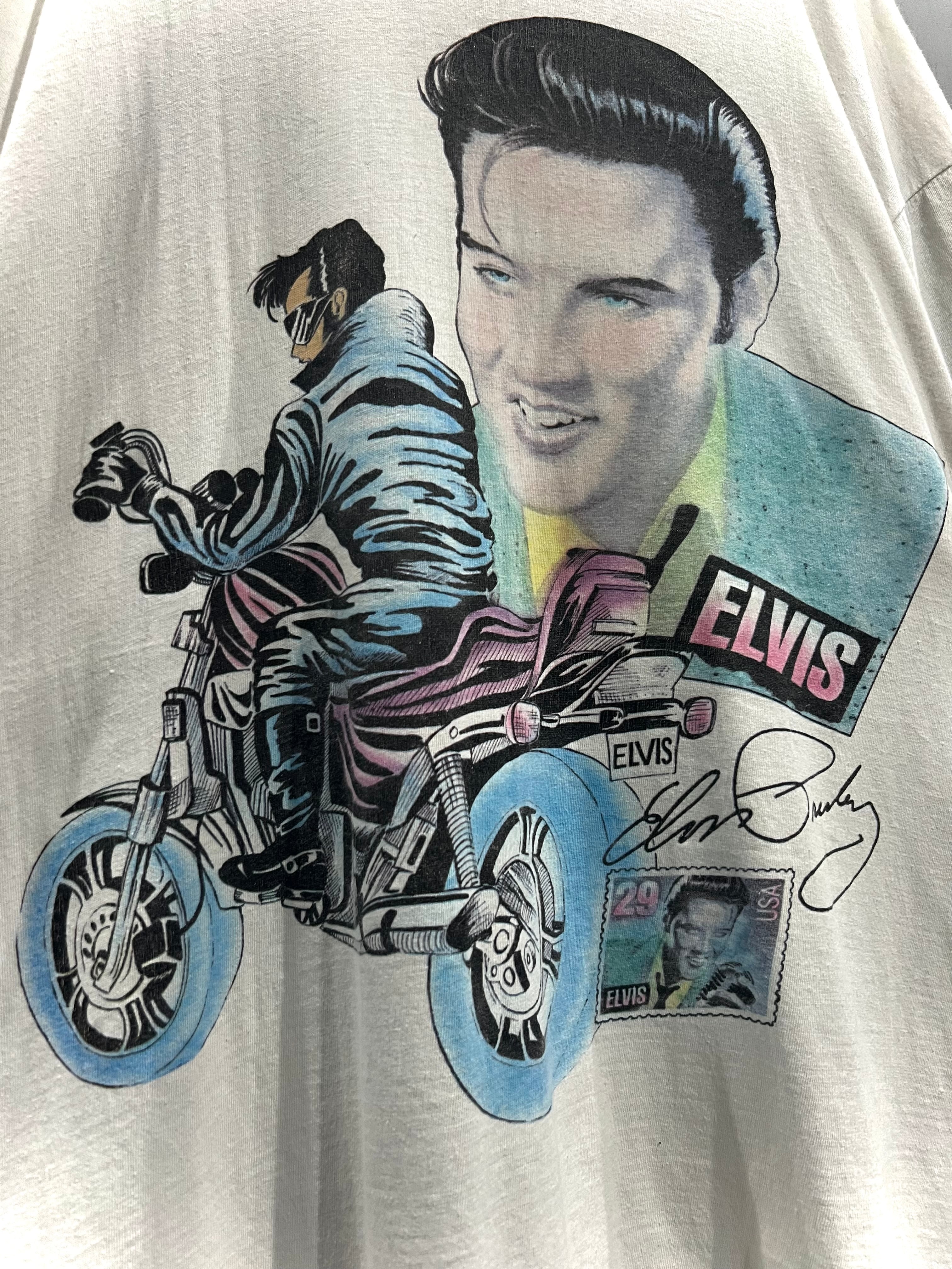 数年前映画化もされ、再注目を浴びている"エルヴィス・プレスリー"のデザインを配した1着。是非とも彼のロックンロール魂を感じながら着用していただきたい、そんな1着となっております。