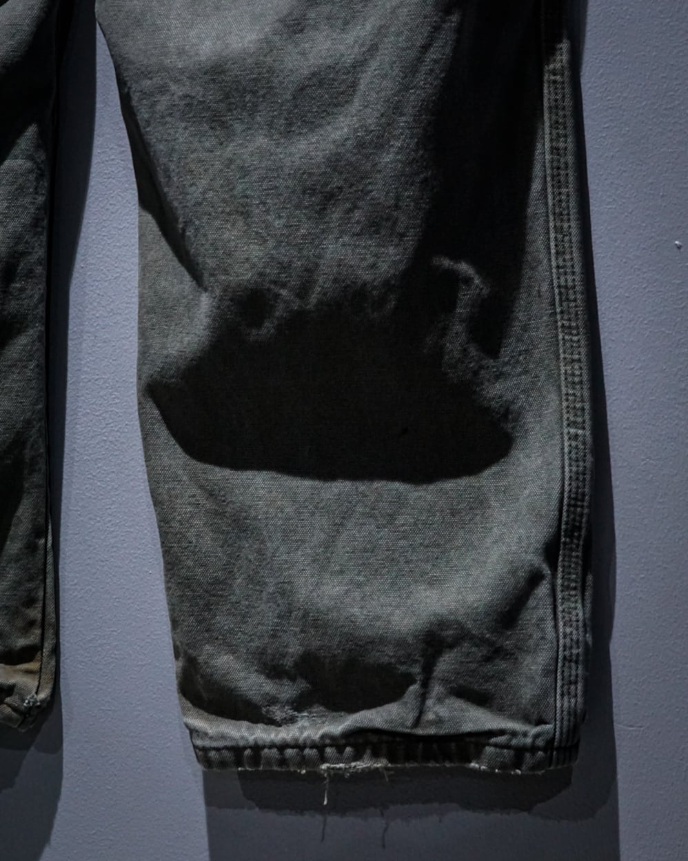 太もも周りは太く裾に向かって細くなるテーパードシルエット。ハリのあるボディの生地感も相まって、着用時の裾にがっつり溜まるシルエットが◎