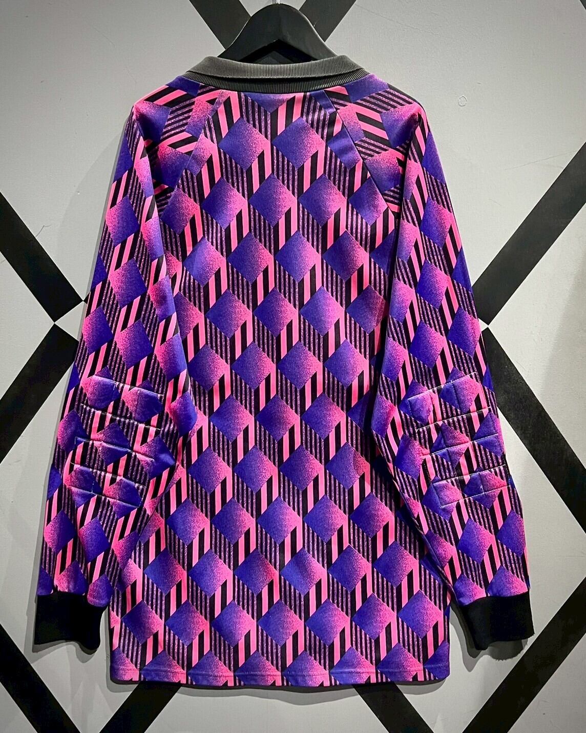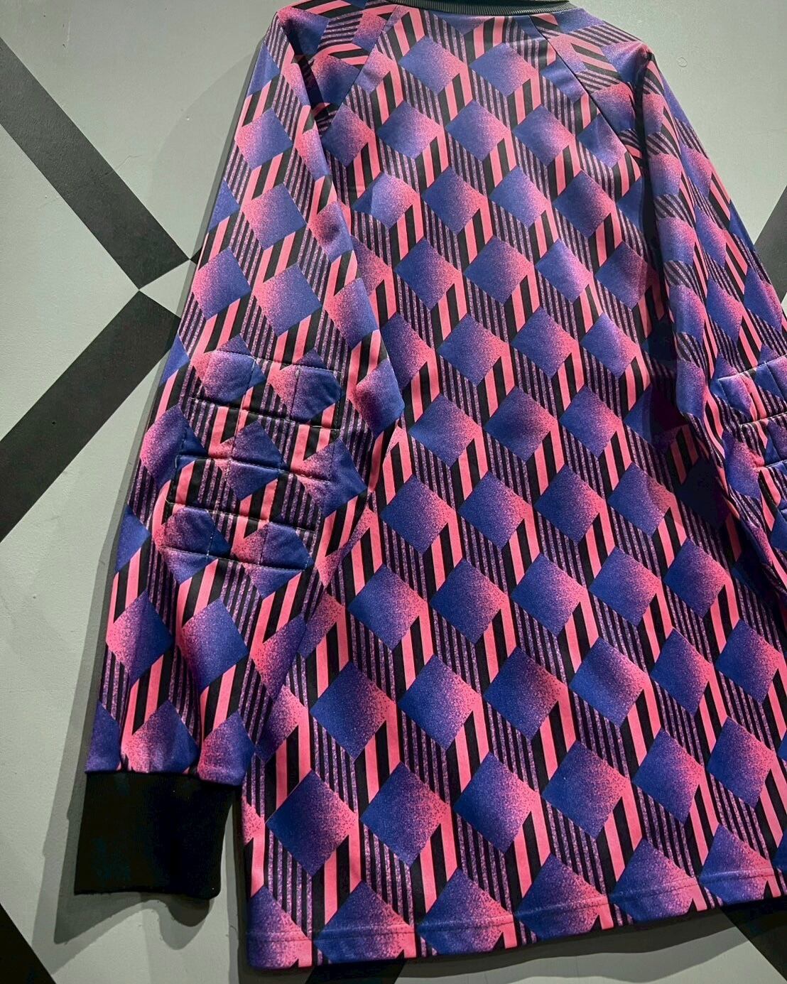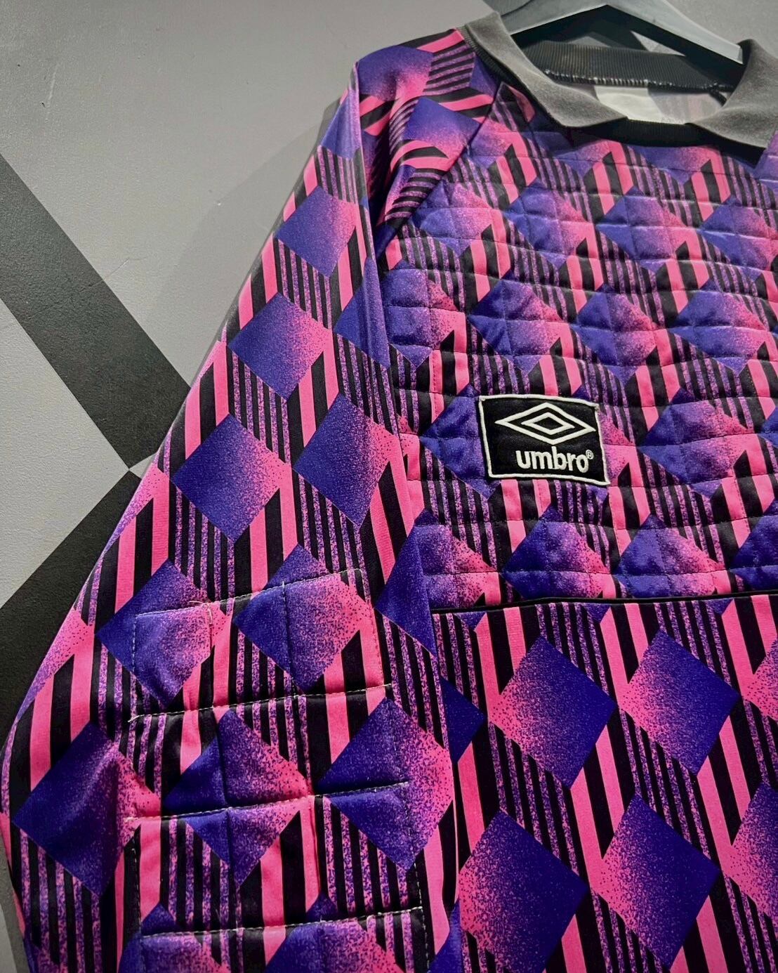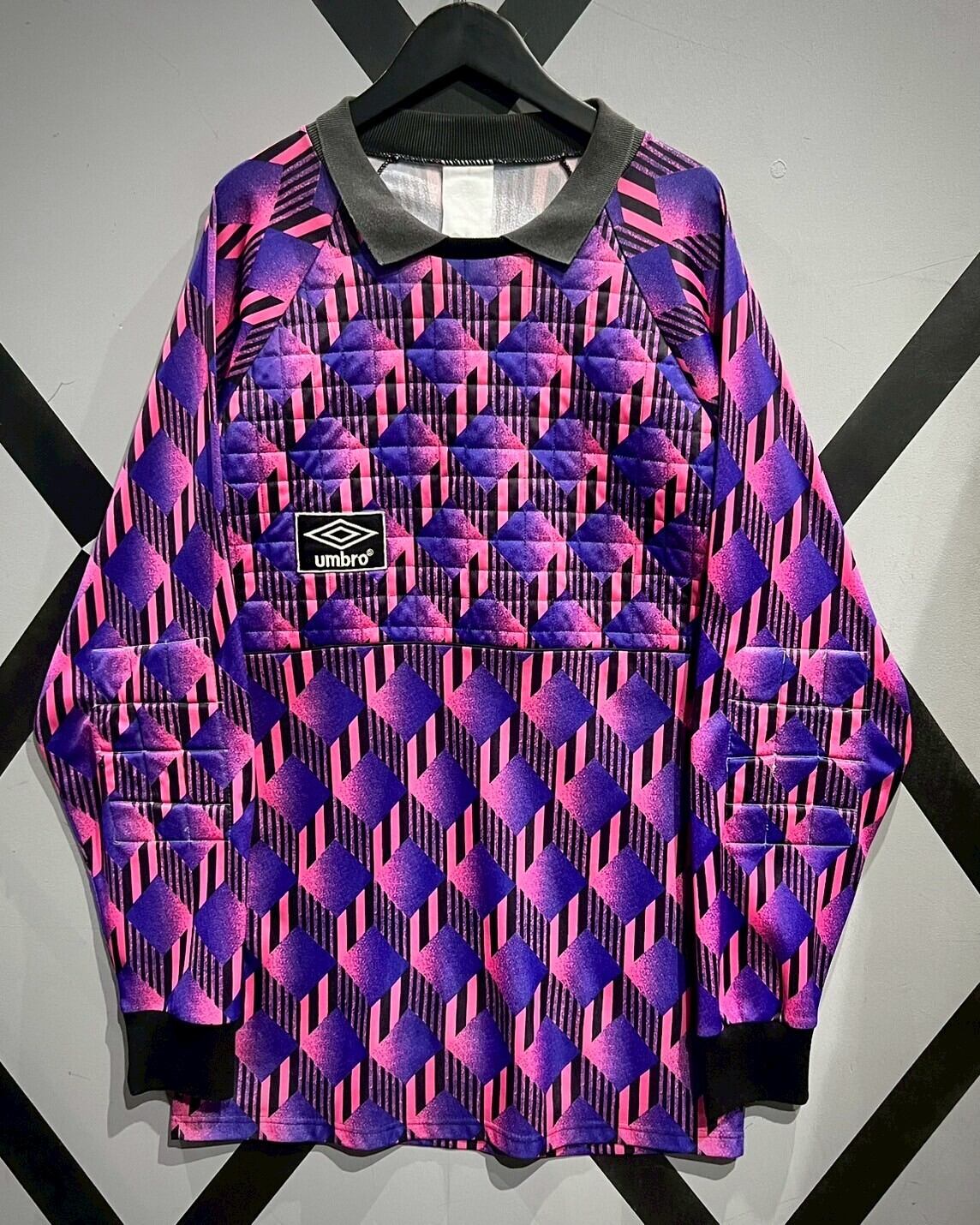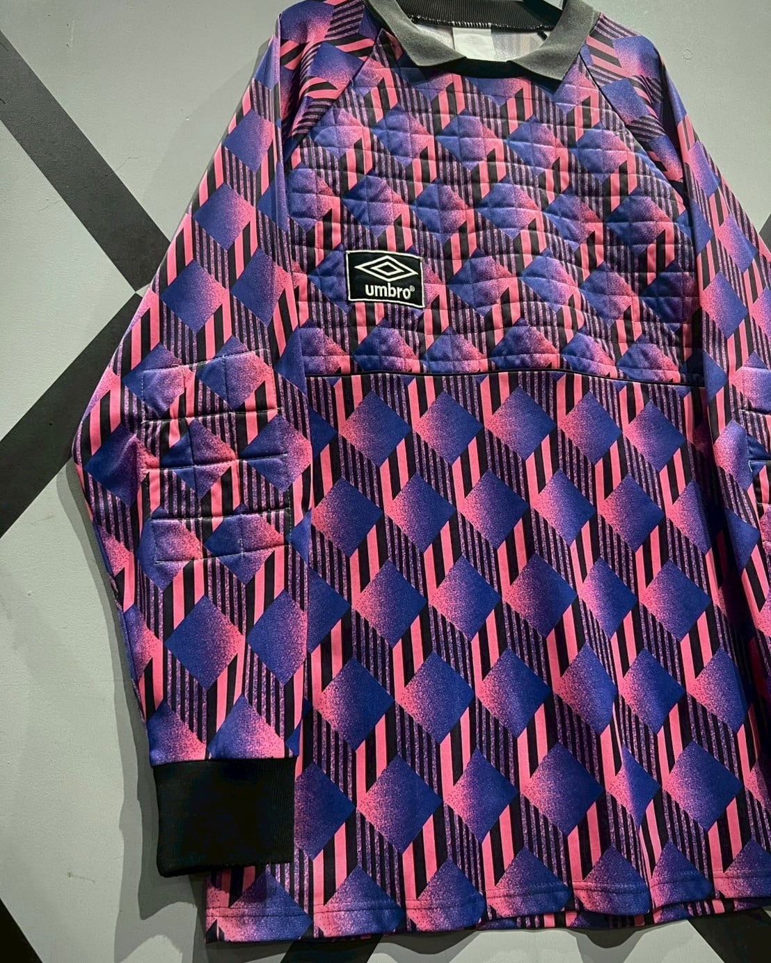 襟付き・ロングスリーブ・アンブロ製と、ゲームシャツにおける三拍子が揃ったこちらのキーパーシャツ。そして、この手のアイテムの中でも、ここまでデザイン性の高いものは稀少です。