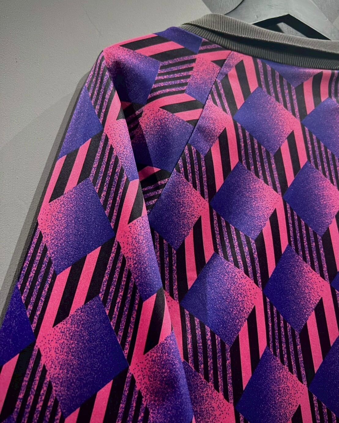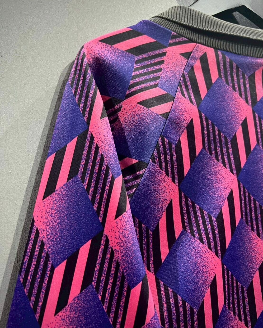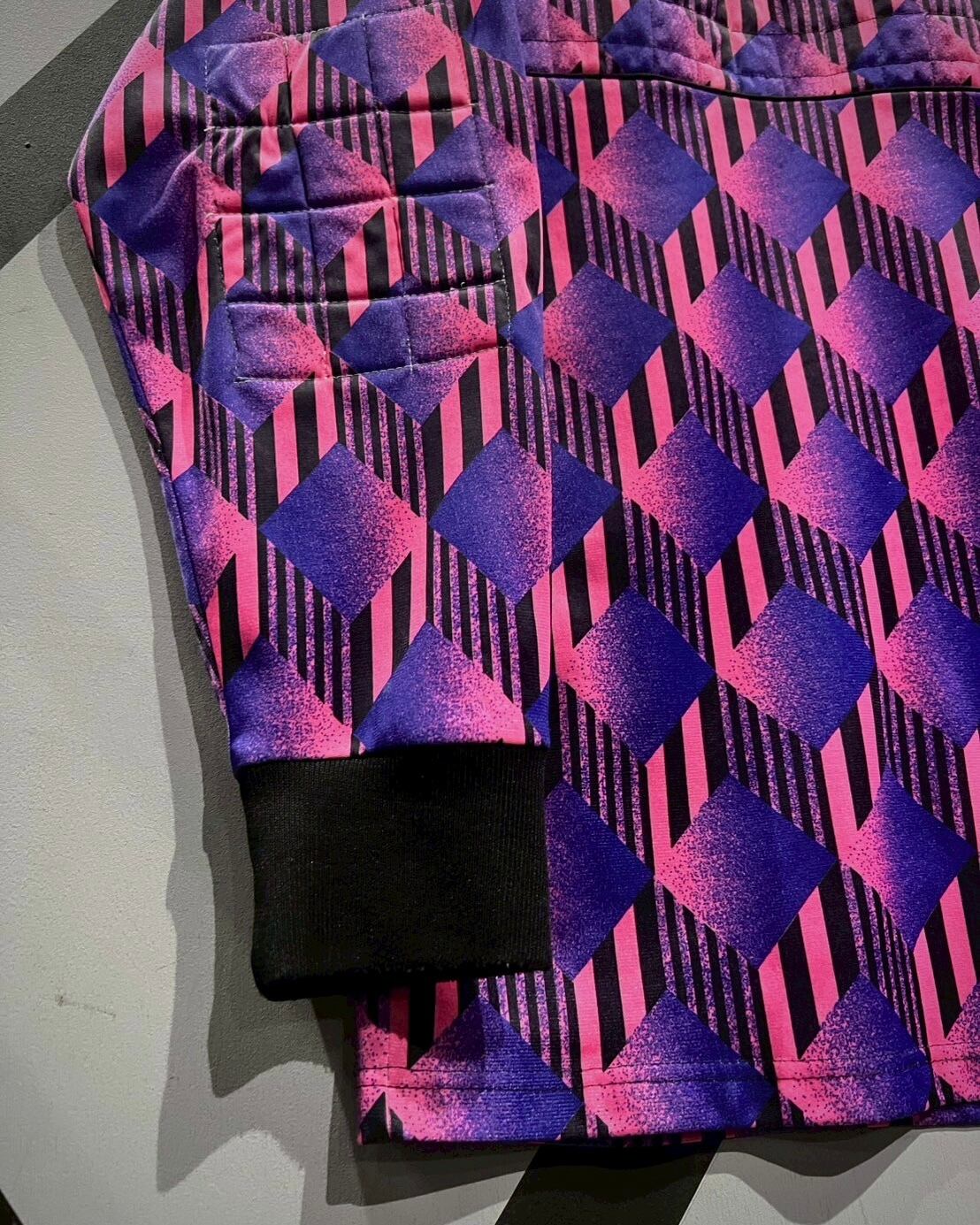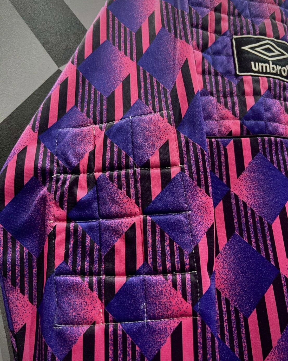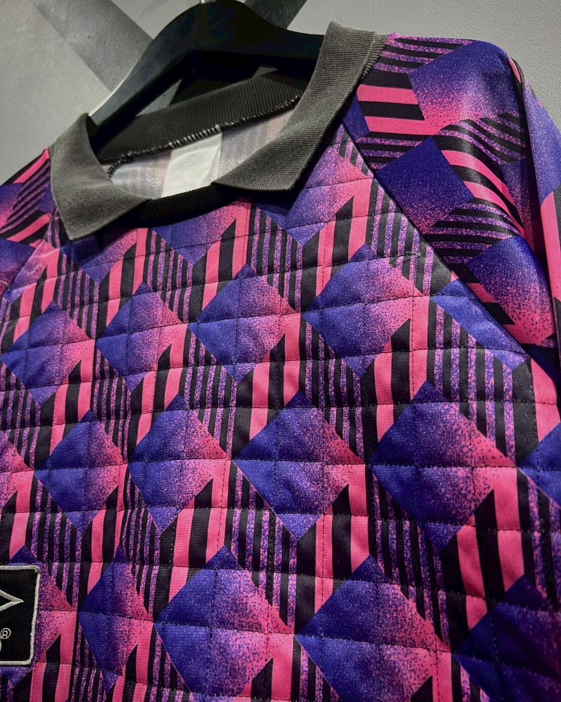 襟付き・ロングスリーブ・アンブロ製と、ゲームシャツにおける三拍子が揃ったこちらのキーパーシャツ。そして、この手のアイテムの中でも、ここまでデザイン性の高いものは稀少です。