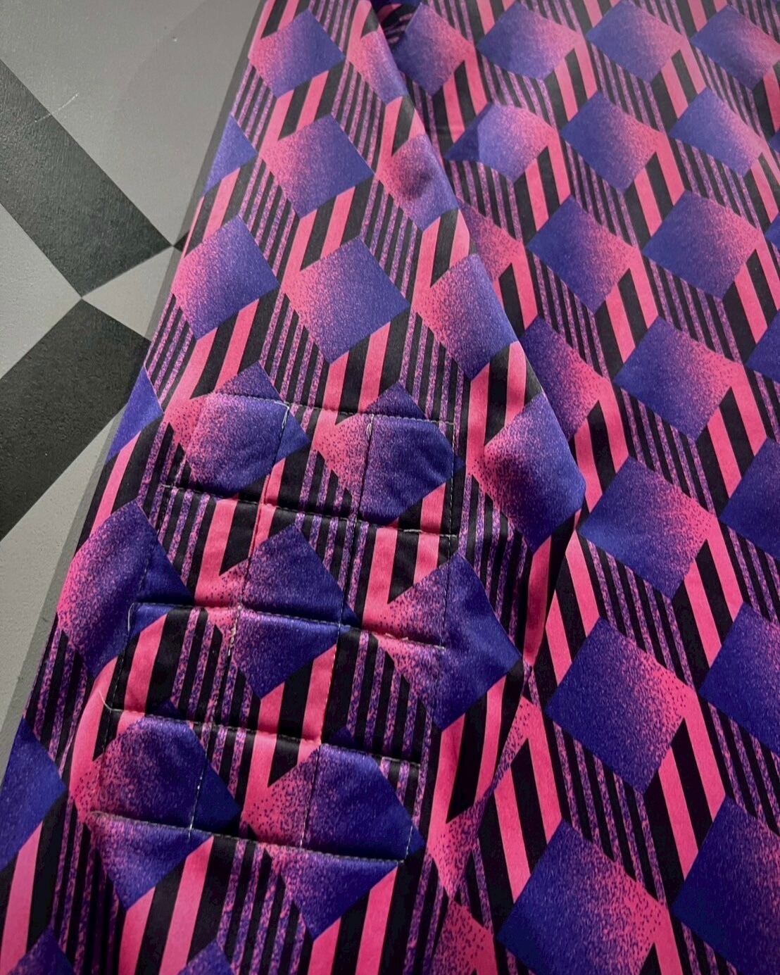 まず目を惹くのは、サイバー感のある幾何学模様。当時の時代背景を感じさせつつも、どこか未来的な要素も併せ持った、独特の雰囲気を醸し出しています。