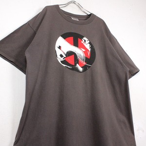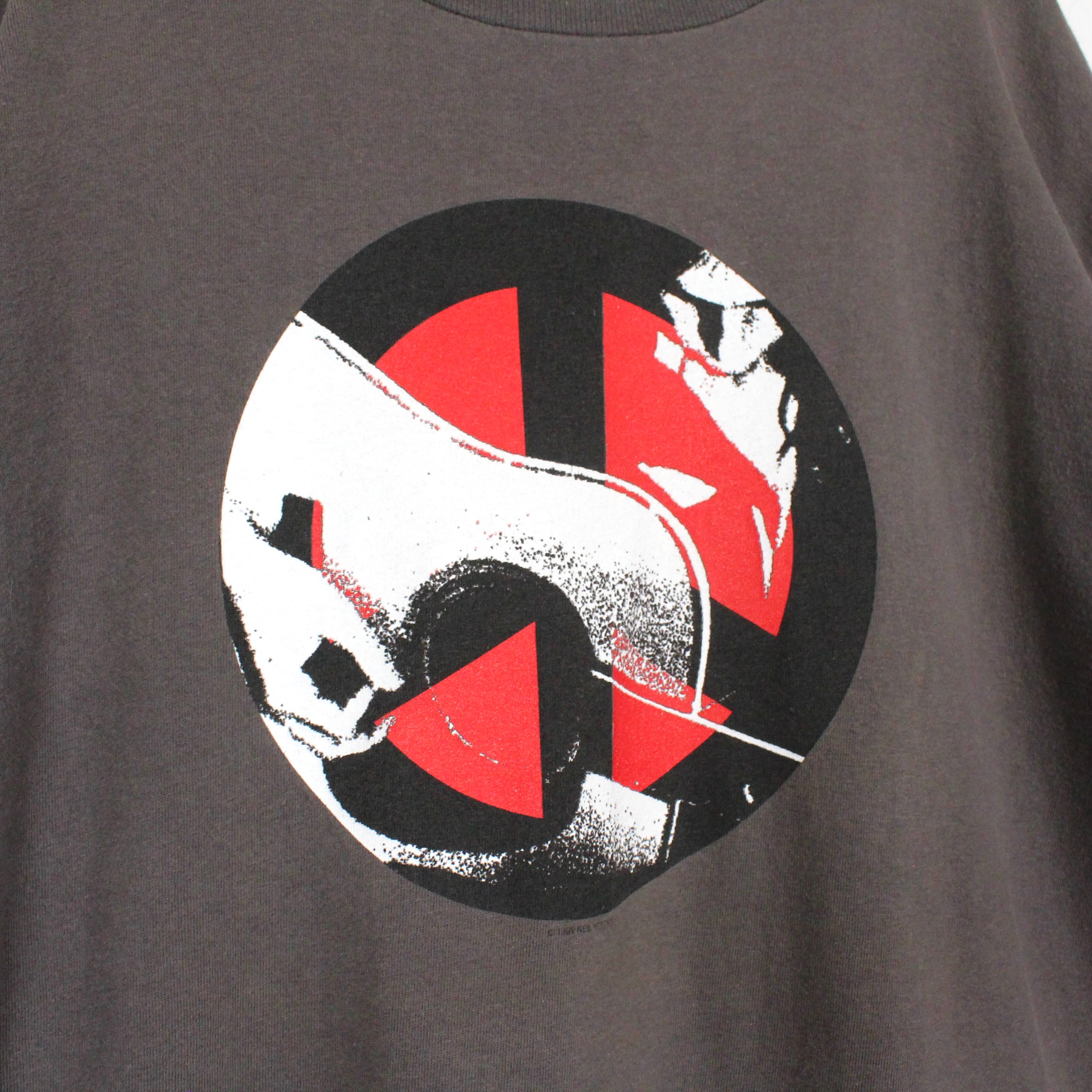グレーカラーのボディにフロントにはピースマークにギターを弾くニール・ヤングの姿を落とし込んだグラフィックをフロント中央に配置。背面にはツアー名のプリントを載せた両面プリント。