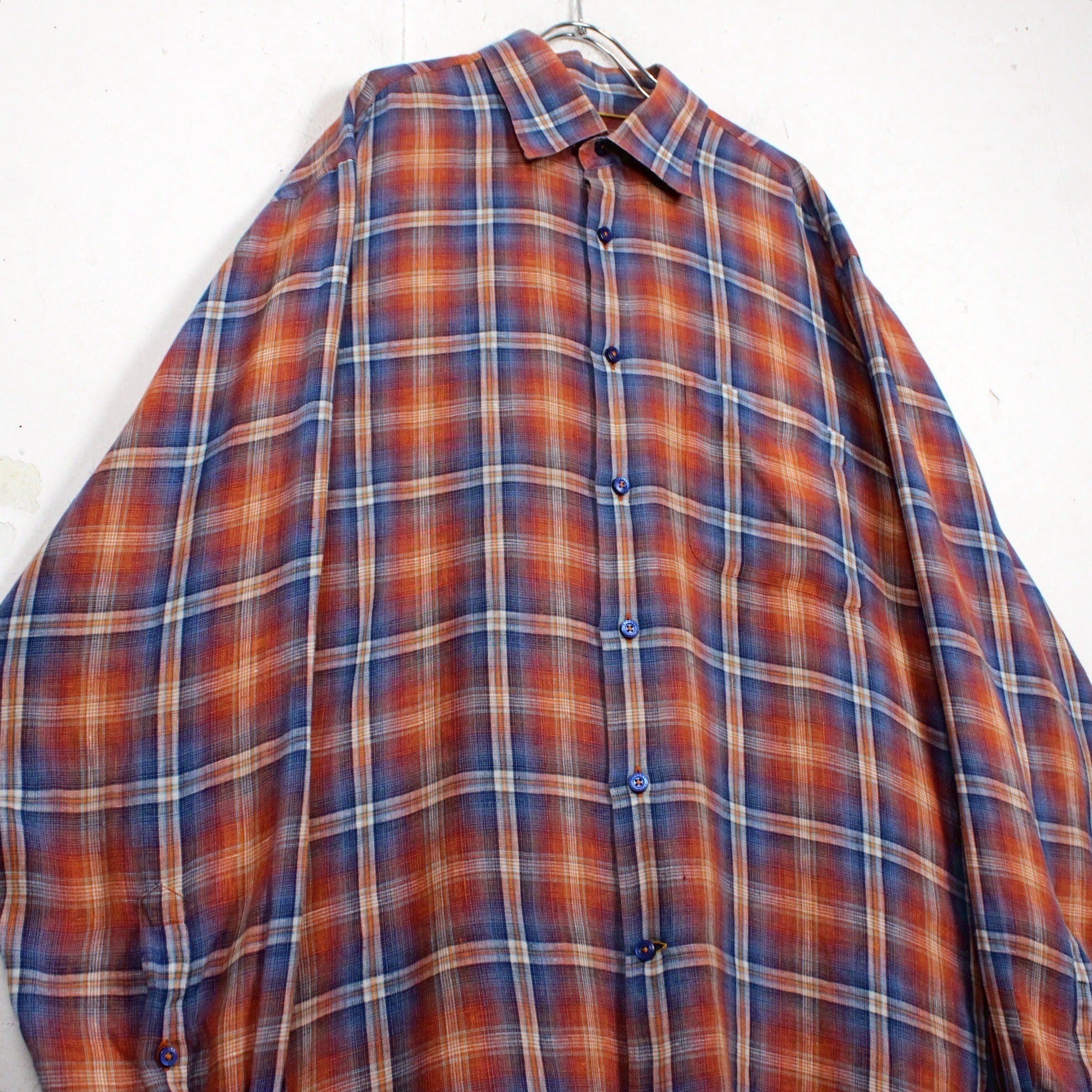 オレンジ×ブルーの美しいカラーリングでオンブレチェックを載せた長袖リネンシャツ。