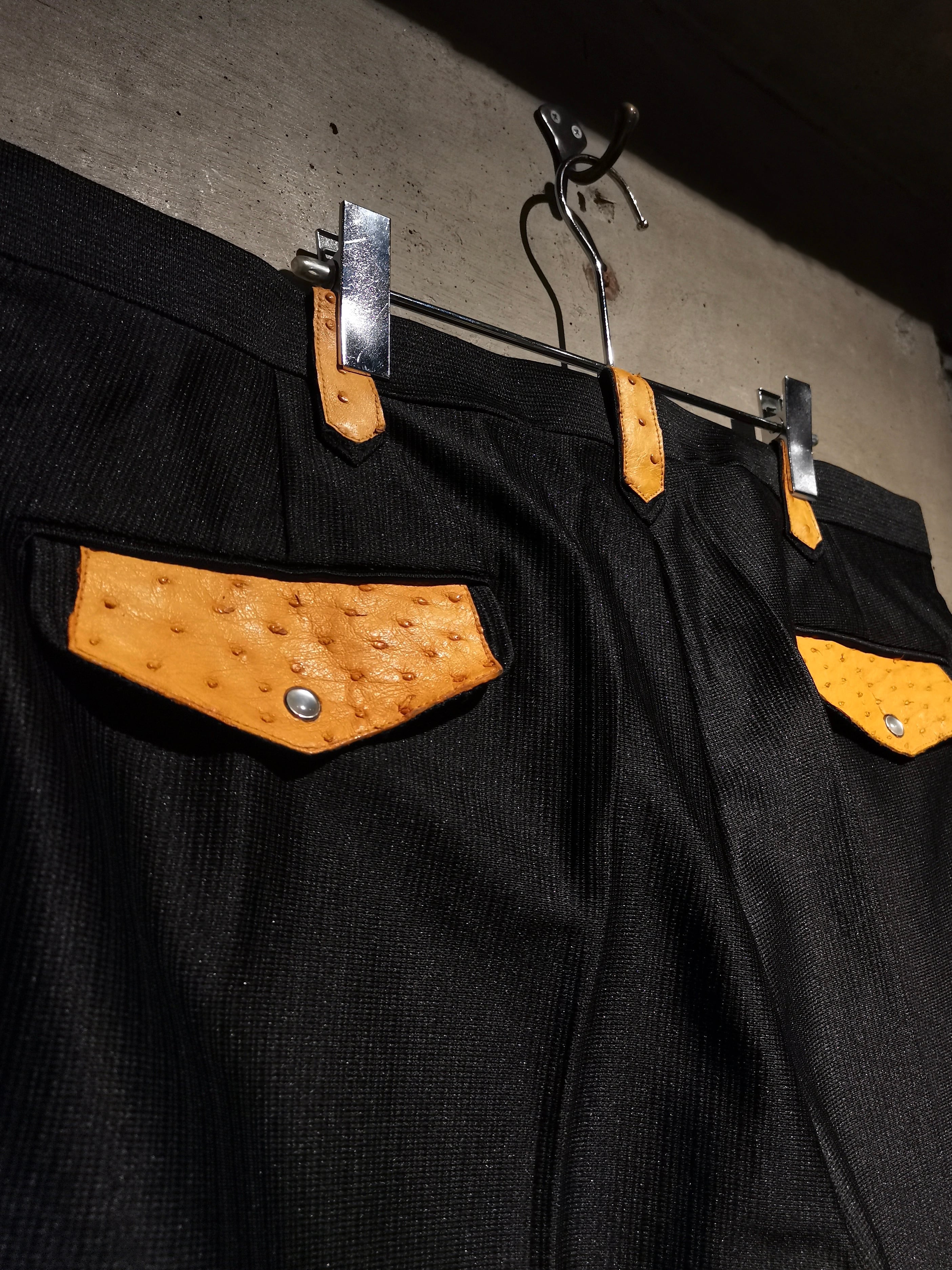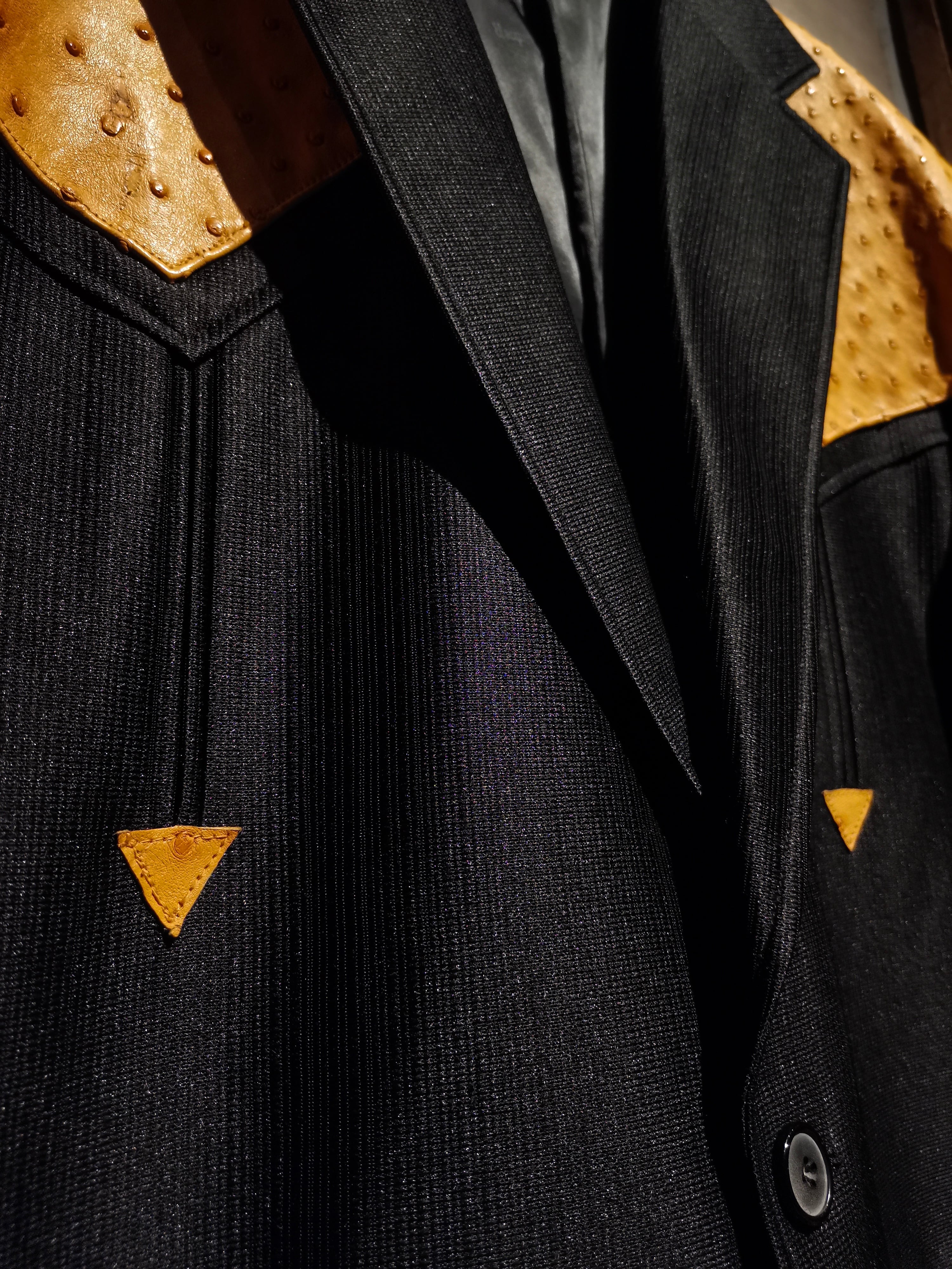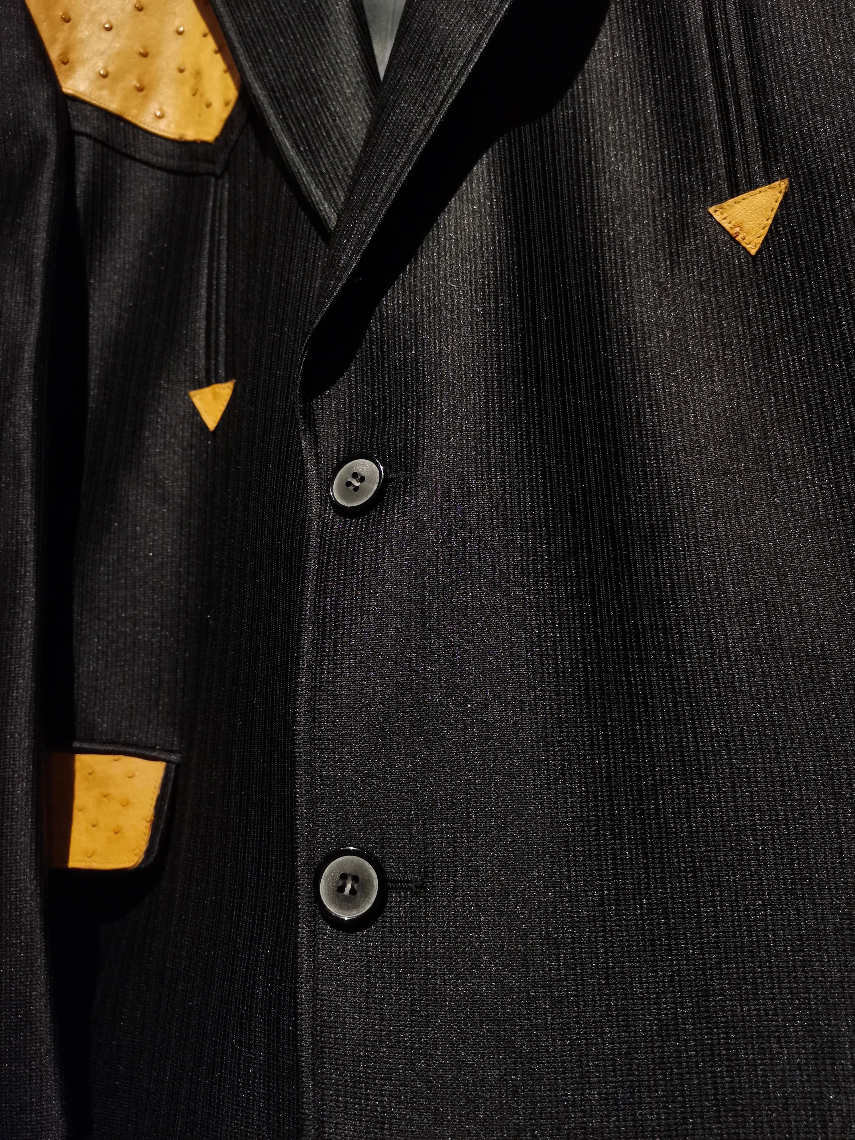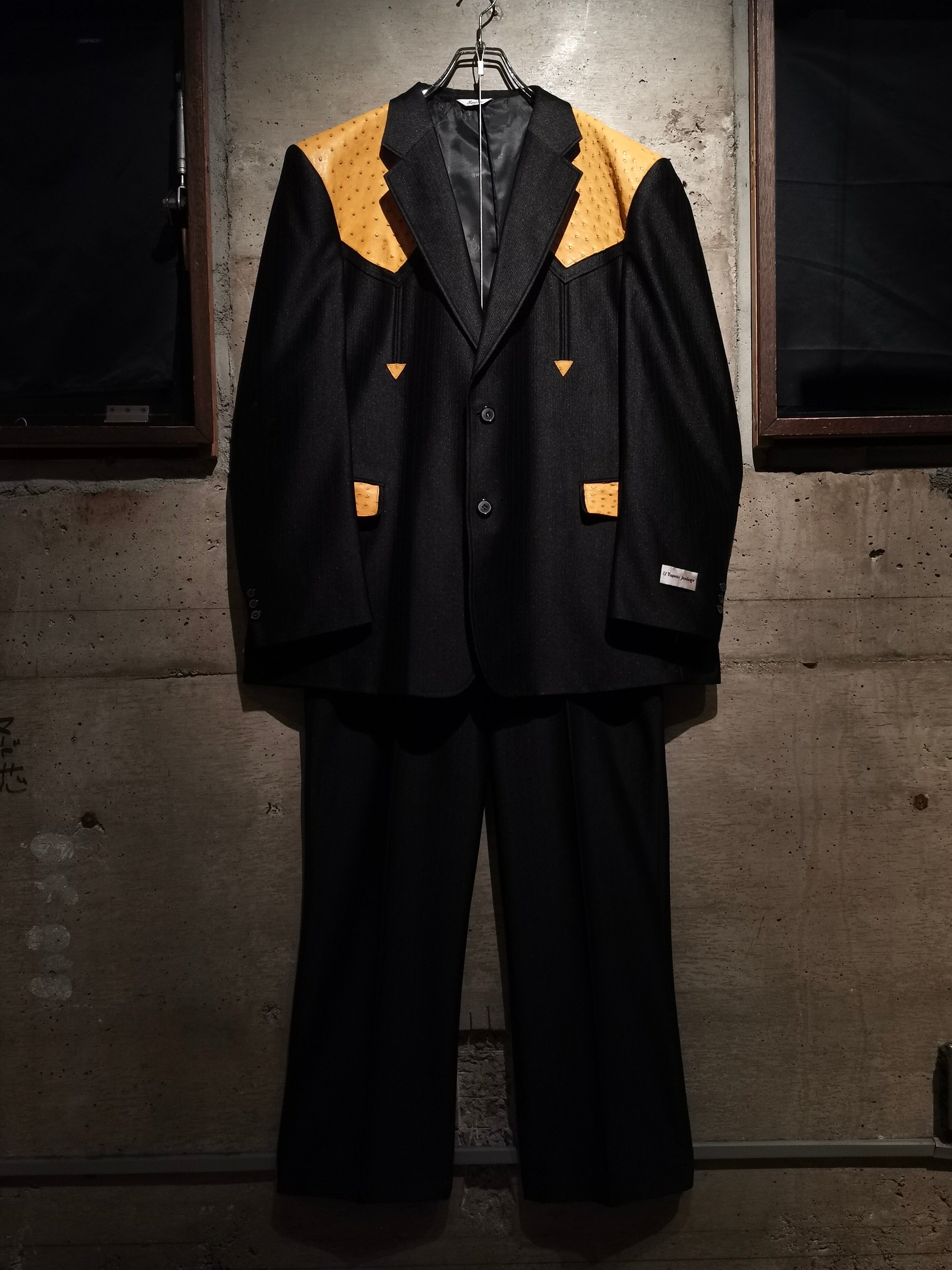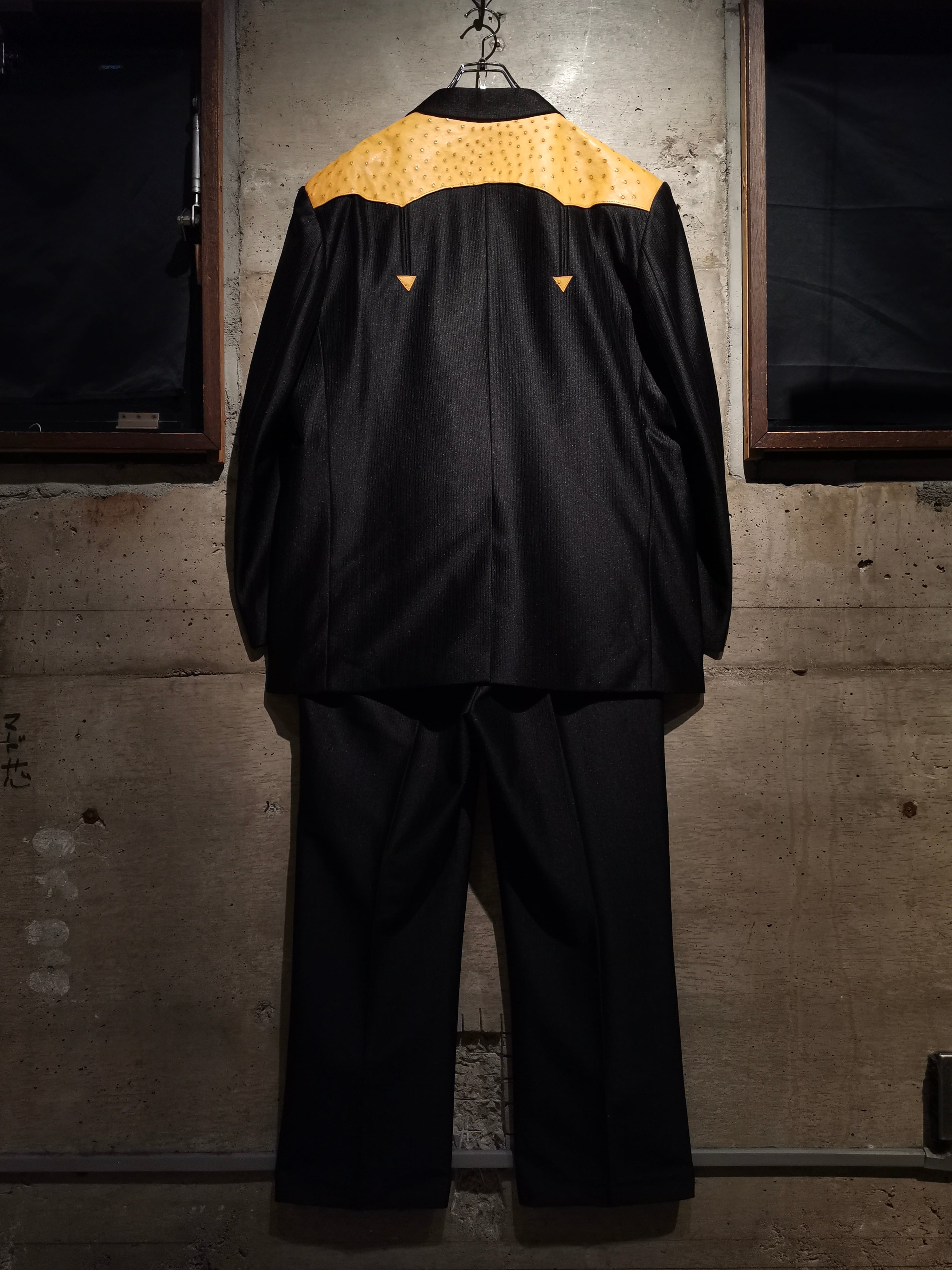 稀有なブラックウエスタン仕様のテーラードジャケットに、オーストリッチ(ダチョウ革) を切り替えた1着。ボディは鈍く光沢を帯びながらもしっとりとした深みのある上質な素材で着用感も軽い為、高級感を漂わせながらもラフに身に纏えます。