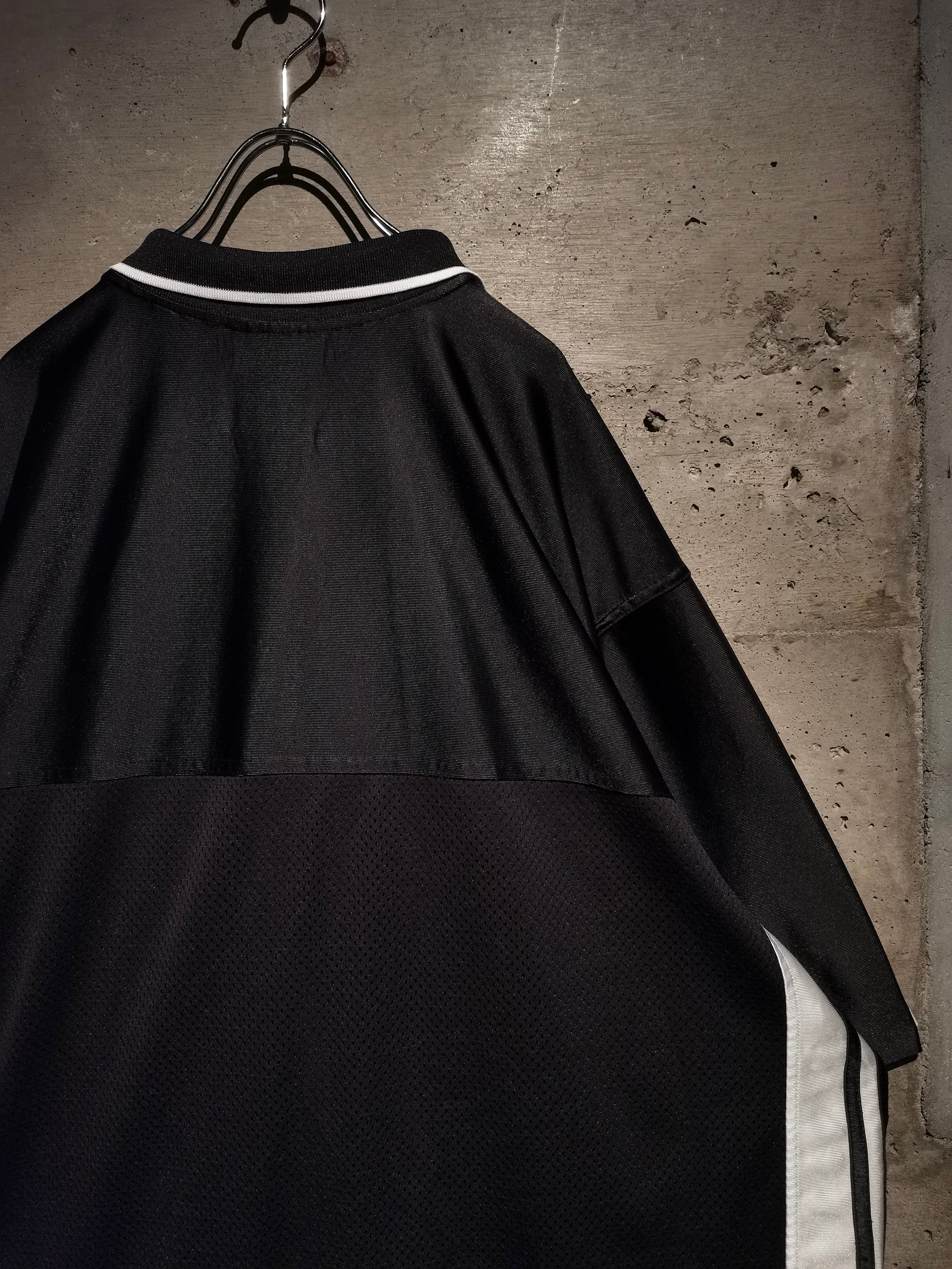 サラッとした光沢感のあるポリエステルと通気性や着心地の良いメッシュ素材の切り替えになっており、高く優れたデザイン性と、機能性にも長けたブランドらしい仕上がりに。