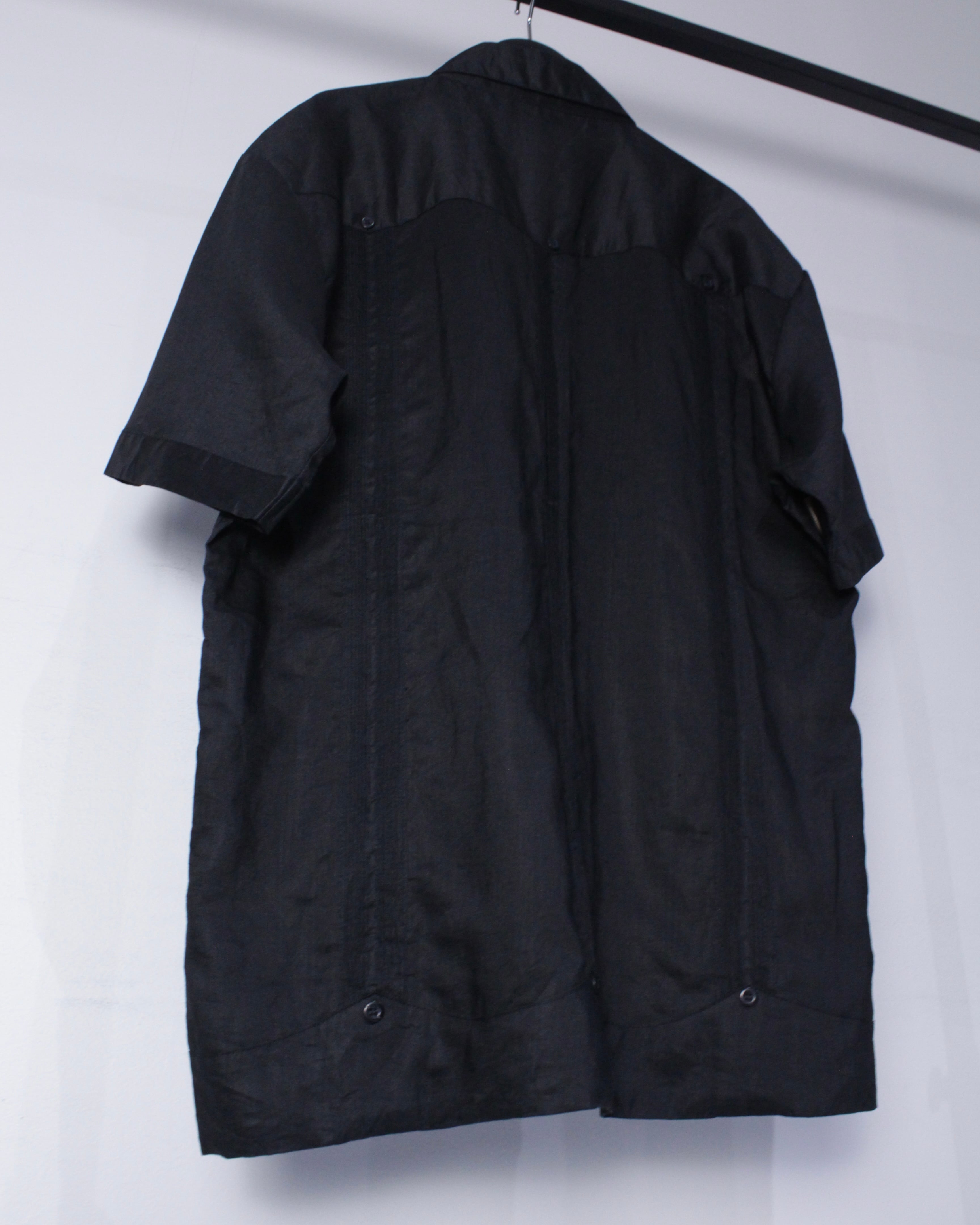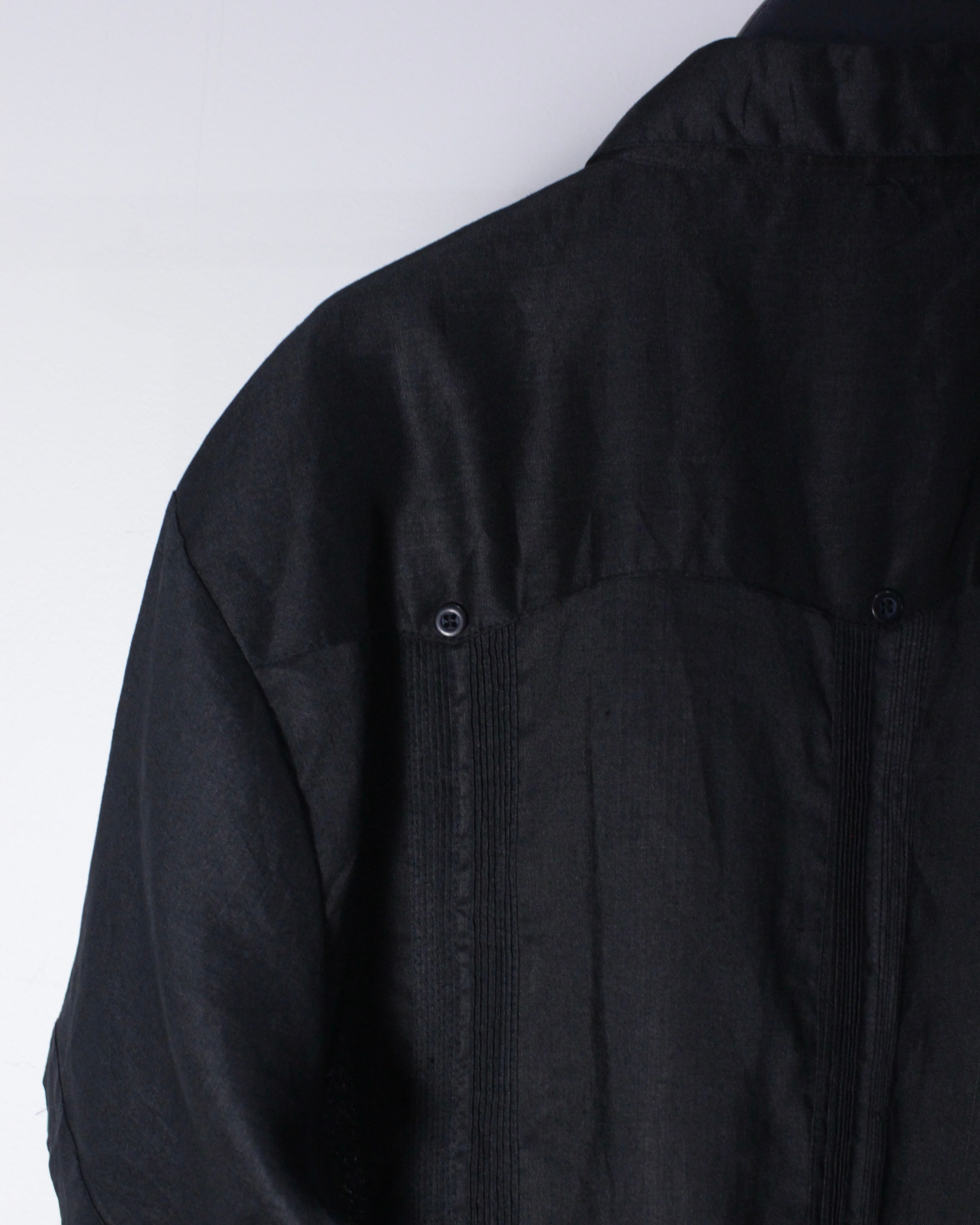 ヴィンテージ業界で稀少価値が高くなっている、ハリ、柔らかさを兼ね備えたブラックリネンを用いたキューバシャツ。