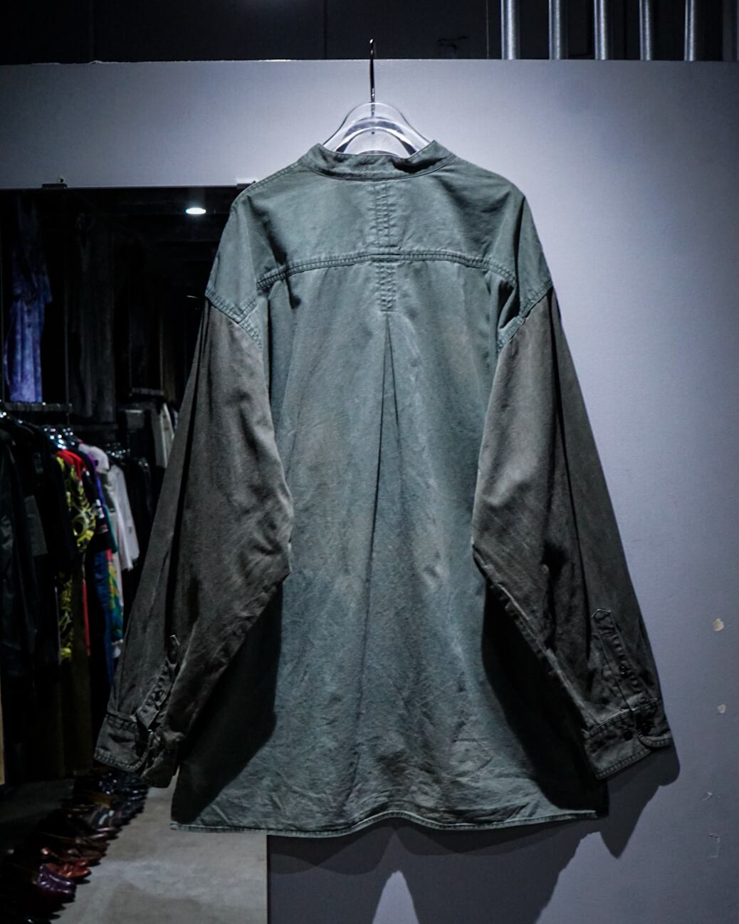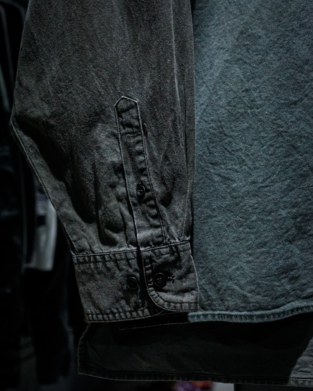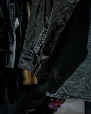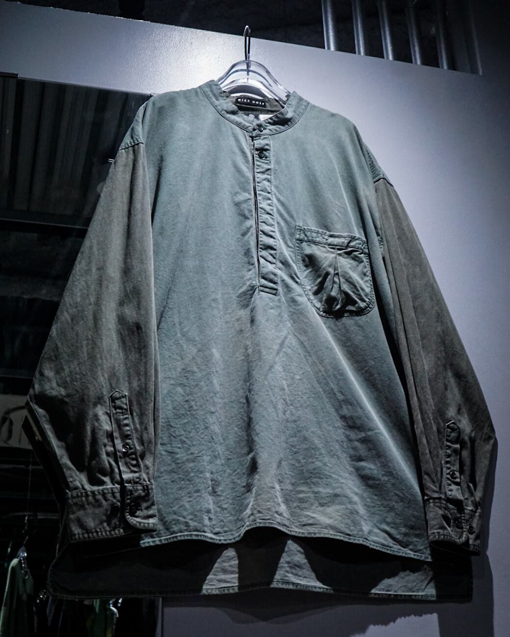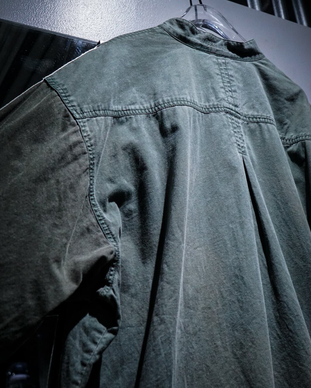 薄らとグラデーションがかったフェードが美しい、、、ハーフボタンに左胸のパッチポケットとミニマルなデザインによって、ボディのフェード、全体のヤレ感など、古着ならではの風合い豊かな表情が引き立つ仕上がりとなっています。