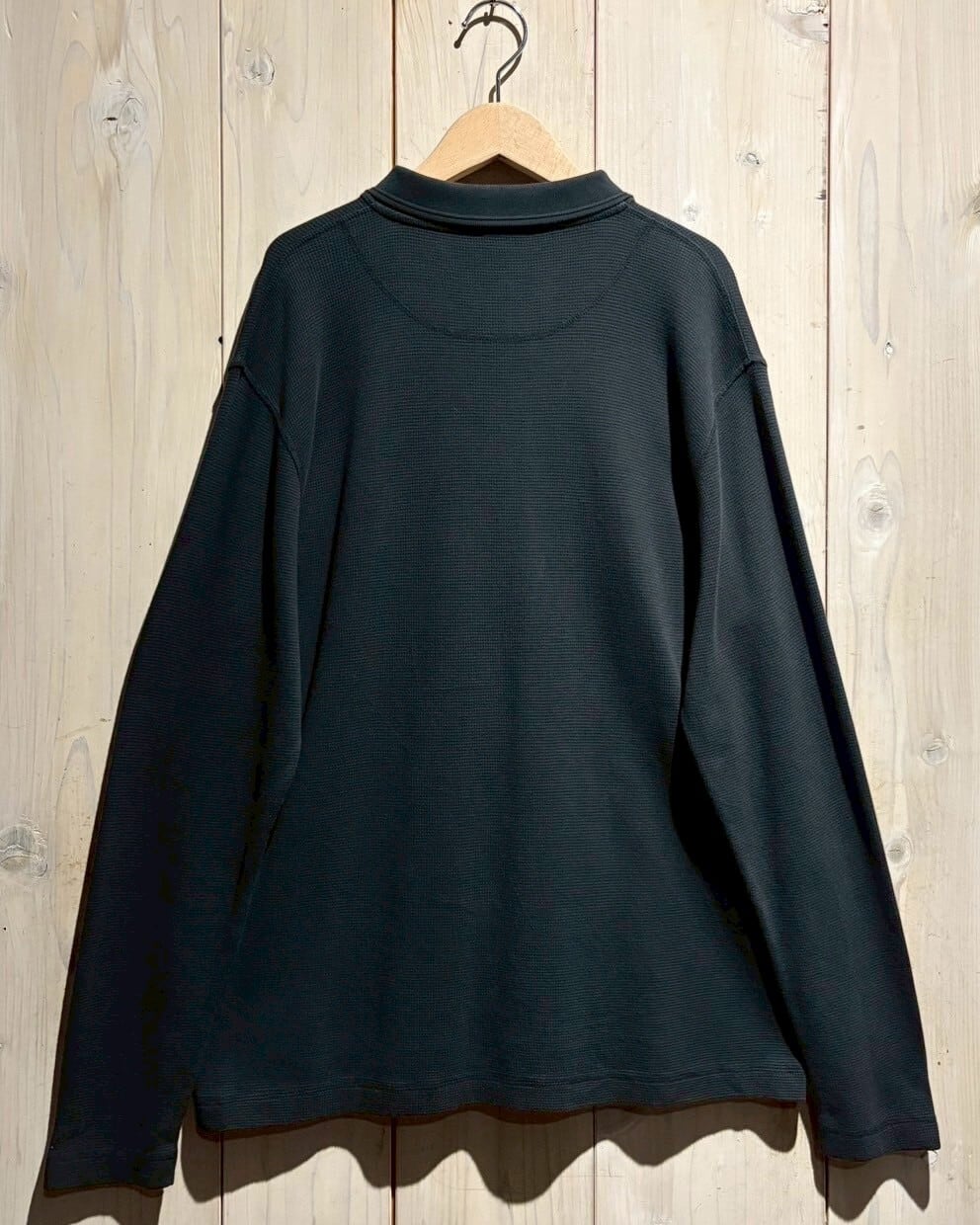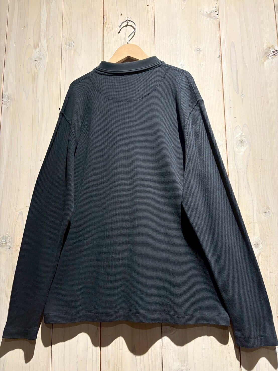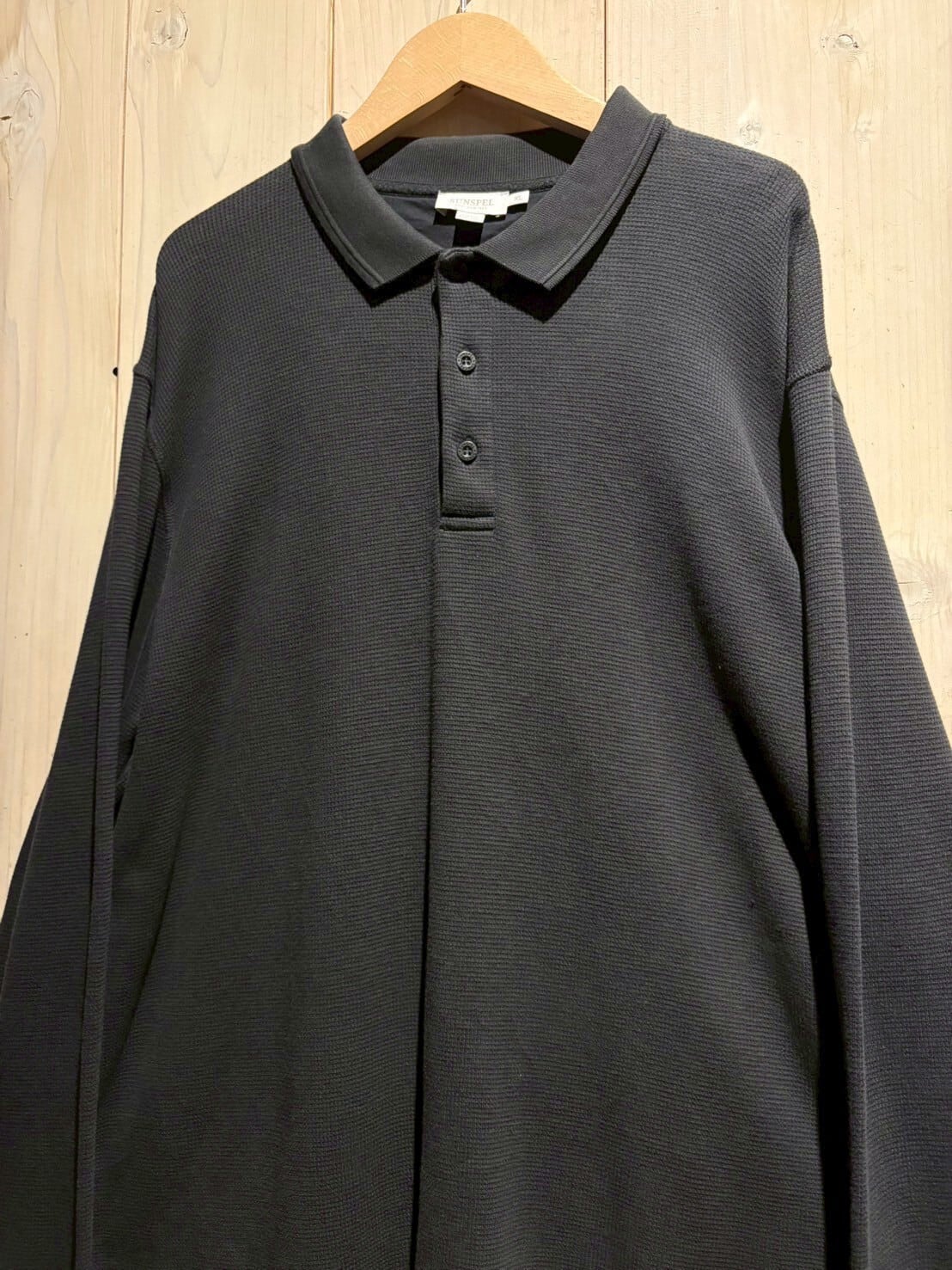 首元がボタンで非常に汎用的な型なのも嬉しいポイント。冒頭で述べた通り、サラッと滑らかな質感のコットンを使用しているので着心地も言わずもがな抜群、毛玉にもなりにくく、末永く愛用していただけます◎