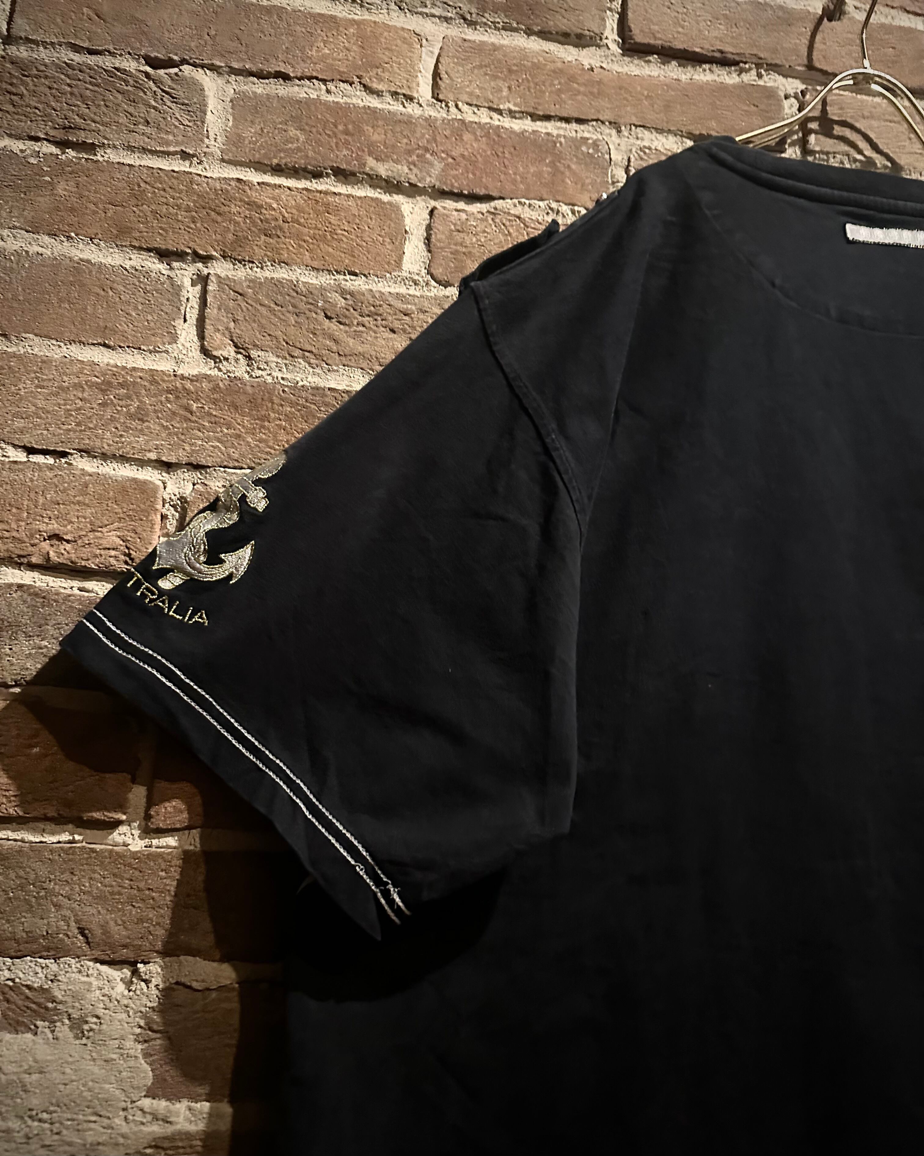 ブラックのボディに、フロントにエンブレム、羽をフロッキープリントで載せた逸品。