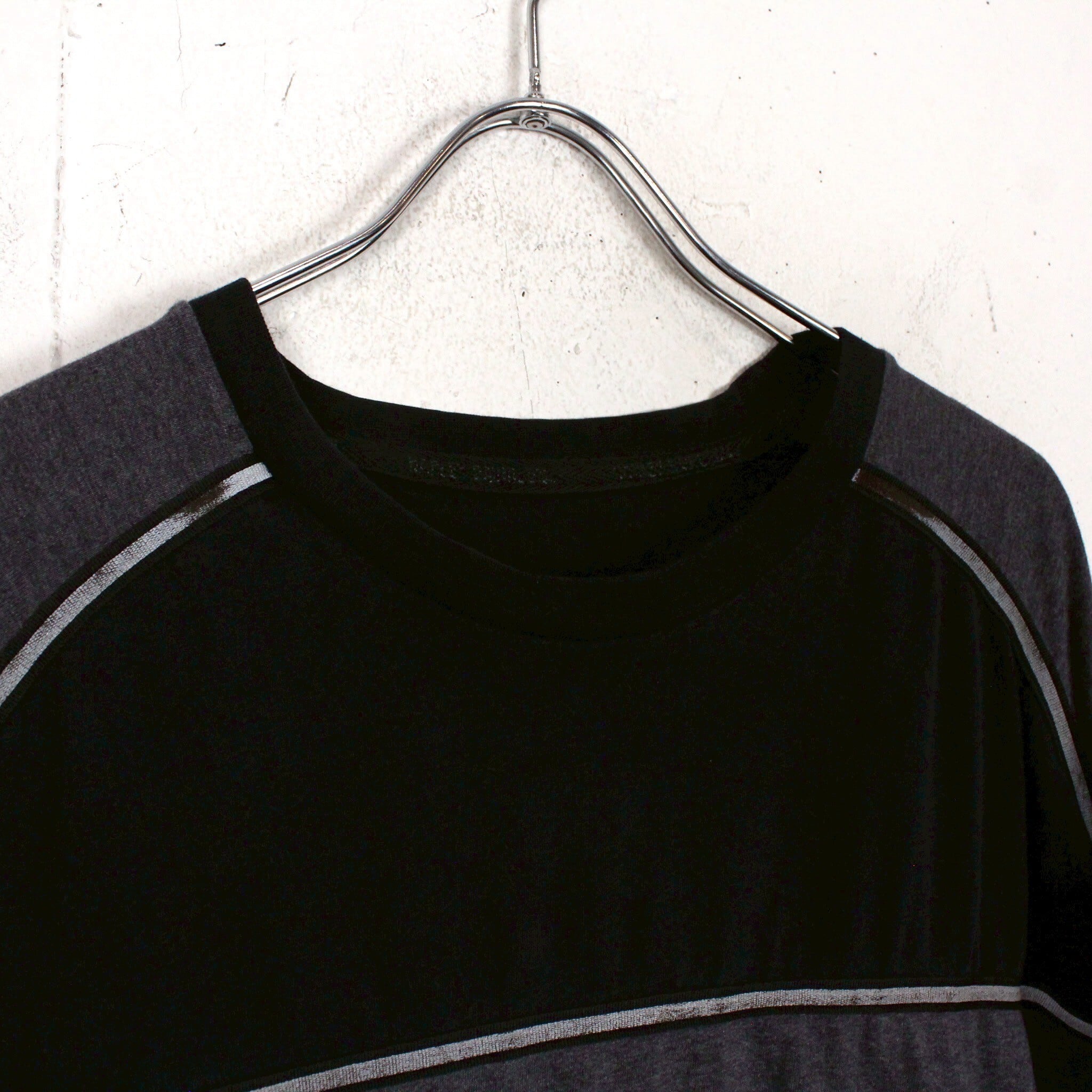 黒、グレーを切り替えたボディに、リフレクターロゴプリントを載せたロンT。