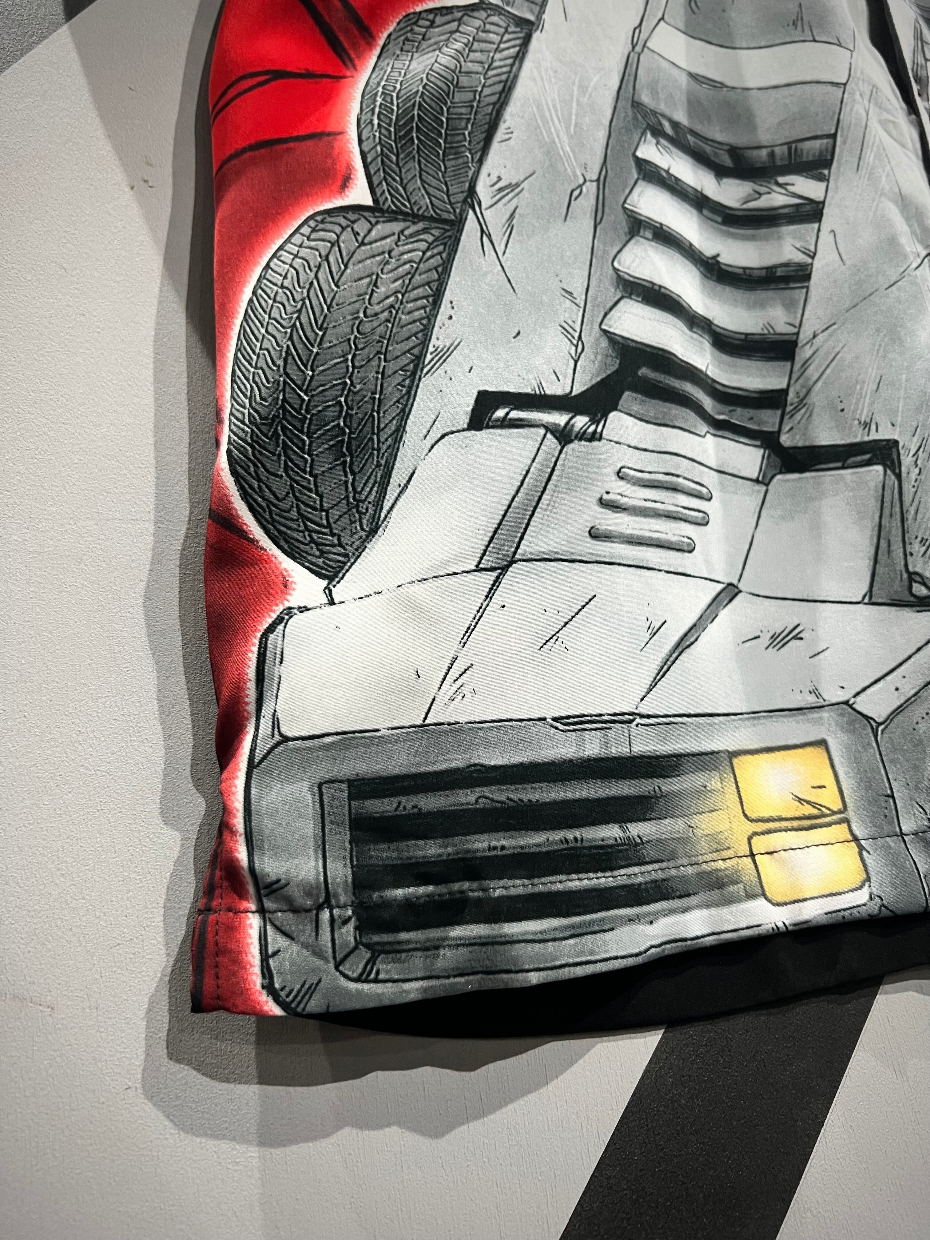 オートボットに所属する"オプティマスプライム"をフロントに載せ、インパクト抜群の仕上がり。袖口にはオートボットのロゴが載せられていたりと、ファンの方には堪らない1着ではないでしょうか。