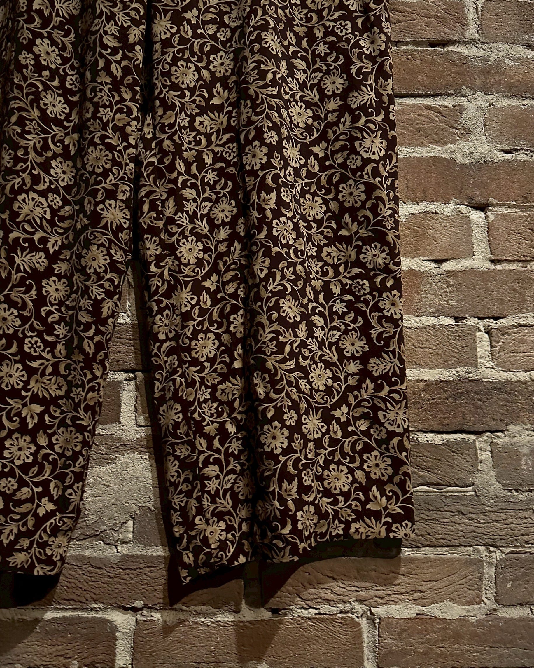 総柄ながらもブラウン、ベージュで統一したことで気品漂い、落ち着きのある雰囲気を纏っています。