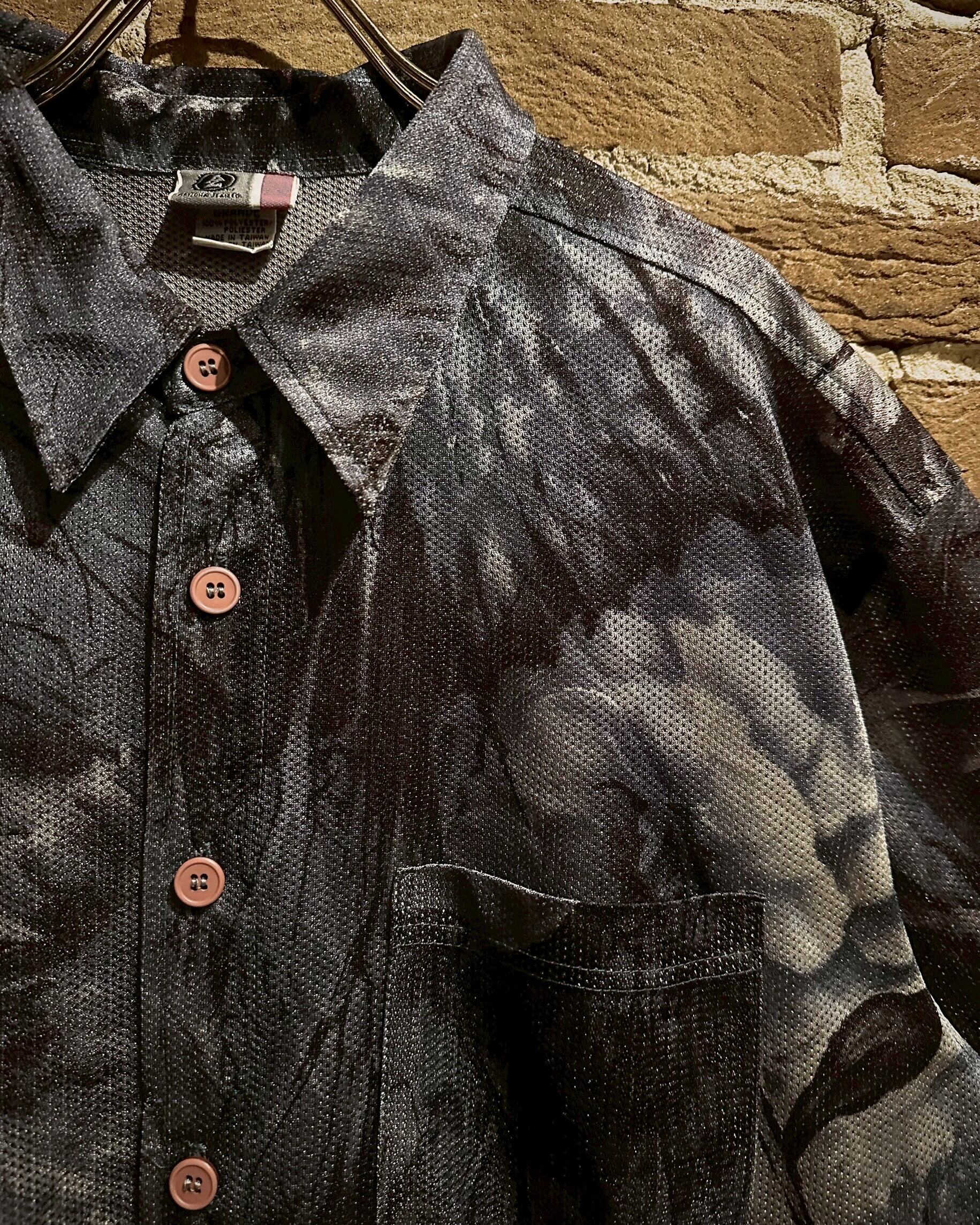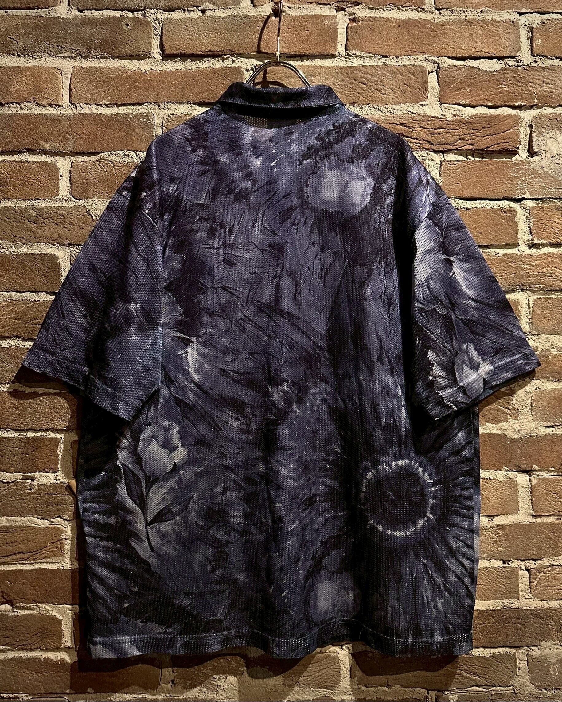 目の細やかなメッシュ素材をベースに、アーティスティックな花柄を載せた半袖シャツ。