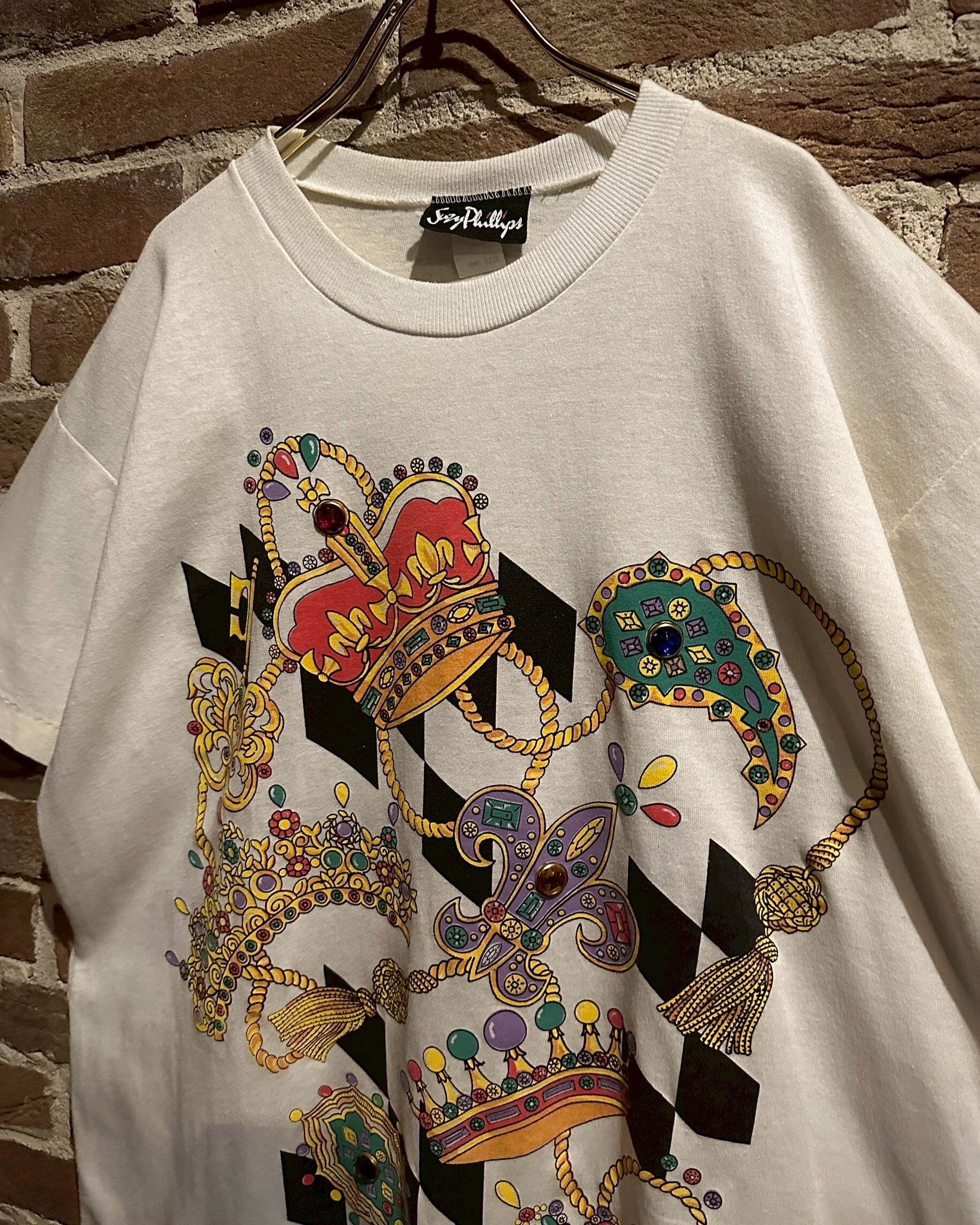 ヴィンテージTシャツではバンTや映画モノが主流ですが、こういったデザインの効いたものを手に取るのもまたファッショナブルかと。当店らしいレトロかつラグジュアリーな雰囲気を纏ったTシャツの逸品です。