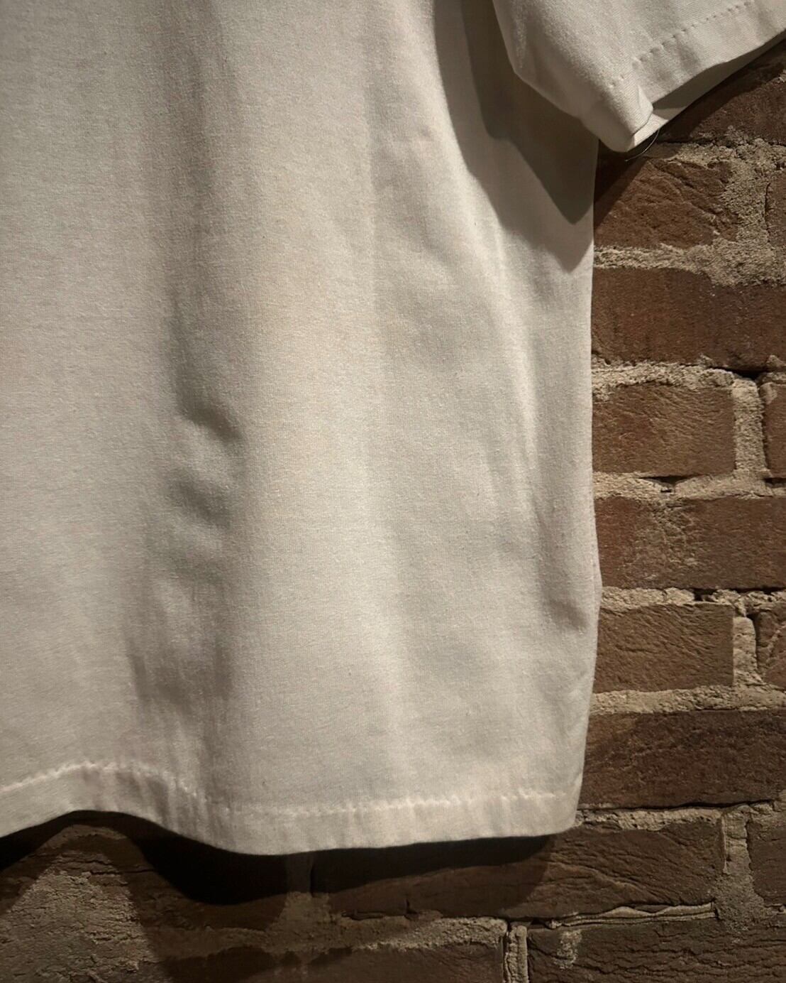 袖裾共にシングルステッチ、USA製の90's。白のボディですがコンディションも良好です。