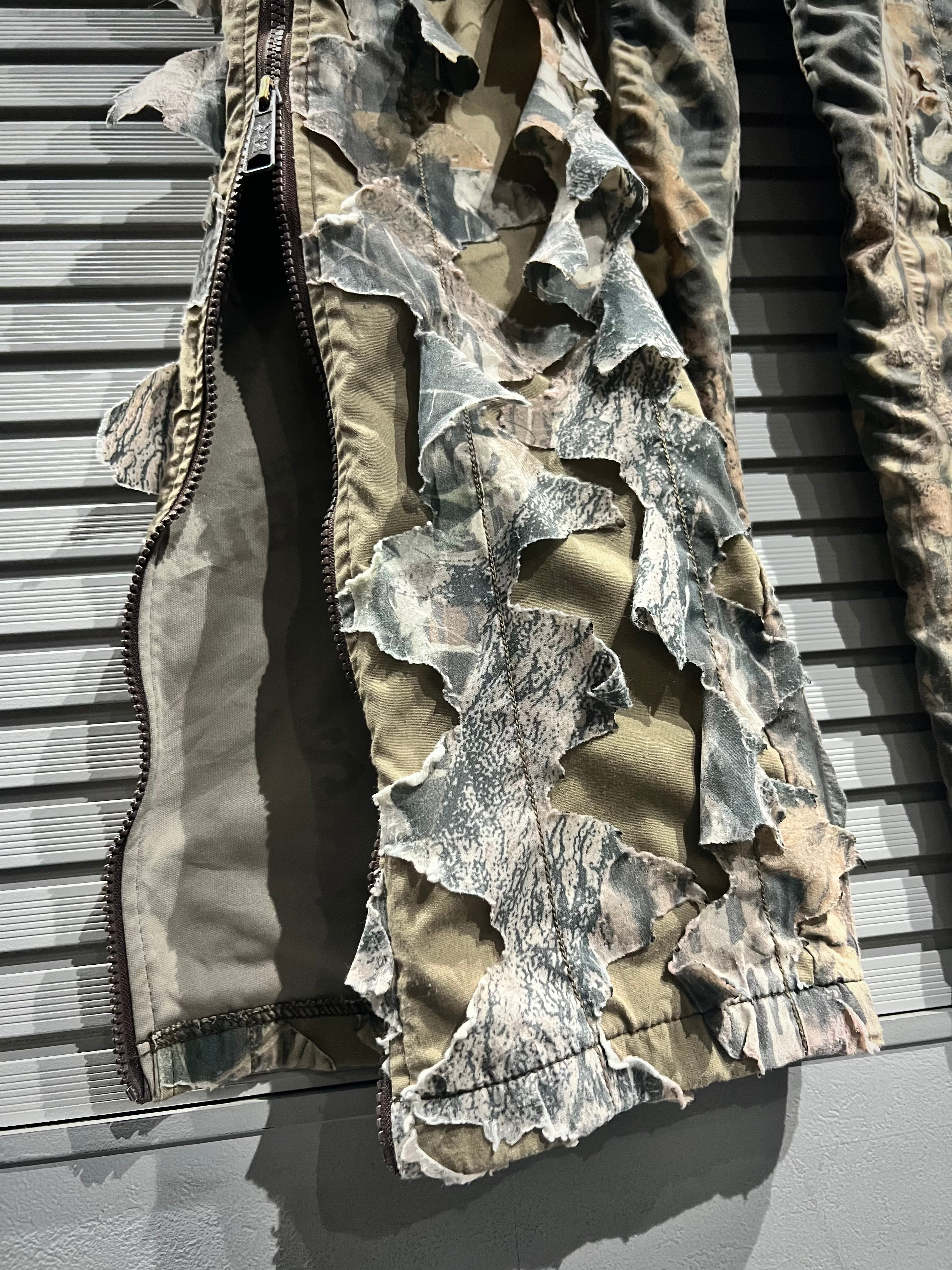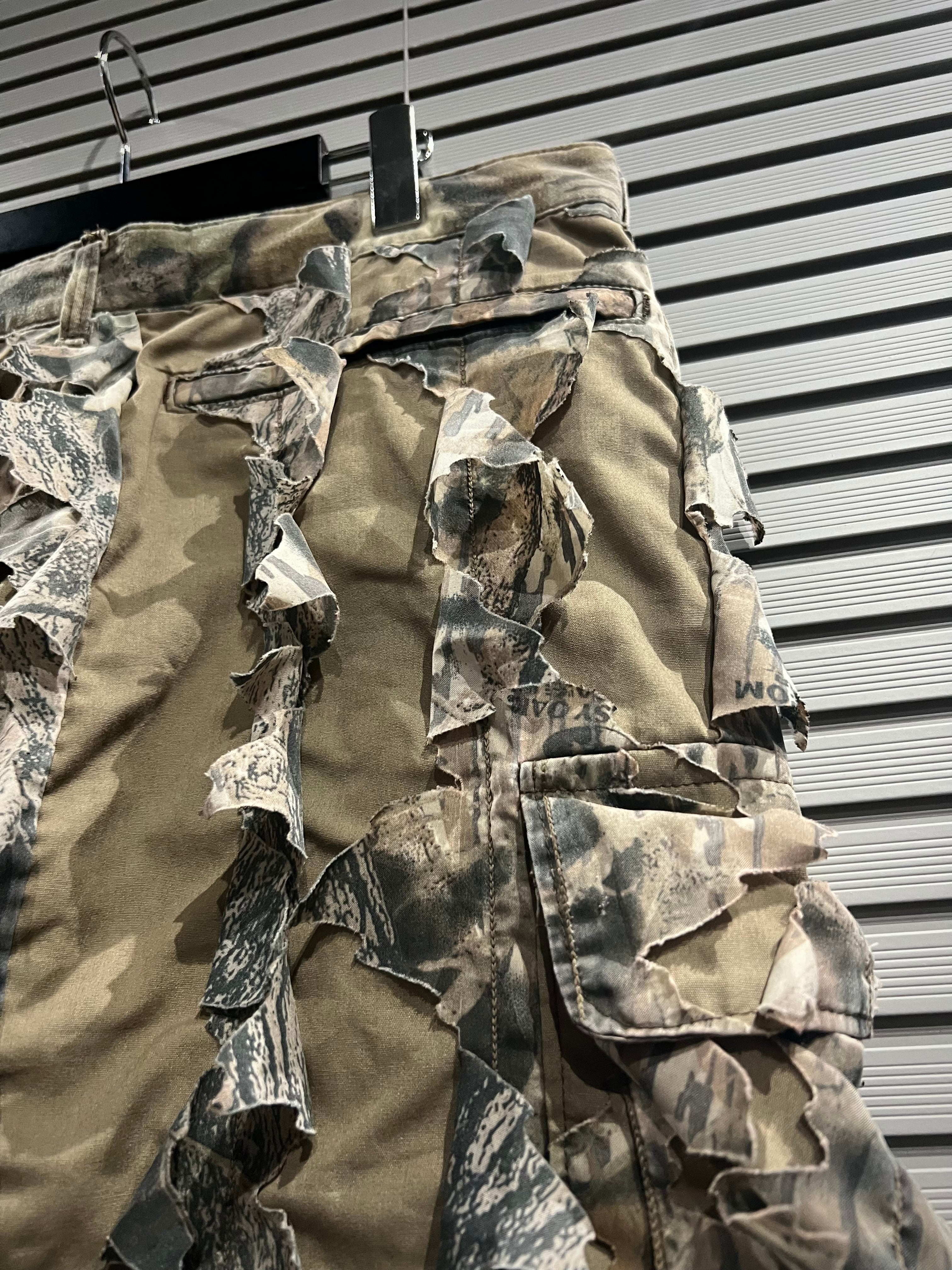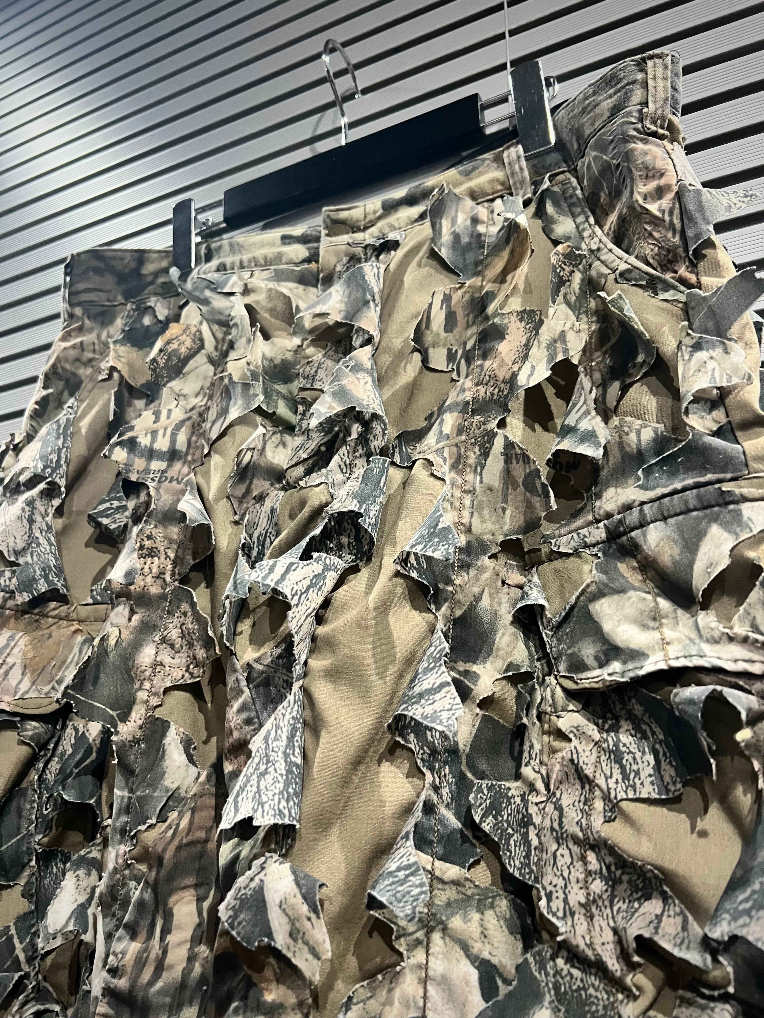 ハンターやスナイパーなどが森林で周囲の茂みに溶け込み擬態するために使用されていた"Cabela's"のカーゴタイプのギリーパンツ。