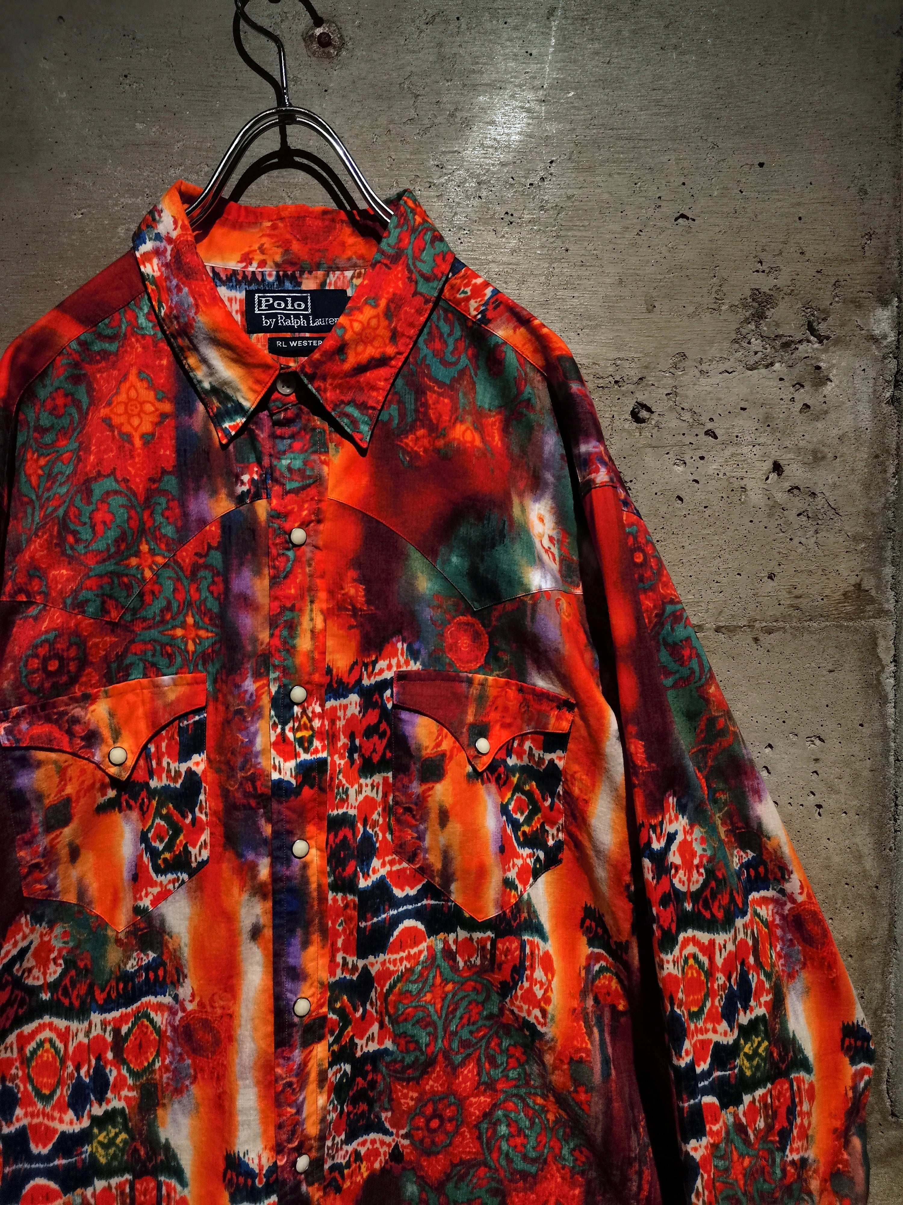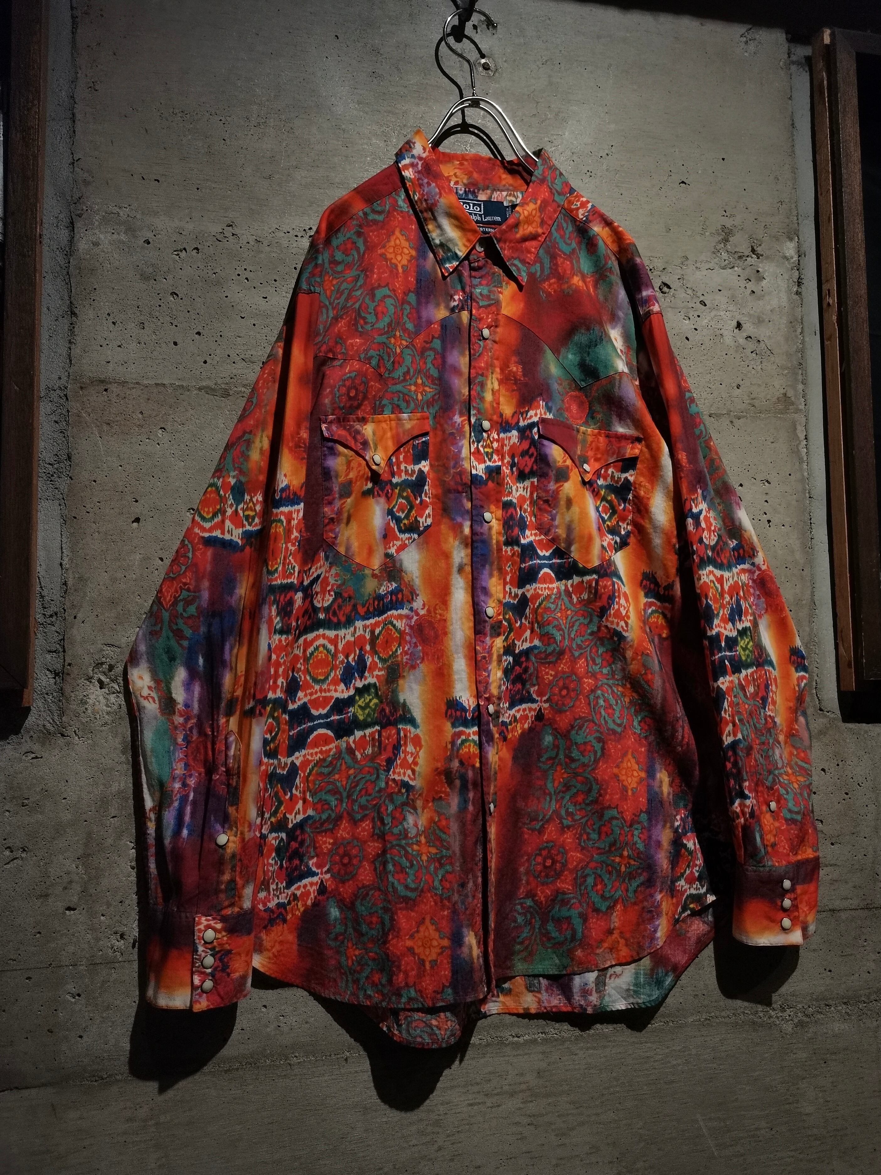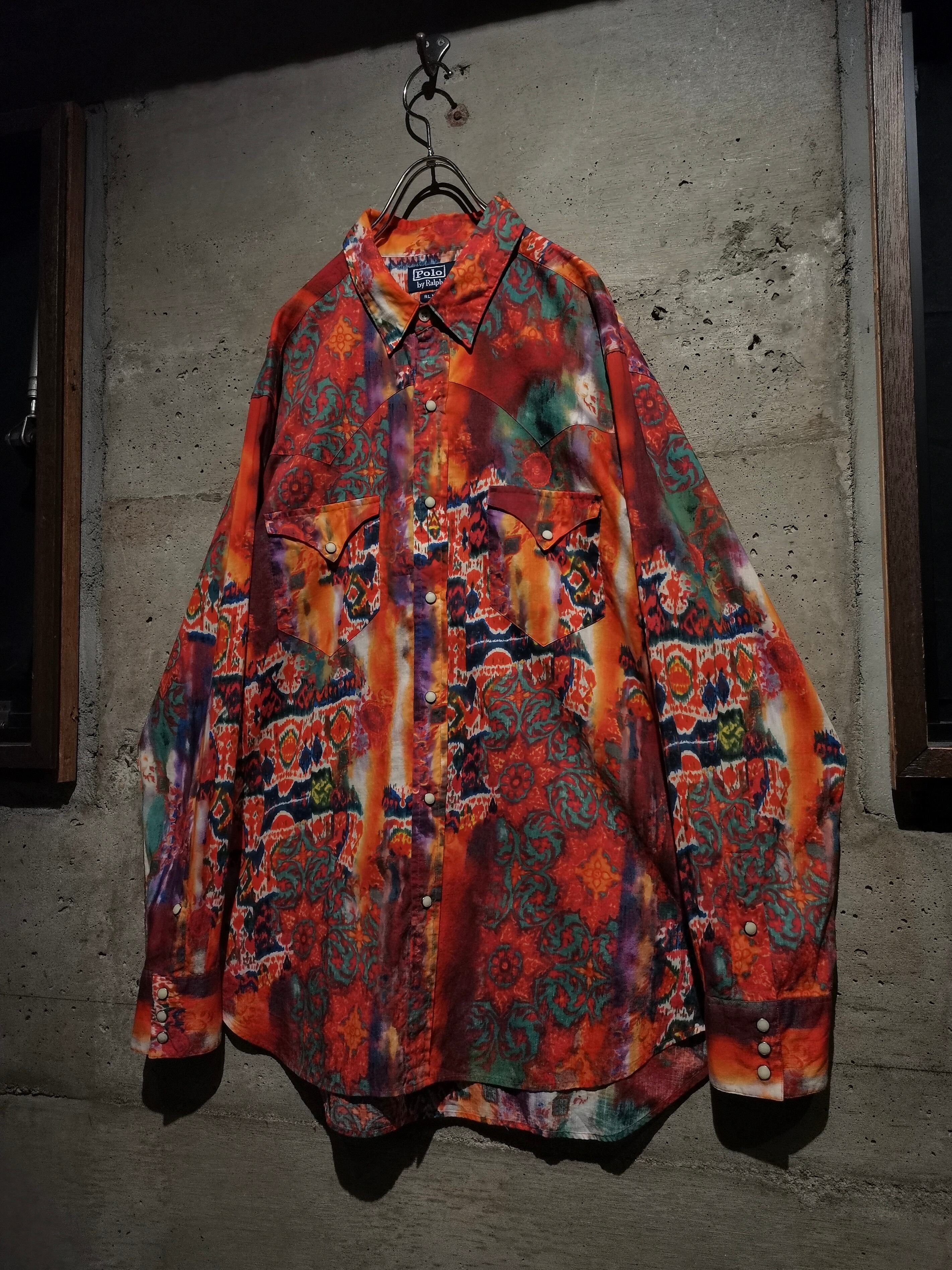 サイケデリックな雰囲気を感じさせる柄使いに、ウエスタンのディテールを落とし込んだ70'sのムードを落とし込んだ非常に洒落たラルフらしい一品。