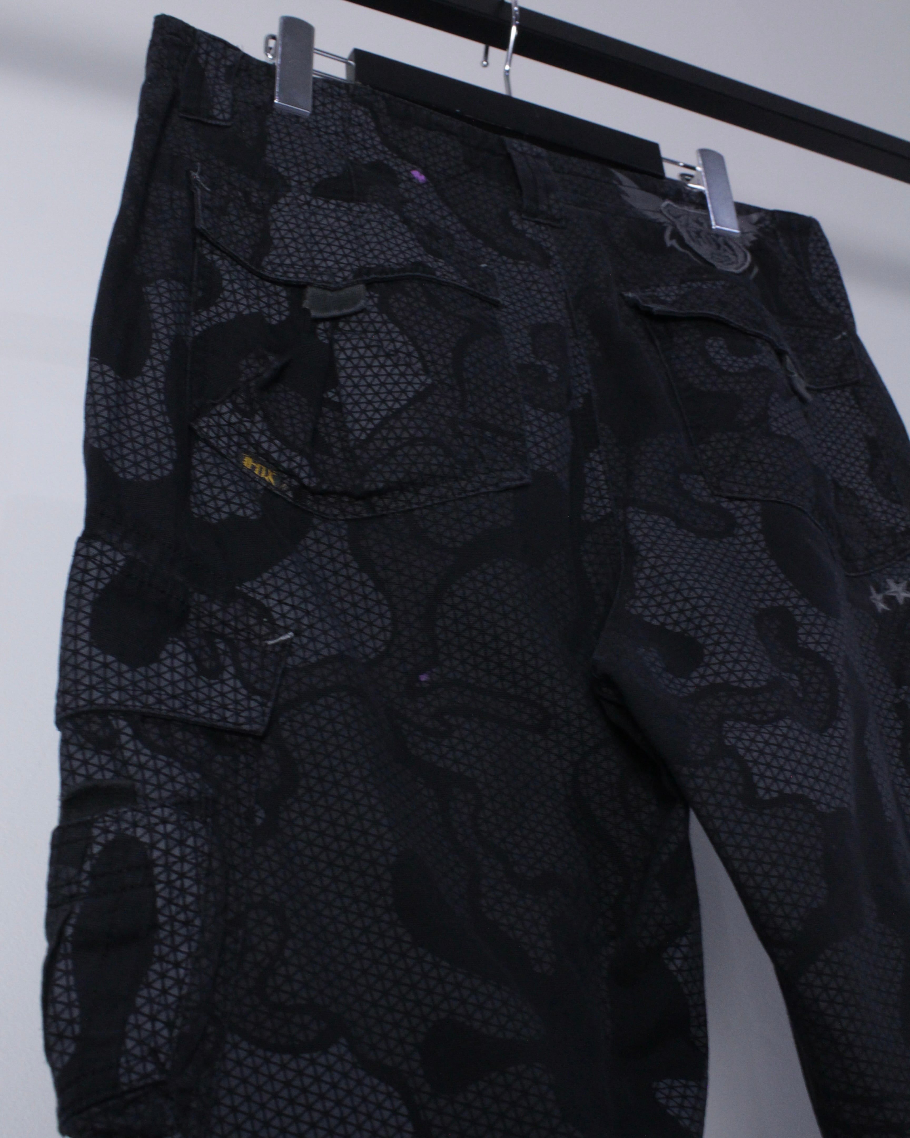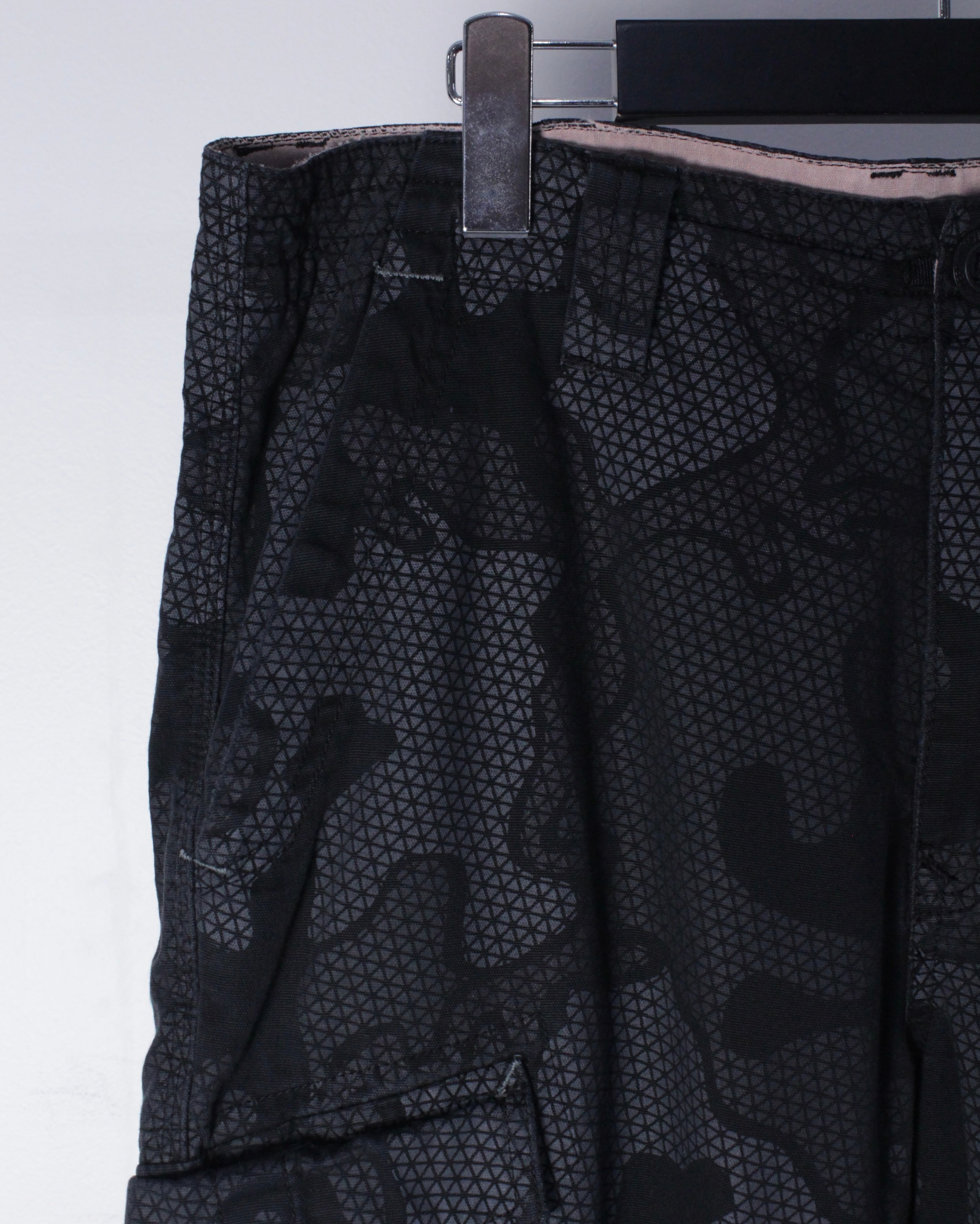 ハリ、コシを兼ね備えた素材を用いたタフなボディに、モノトーンでカモフラージュ柄を載せたカーゴパンツ。