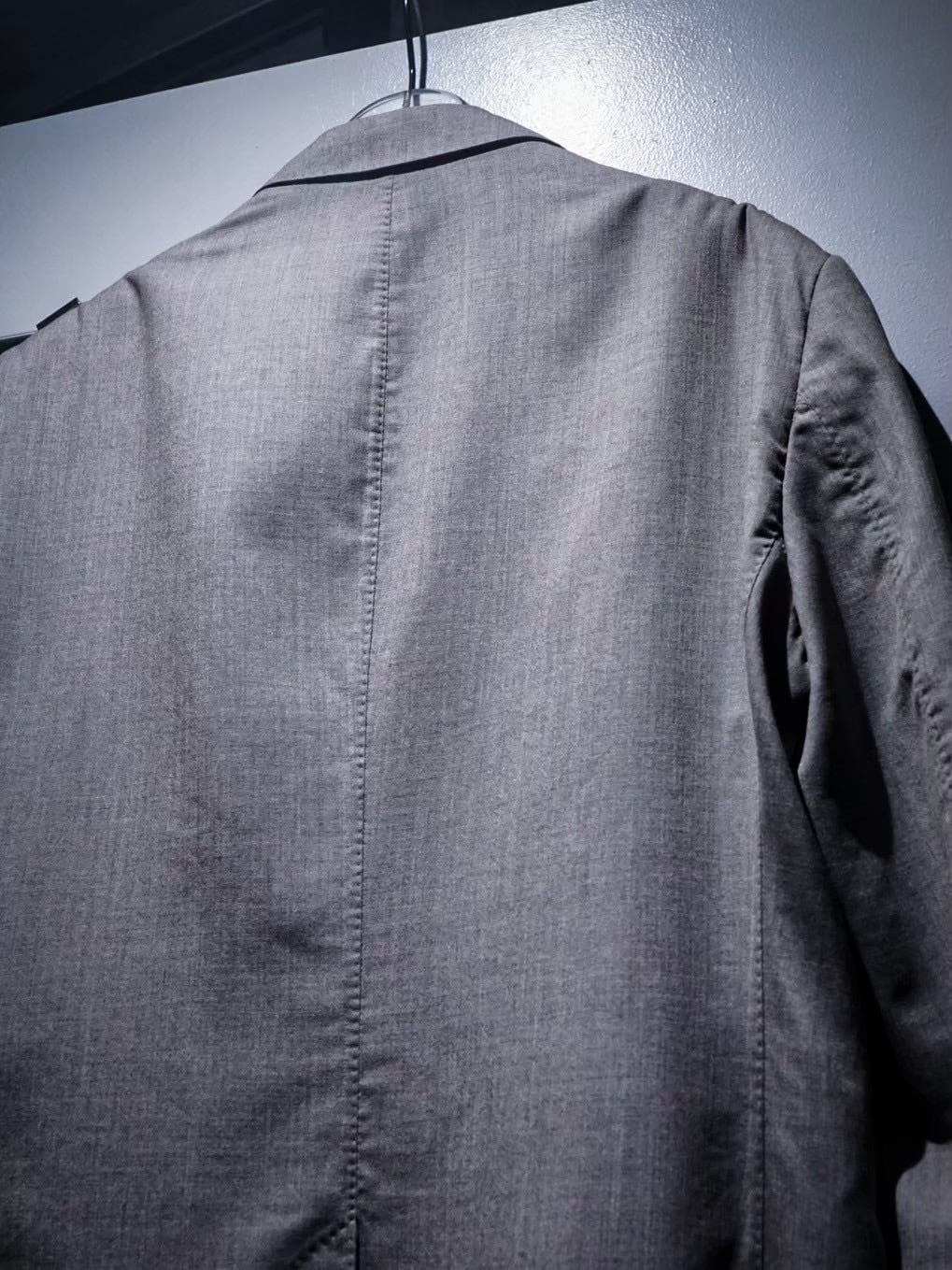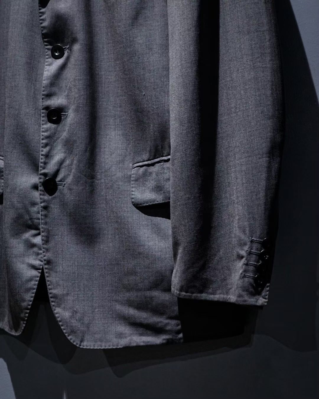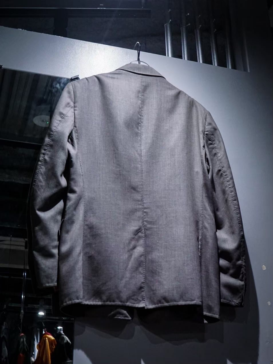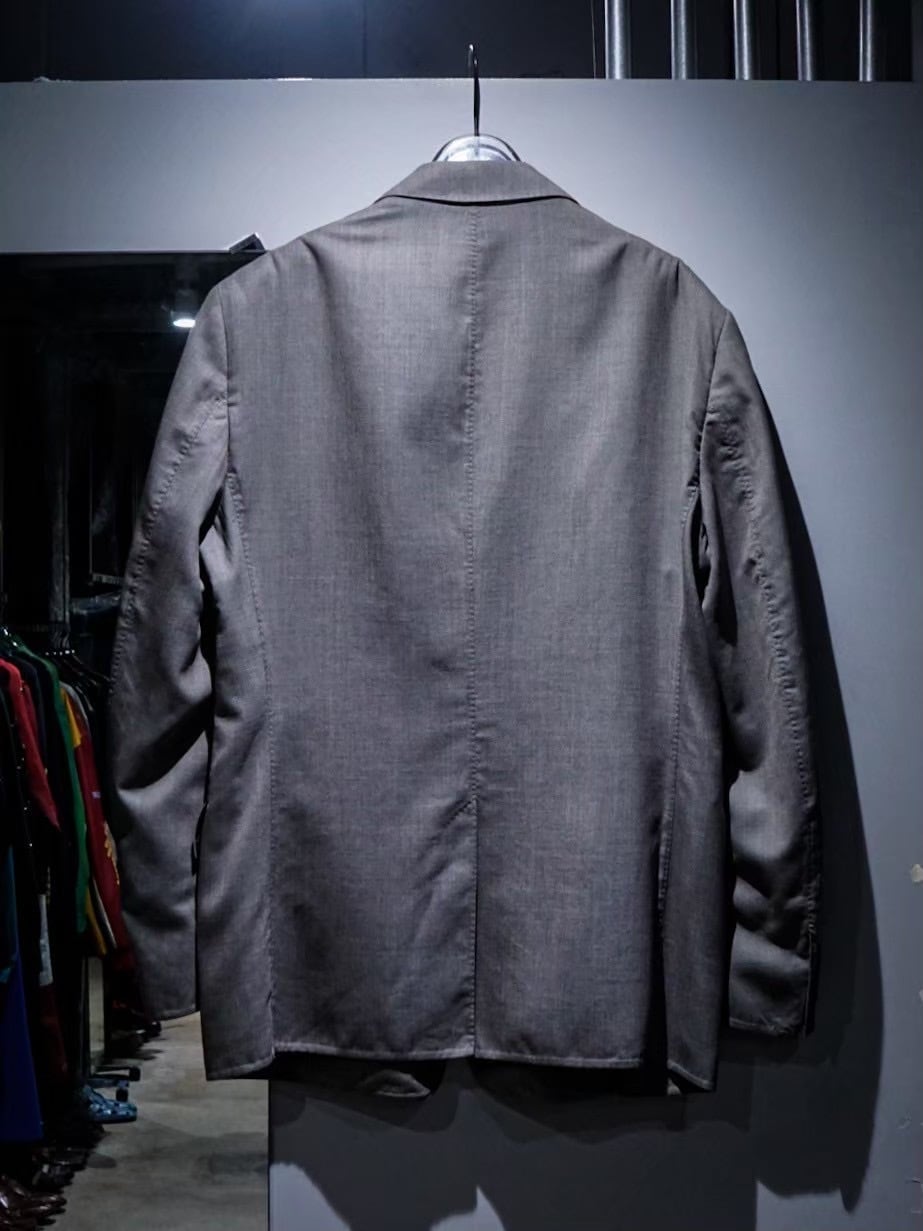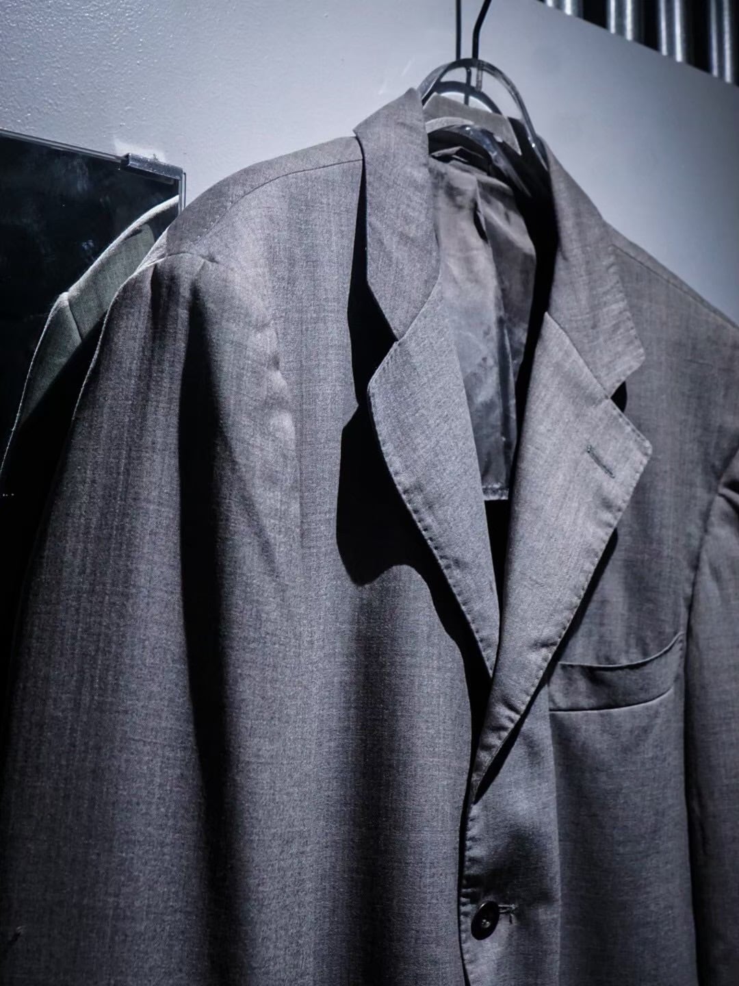 シングルブレスト、程良くゆとりを持たせたルーズなサイジングにボディのしなやかな質感も相まって、高級感を漂わせる1着ながらも肩の力を抜いての着用も可能。背抜きで今から暑くなる季節でも快適に着ることができます。