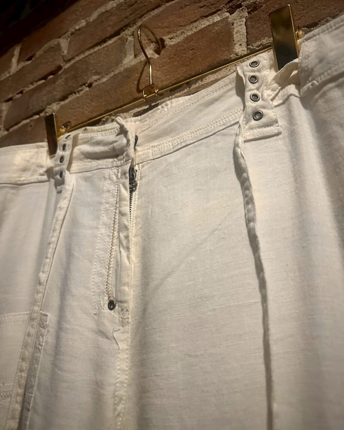 足を美しく魅せてくれる素晴らしいシルエットに上質なリネンを用いた、末長くご愛用して頂きたい極上の一本です。