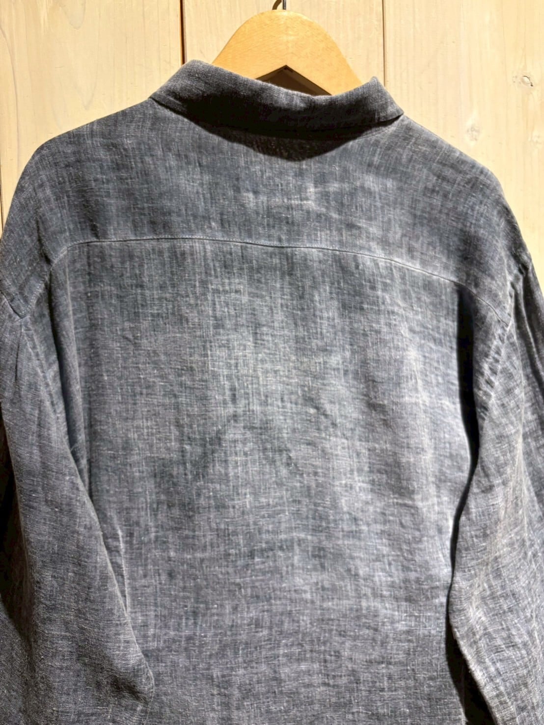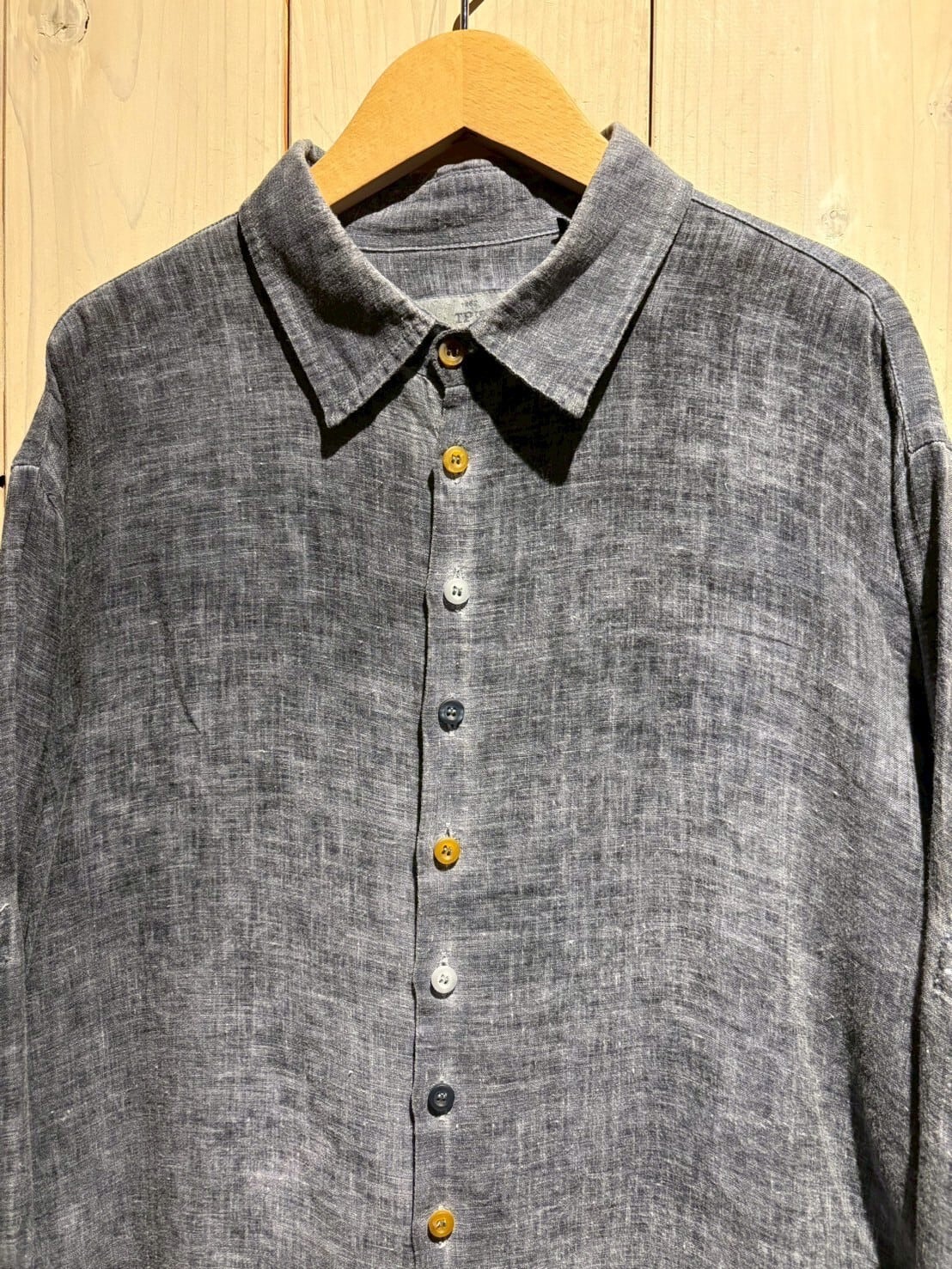 染め特有の美しい表情に、細やかなディテール使いが光る長袖シャツの逸品です。