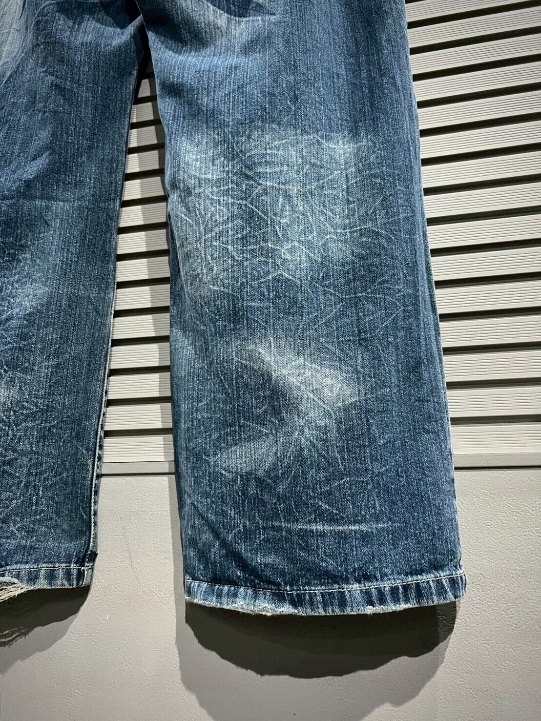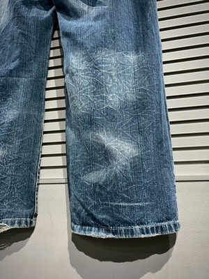 ライトブルーのデニムをボディに使用し、随所にアタリ加工を効かせたバギーデニムパンツ。