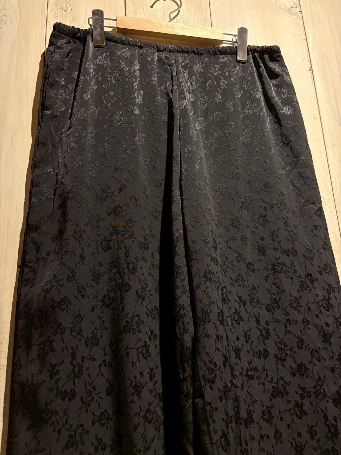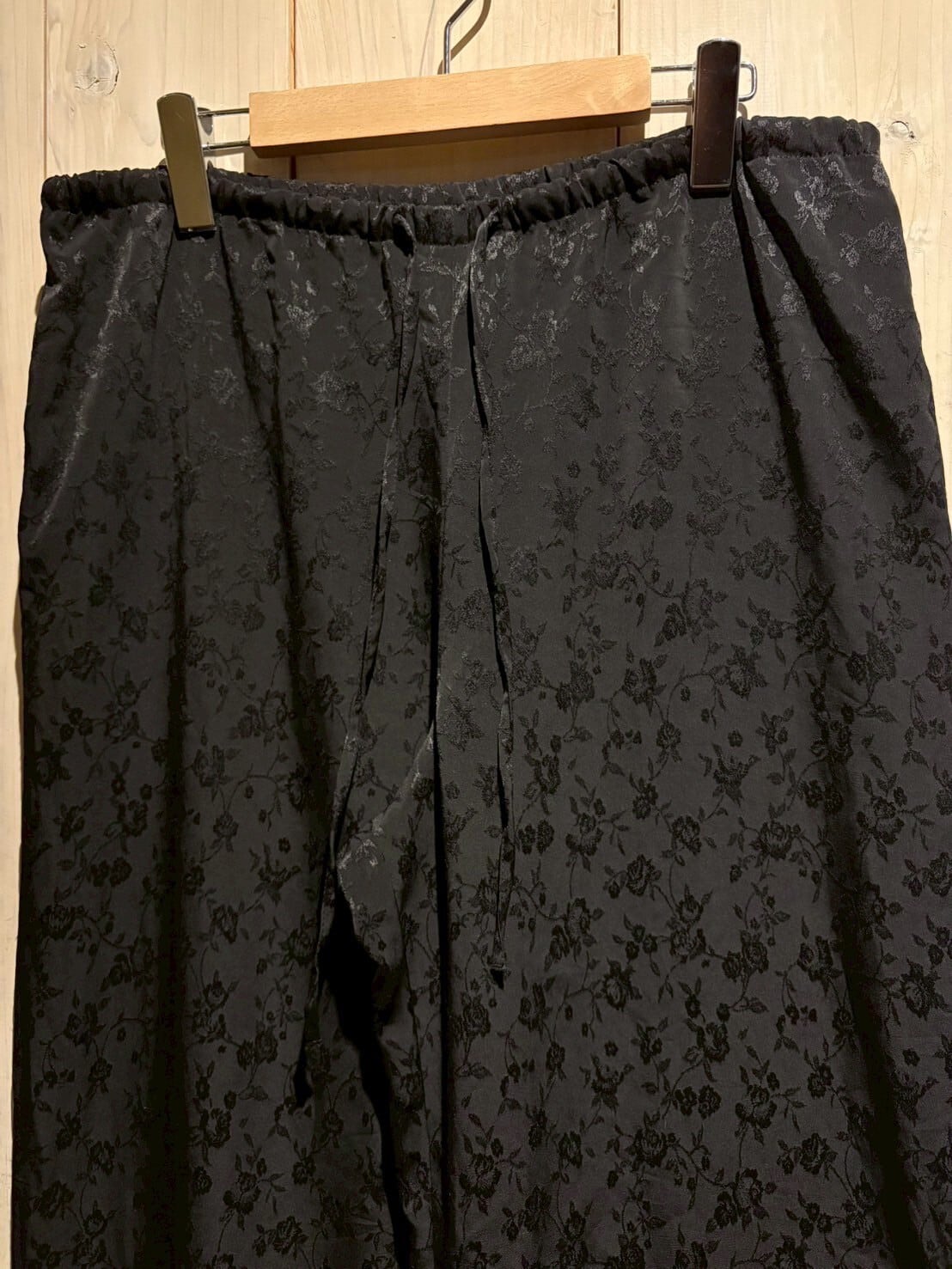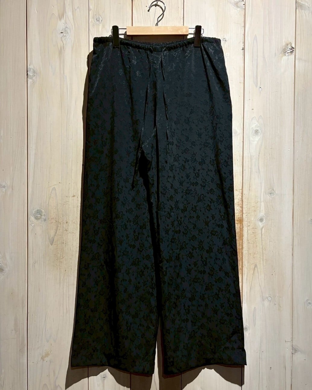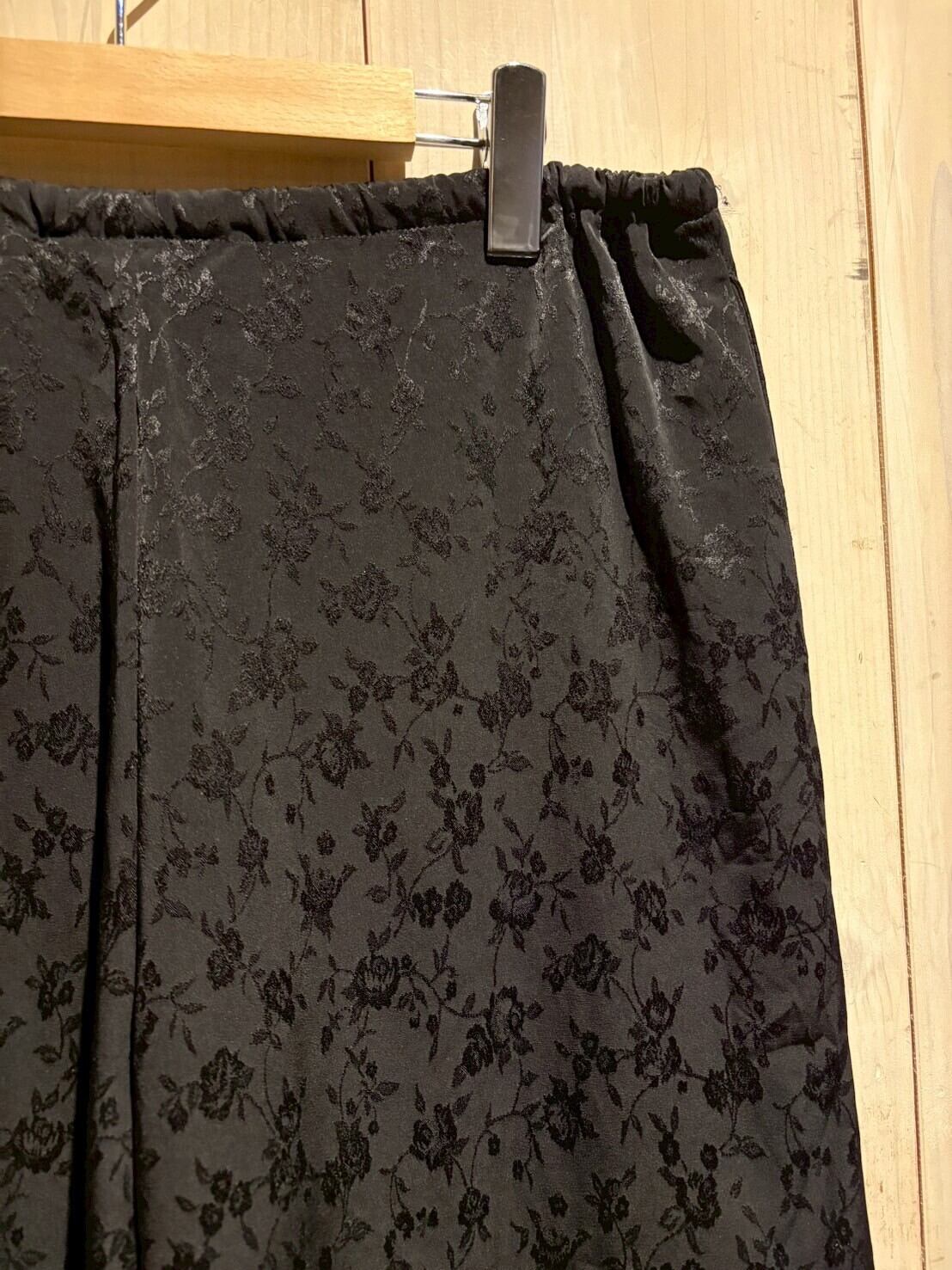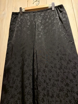 サラリと軽やかな質感のポリボディに、花柄を載せたイージーパンツ。