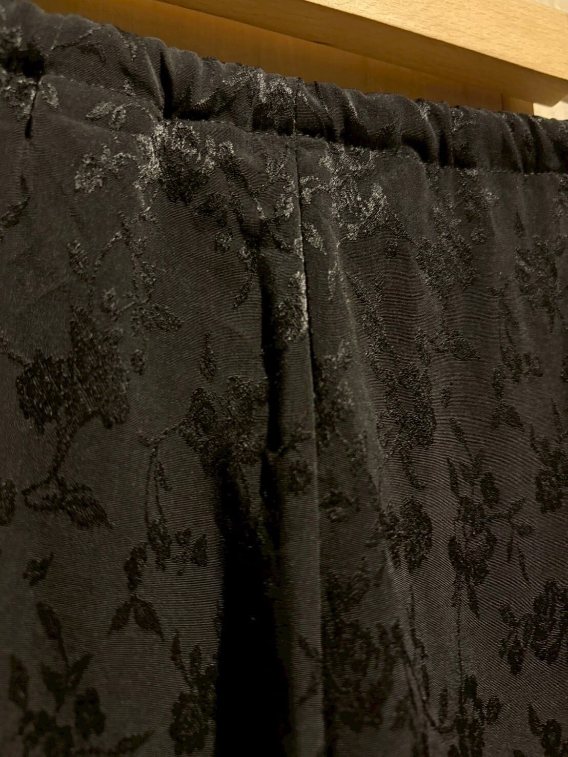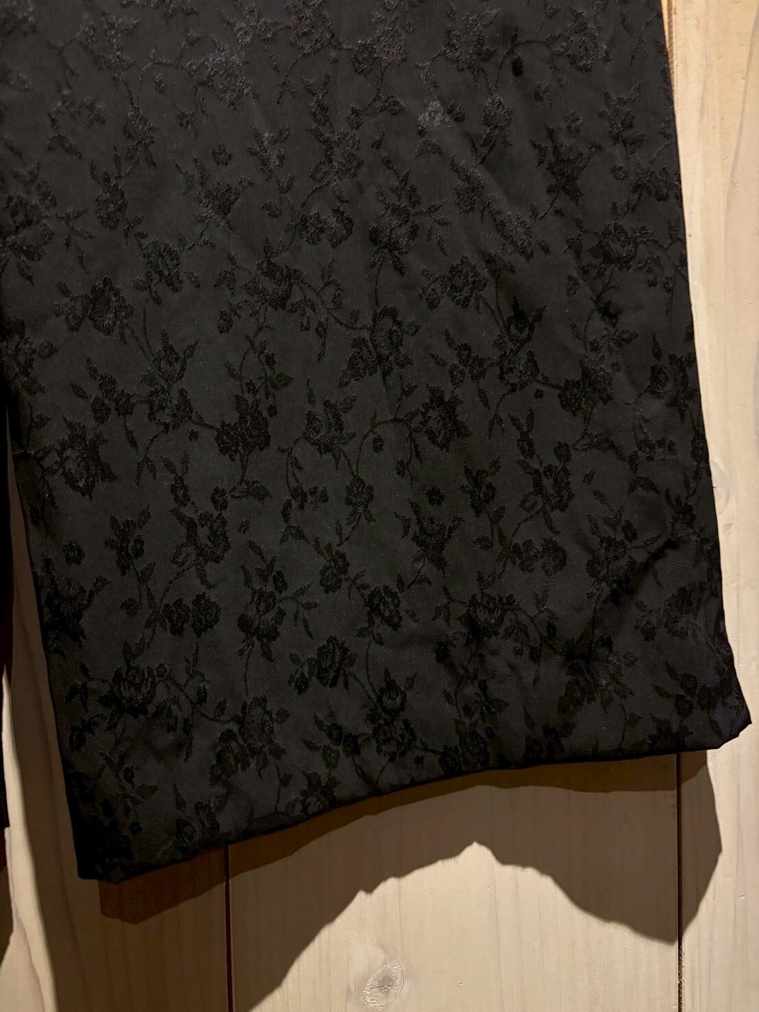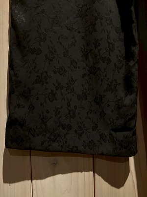 総柄ながらもブラックで統一したことで気品漂い、落ち着きのある雰囲気を纏っています。更に織りによって花柄を施すことで単色ながら特有の奥行きを放っています。
