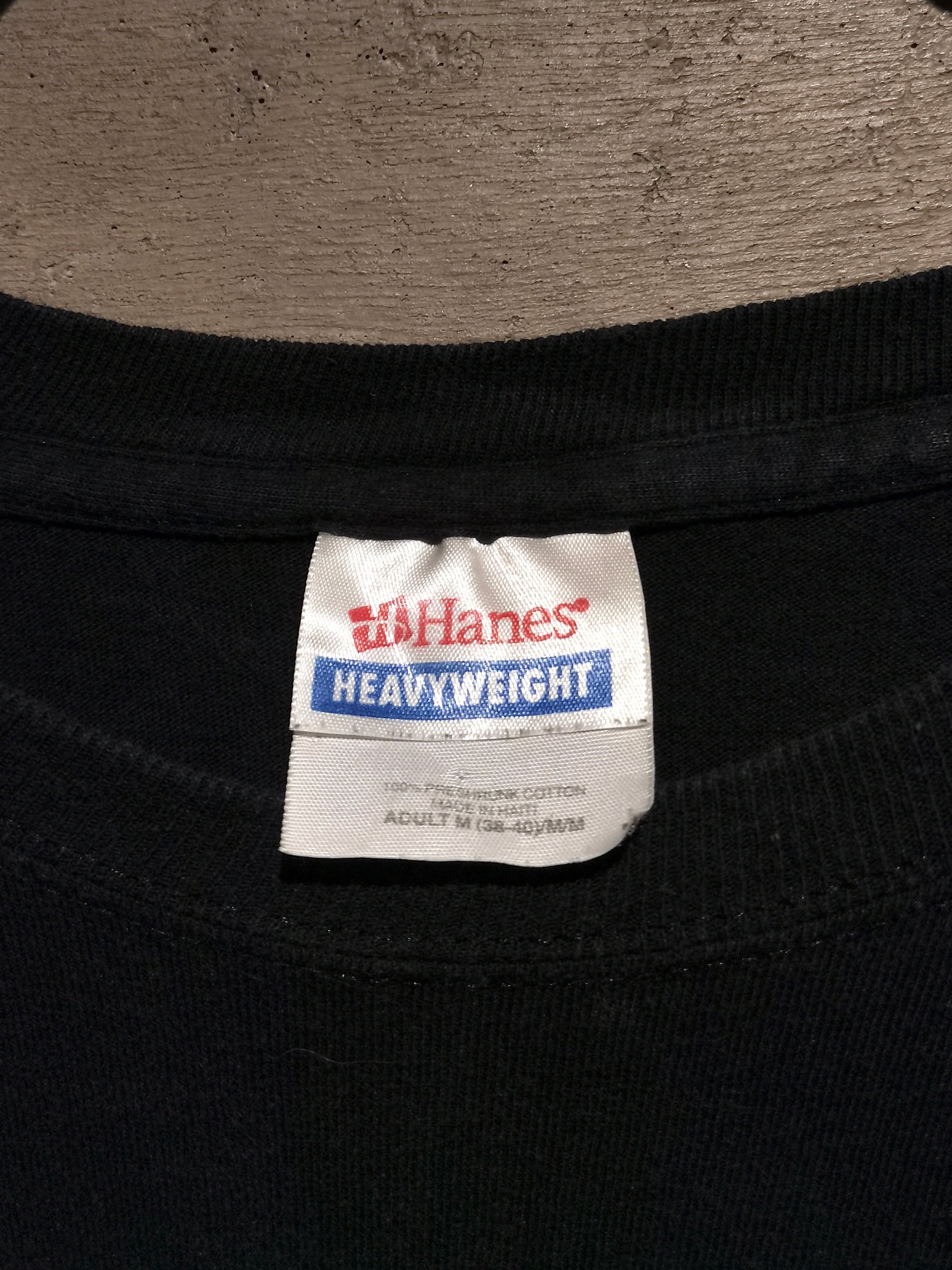 コピーライト付きの"Hanes HEAVY WEIGHT"ボディ。スッキリとしたサイジングで、1枚でも、インナー使いでも着用しやすい汎用性にも優れた1着です。