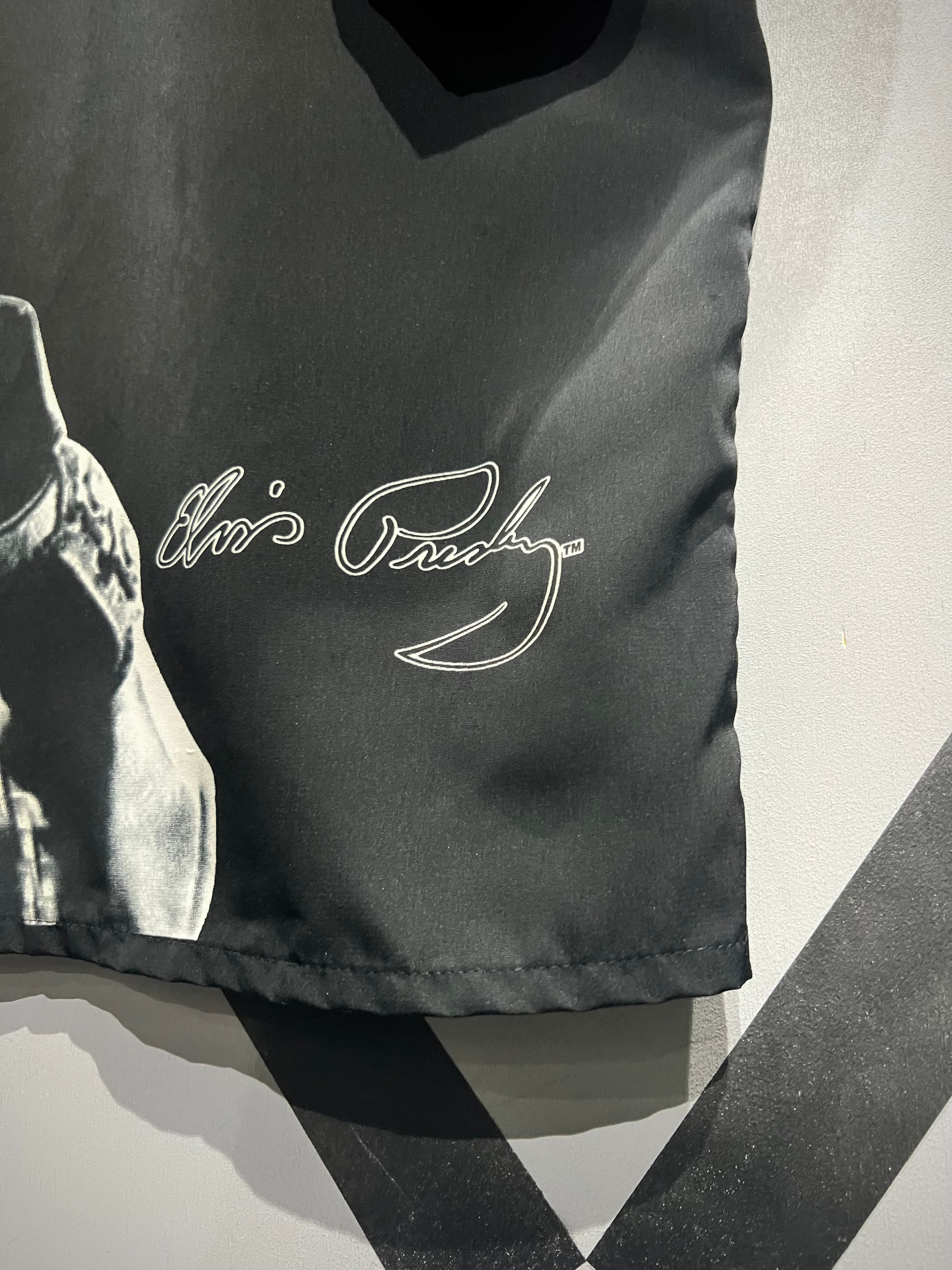 ポリエステル素材の着心地の良いボディに、今は亡き偉大なミュージシャン、エルヴィス・プレスリーが載せられ、裾元には彼のサインが施された半袖シャツ。