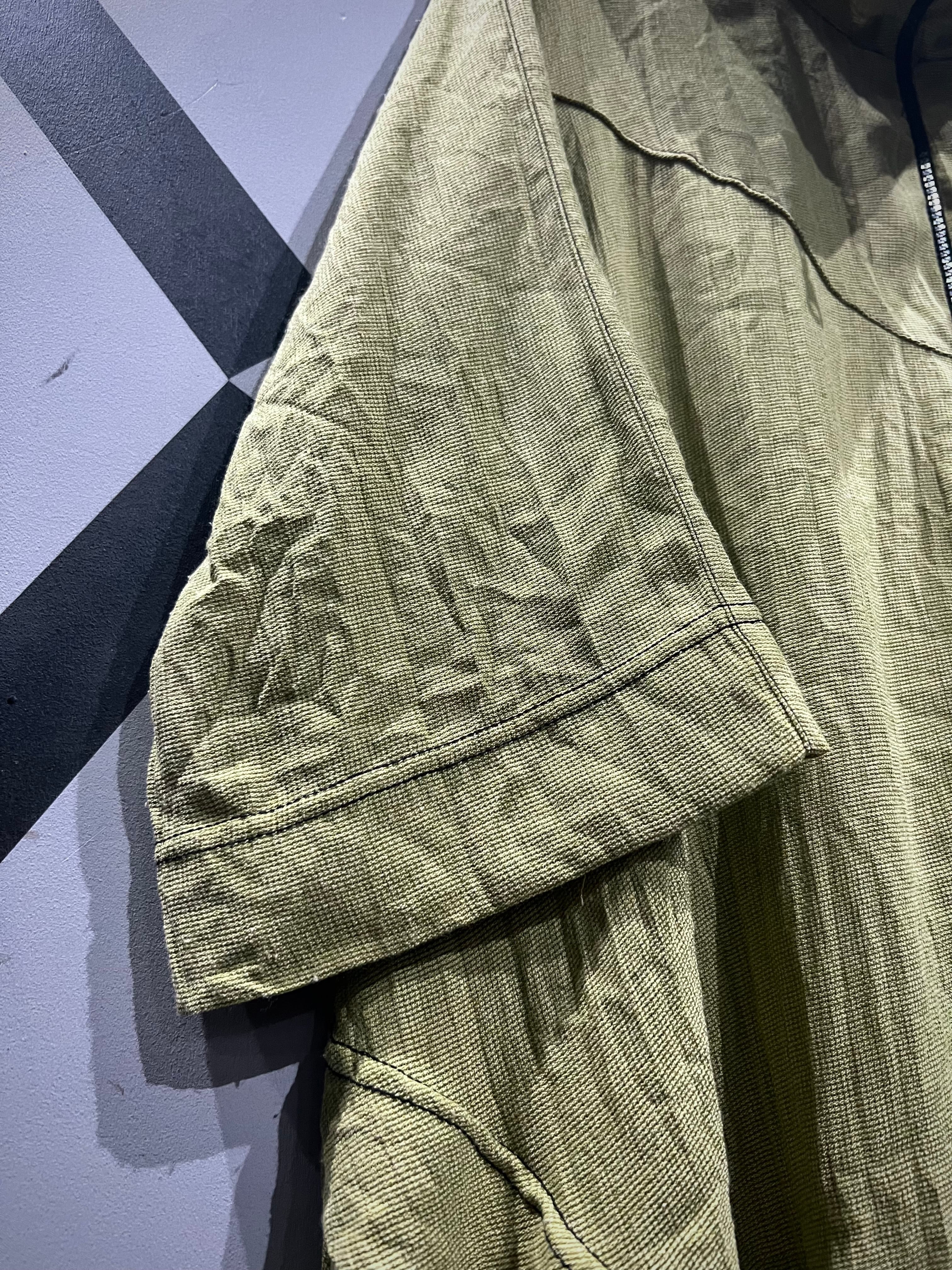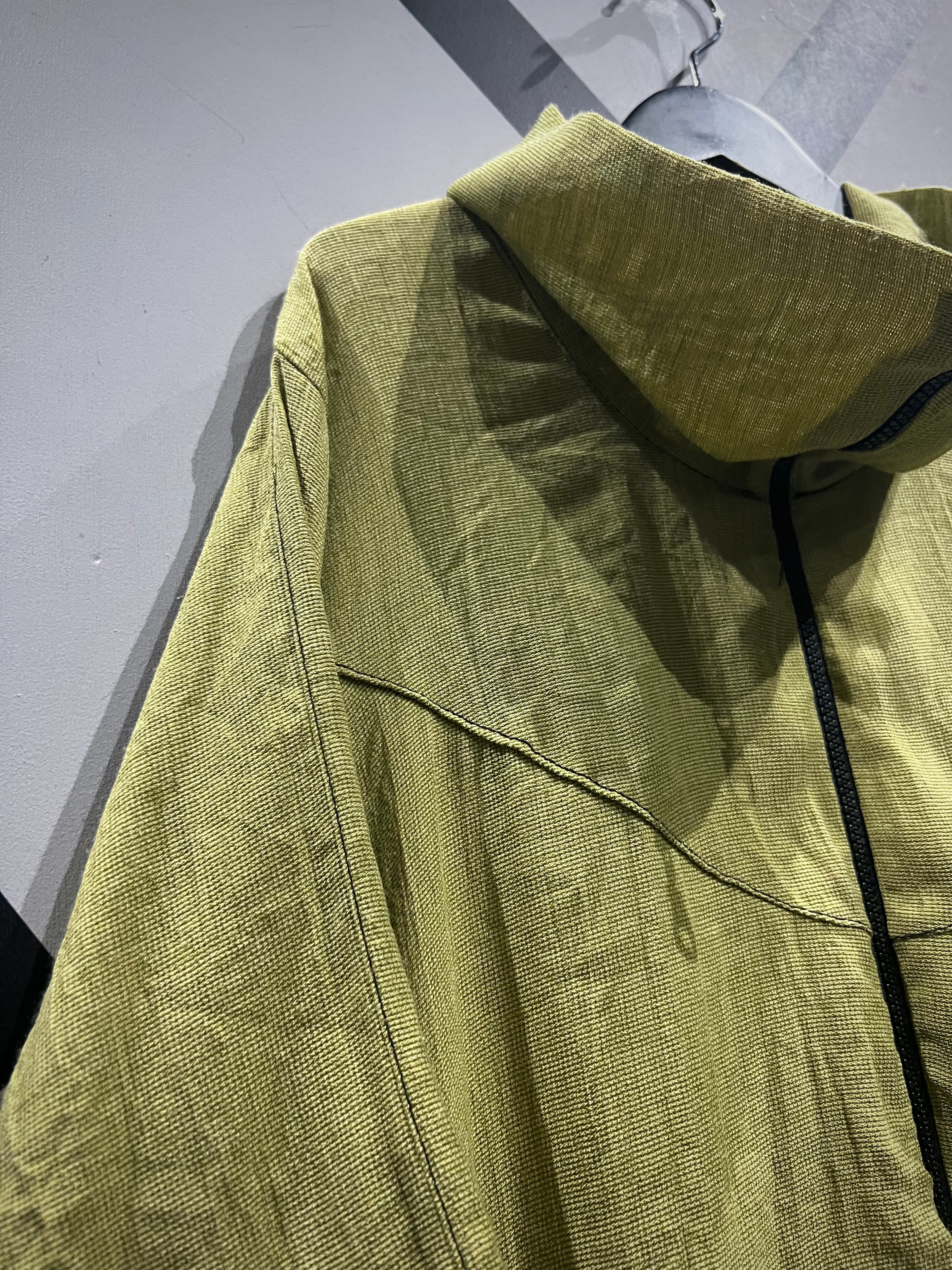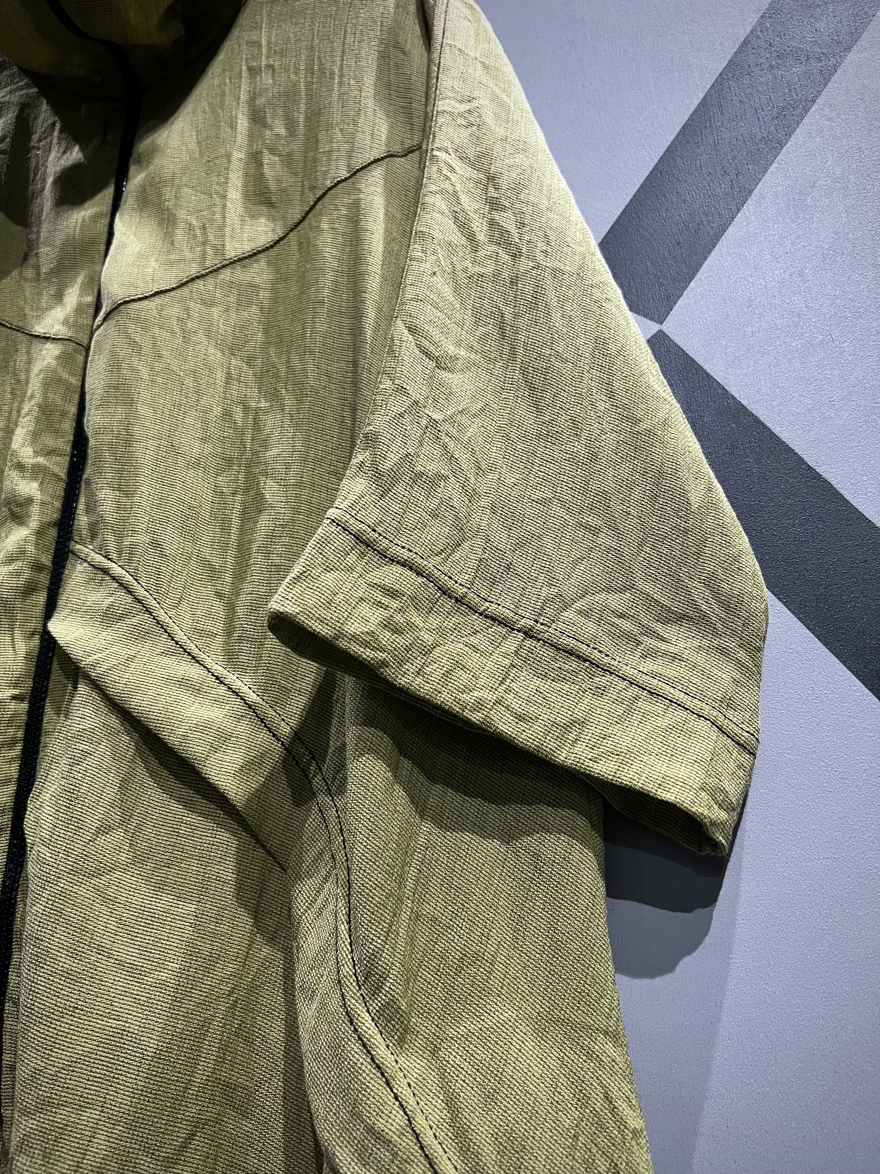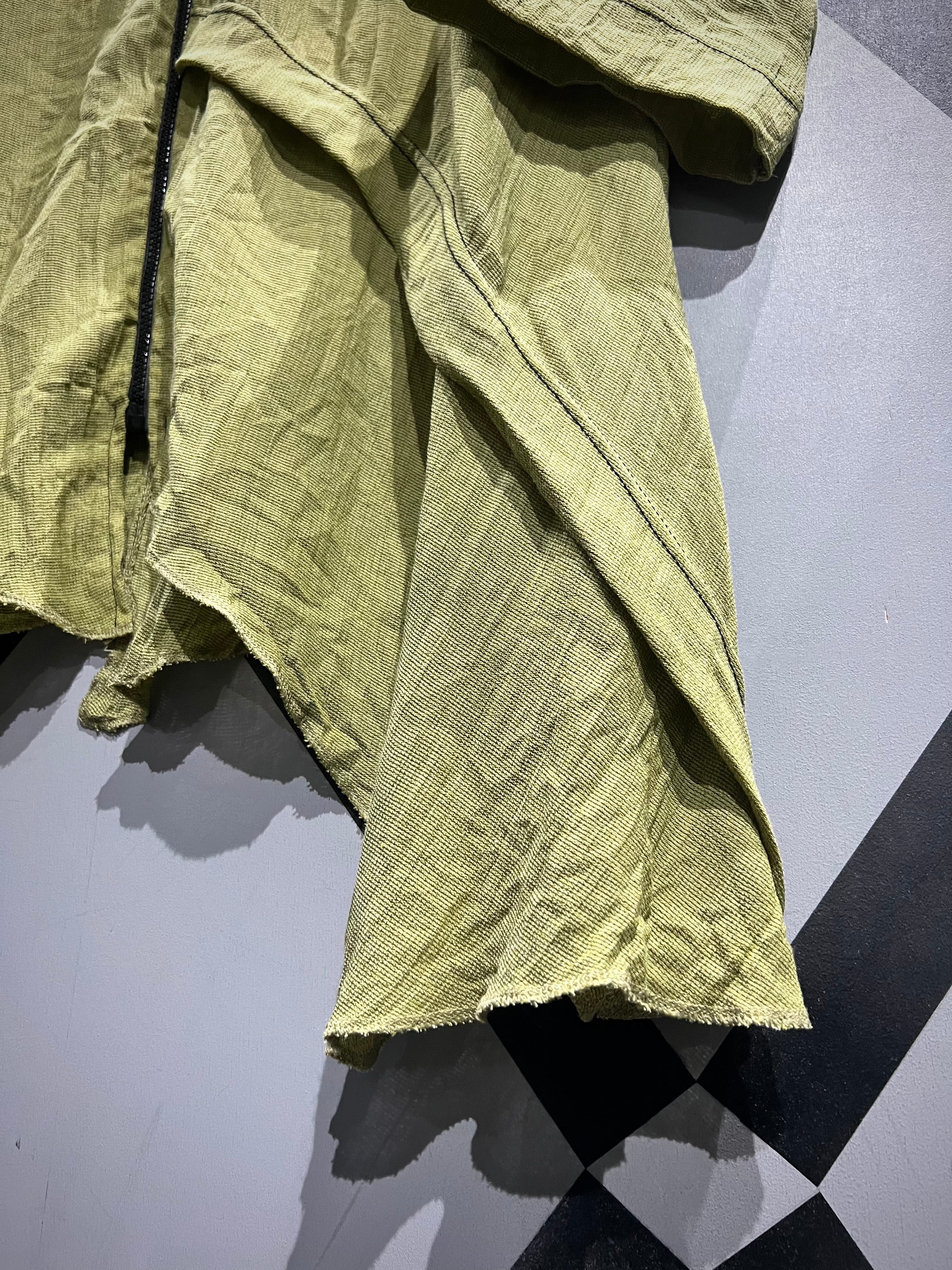 ルーズなサイジングでレイヤードも楽々可能。フロントはジップアップで着脱も楽チン。そして裾に向かっての広がり具合も非常に美しく、変形モノの中でもかなりクオリティが高く仕上げられています。