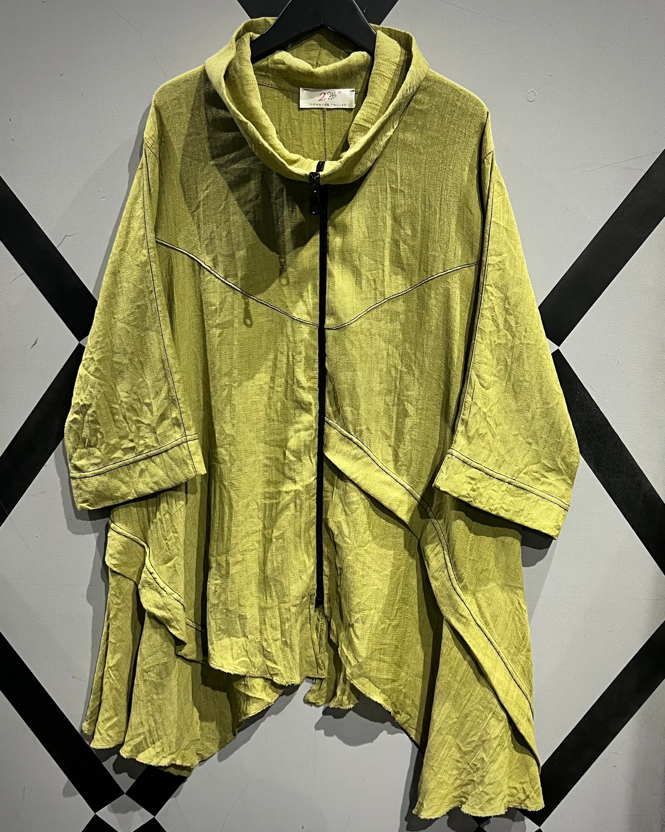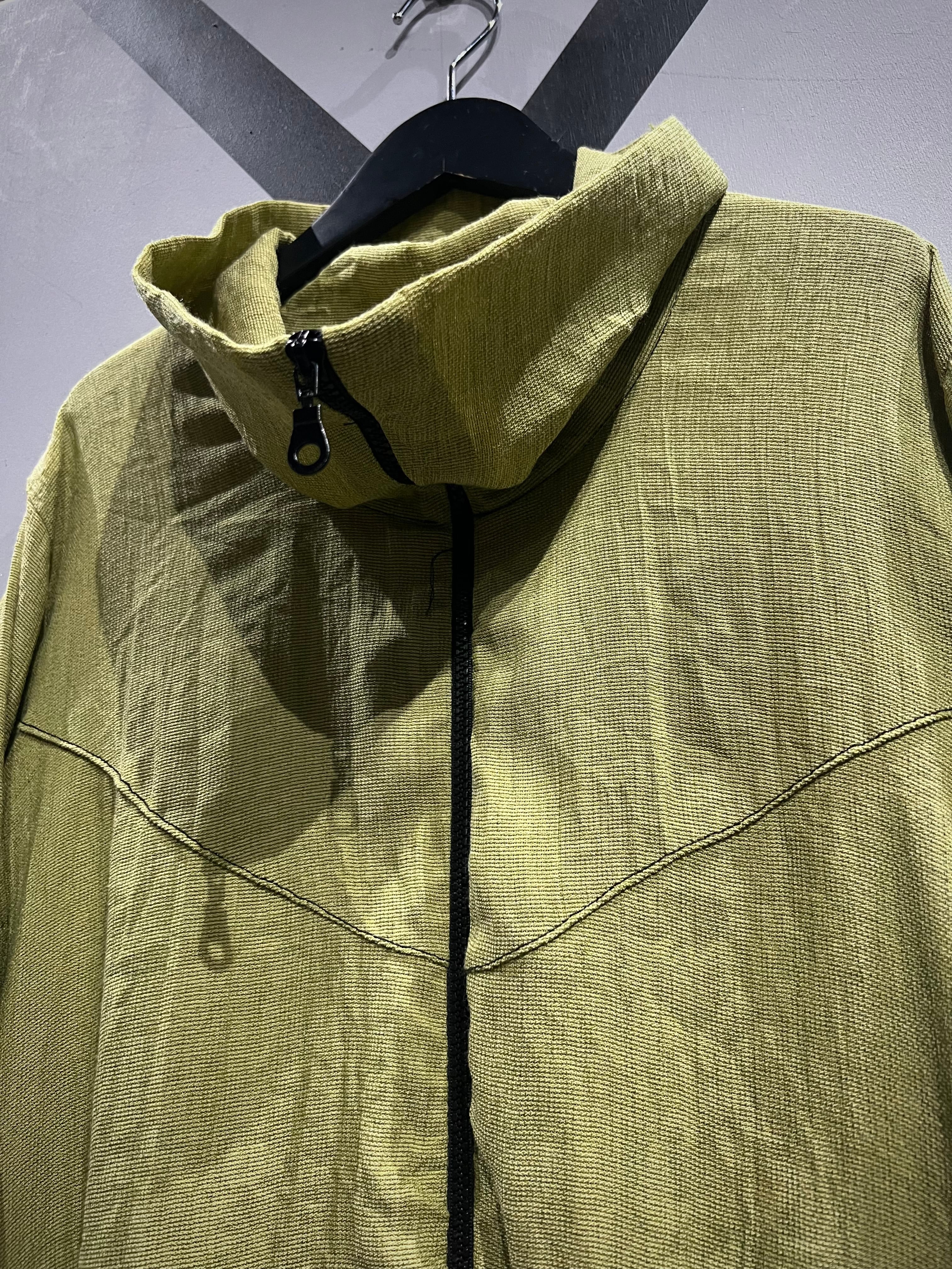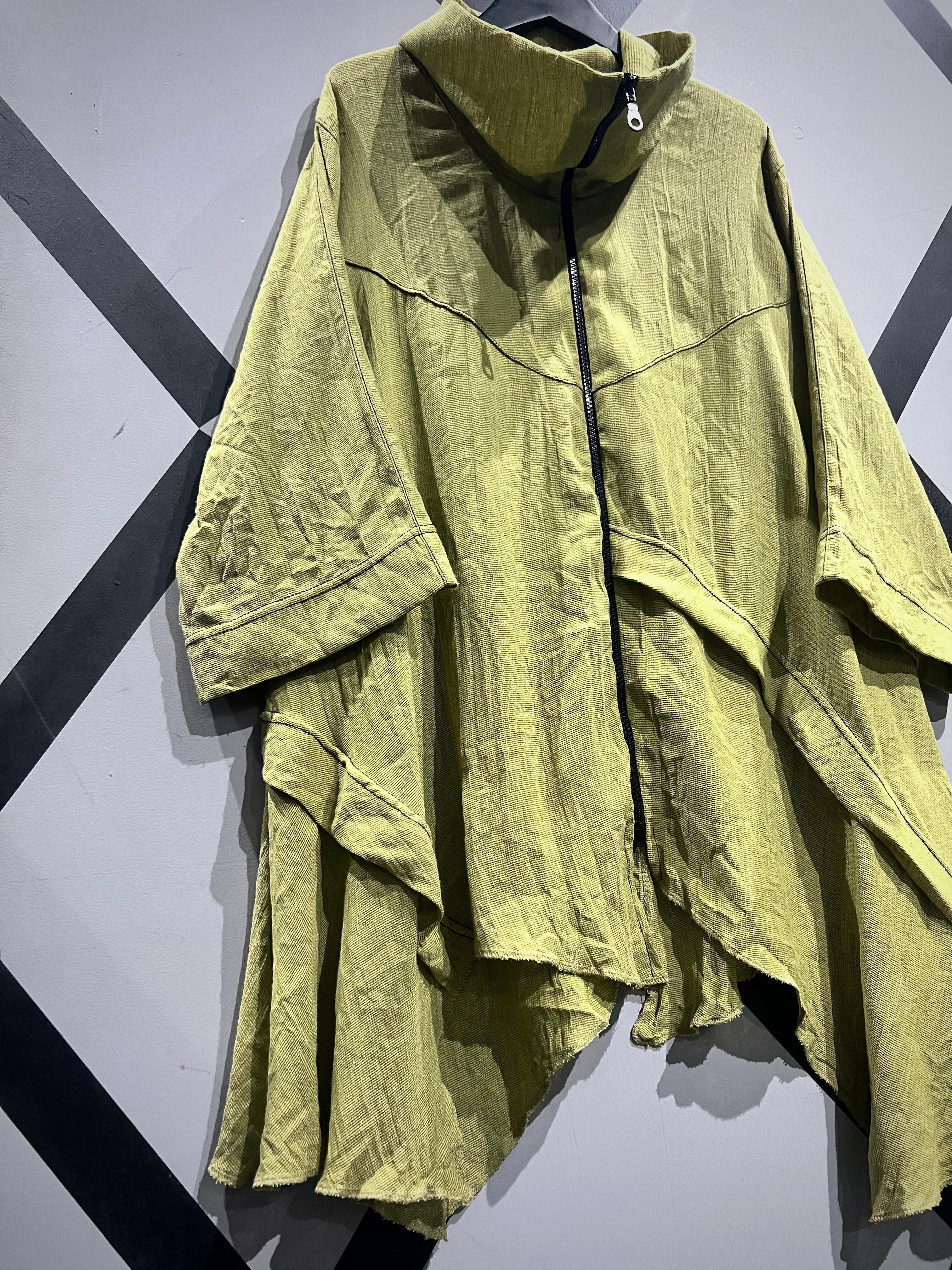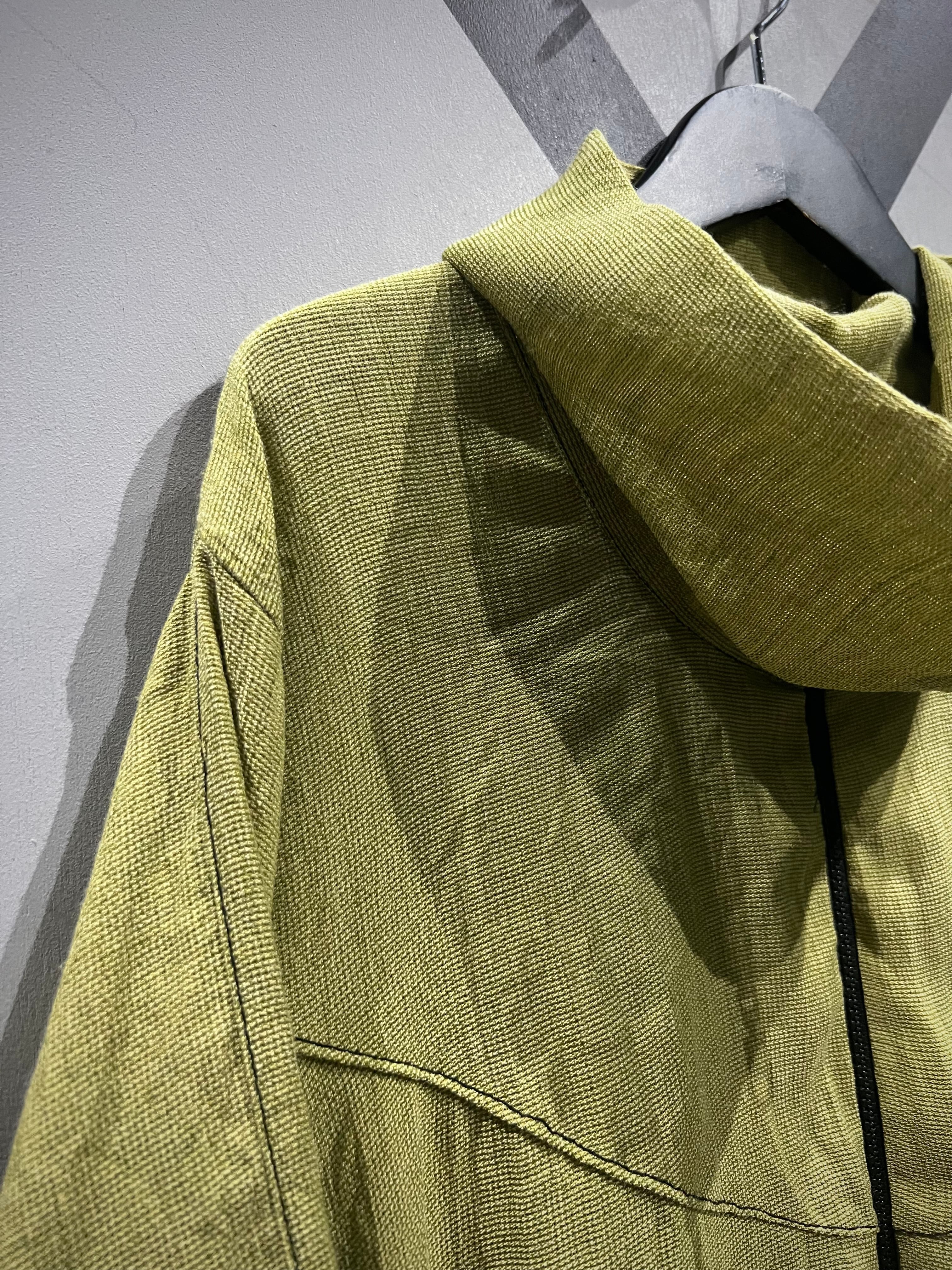ルーズなサイジングでレイヤードも楽々可能。フロントはジップアップで着脱も楽チン。そして裾に向かっての広がり具合も非常に美しく、変形モノの中でもかなりクオリティが高く仕上げられています。