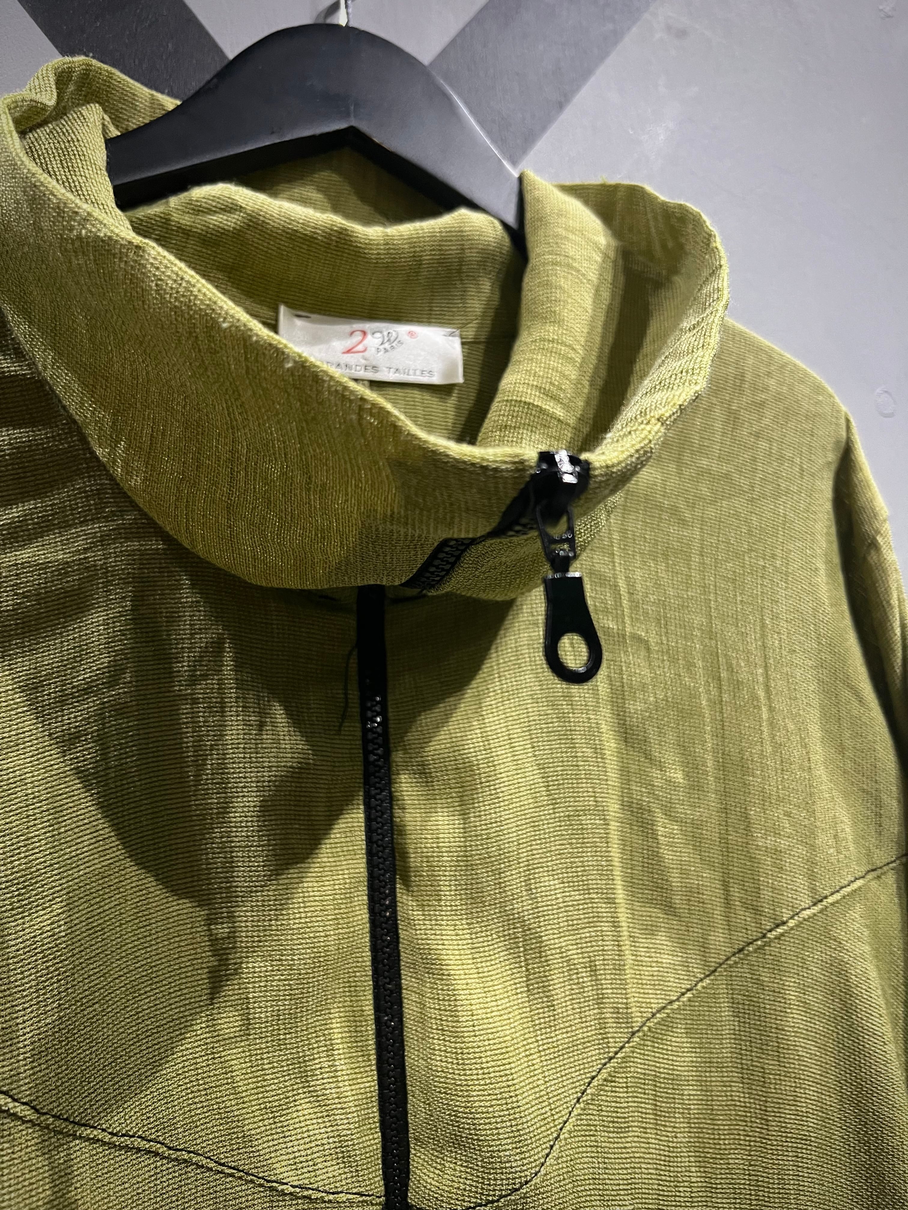 ポリ、ビスコースを用いた滑らかなテキスタイルを用いた"変形"タイプのフレンチメイドのジャケット。