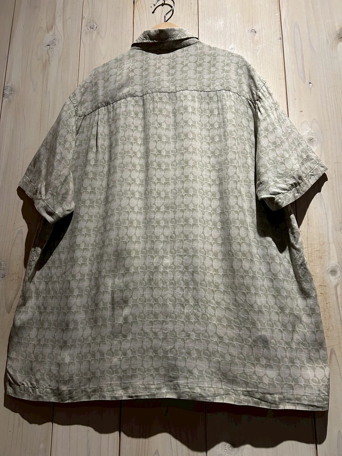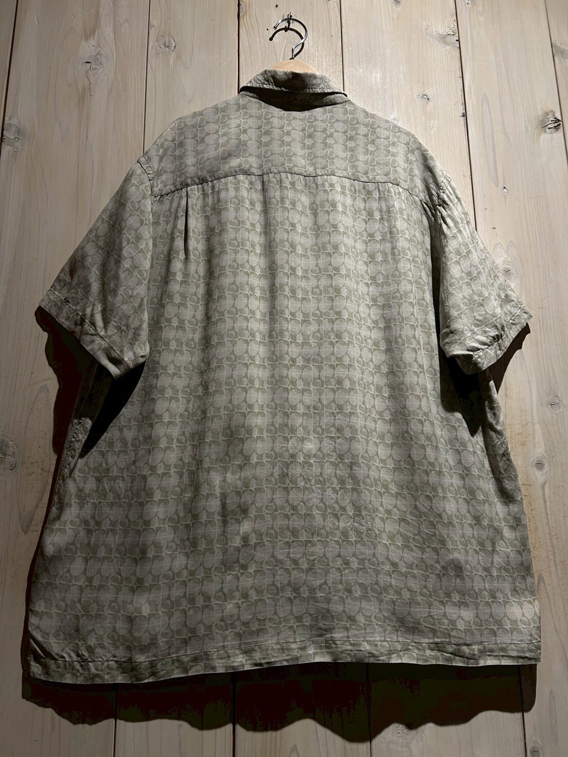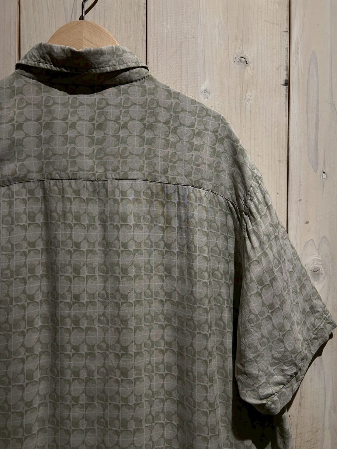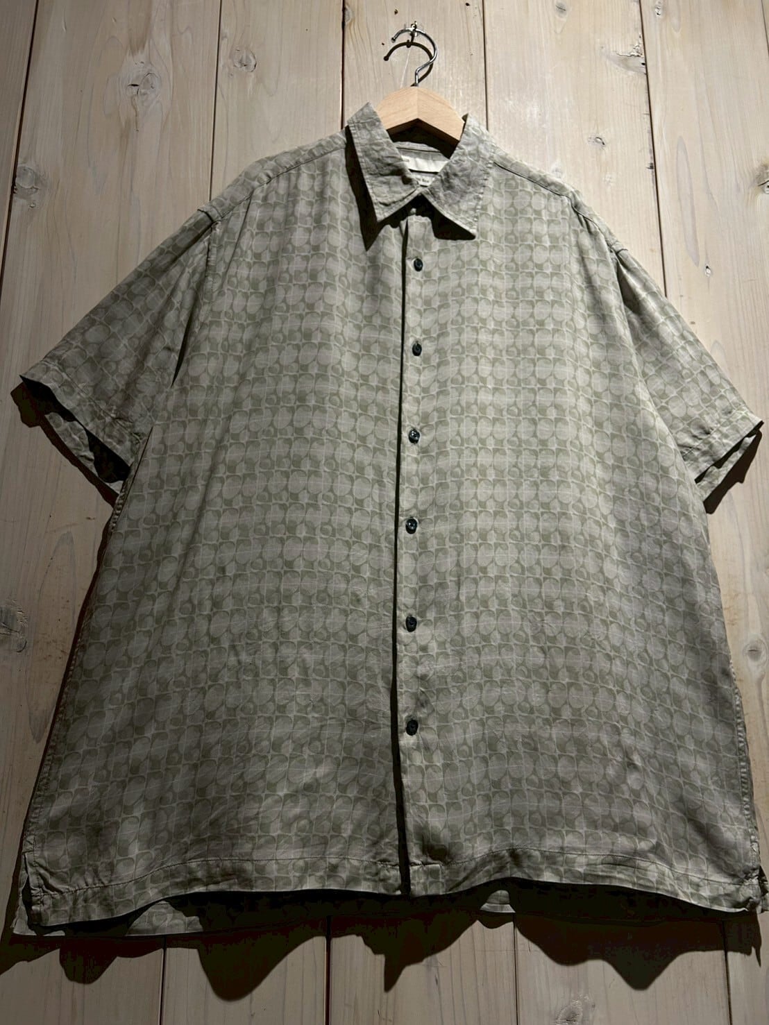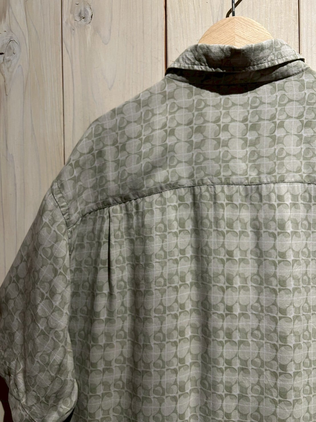 古着では定番の抽象的な柄を載せた柄シャツとはまた異なる印象を与える、高いデザイン性を誇る当店ならではの逸品となっております。