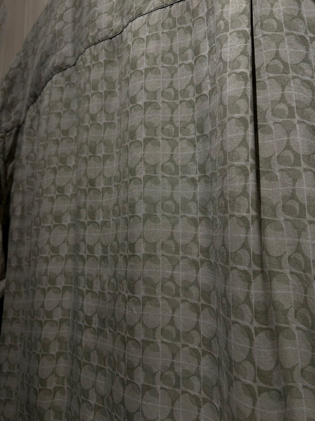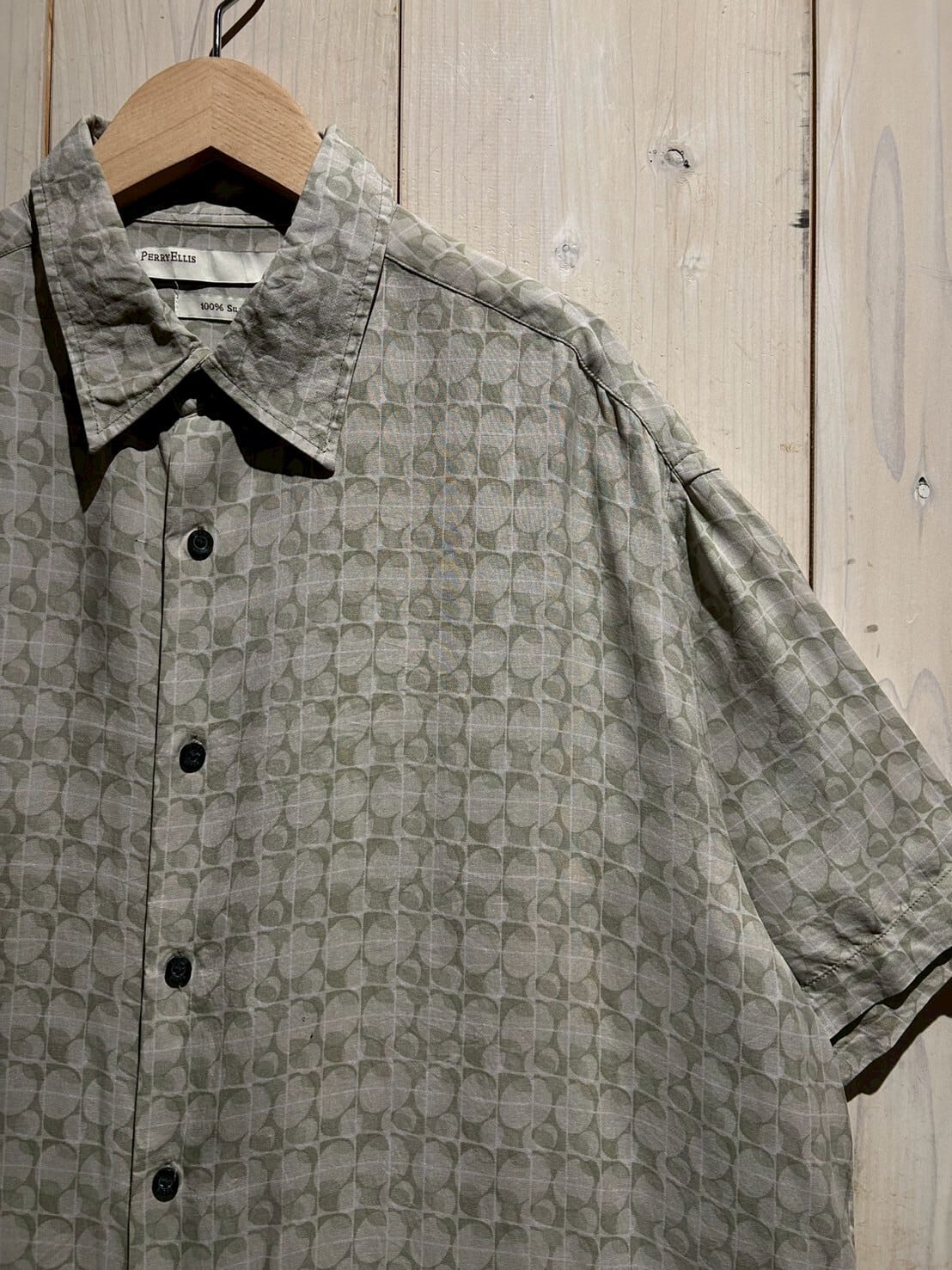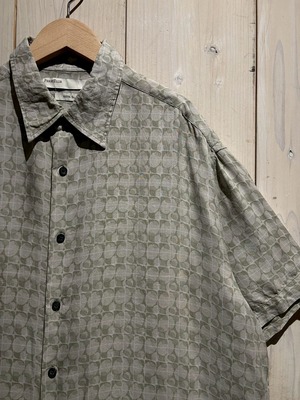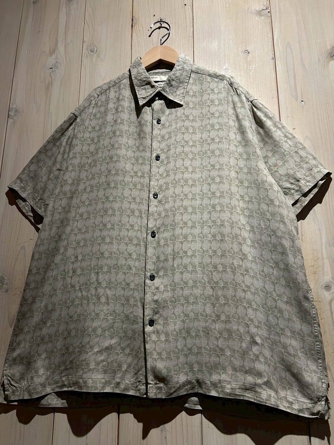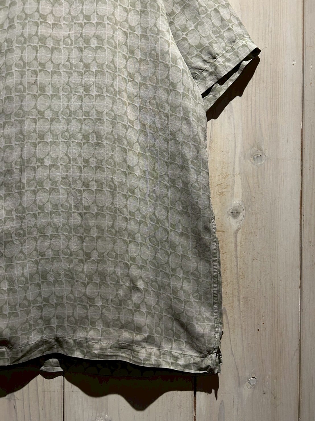 古着では定番の抽象的な柄を載せた柄シャツとはまた異なる印象を与える、高いデザイン性を誇る当店ならではの逸品となっております。