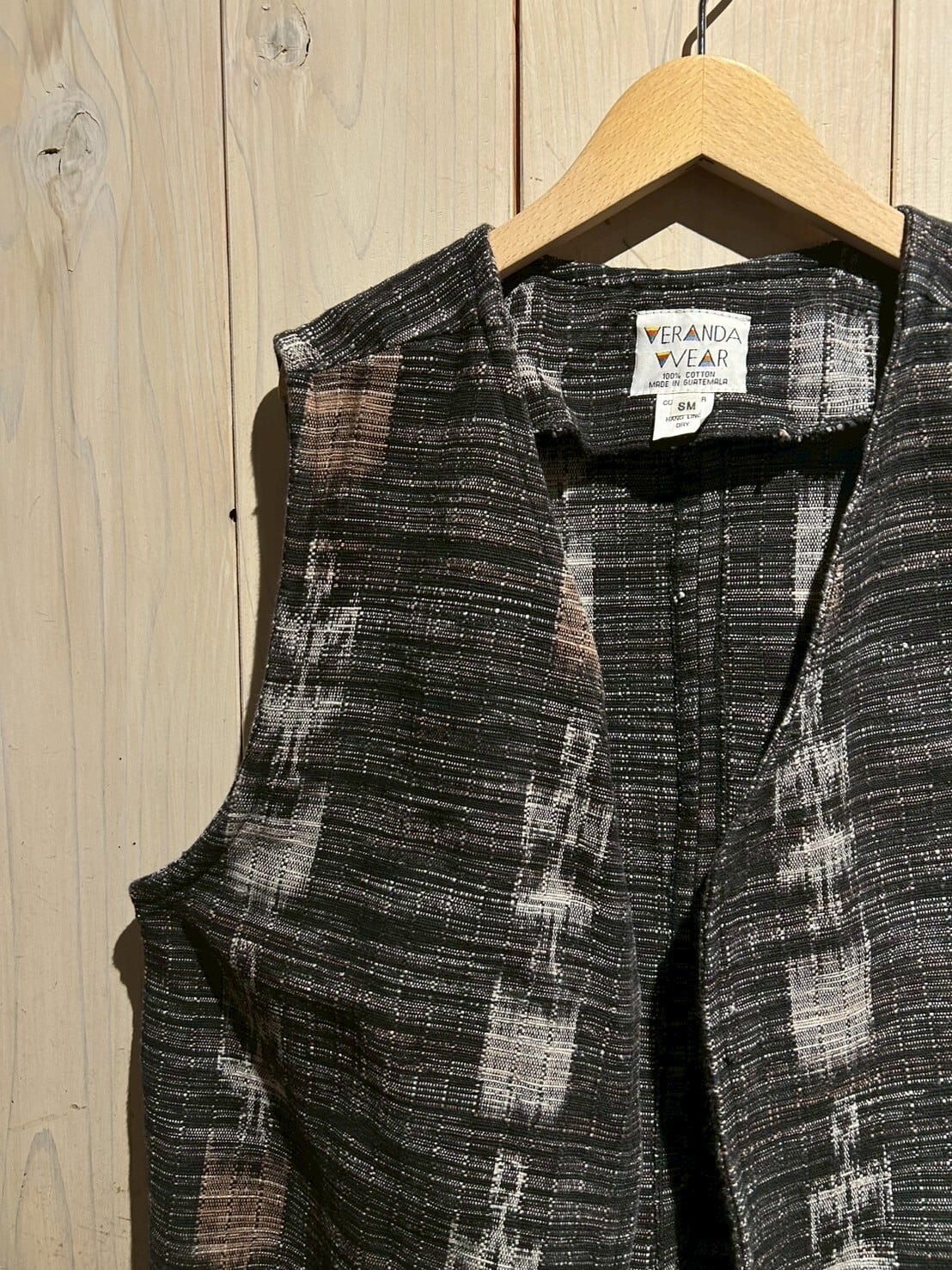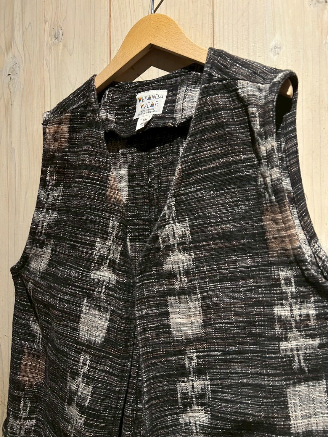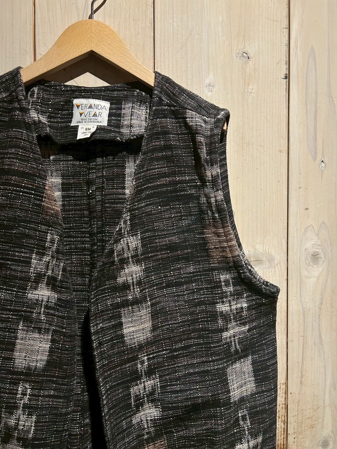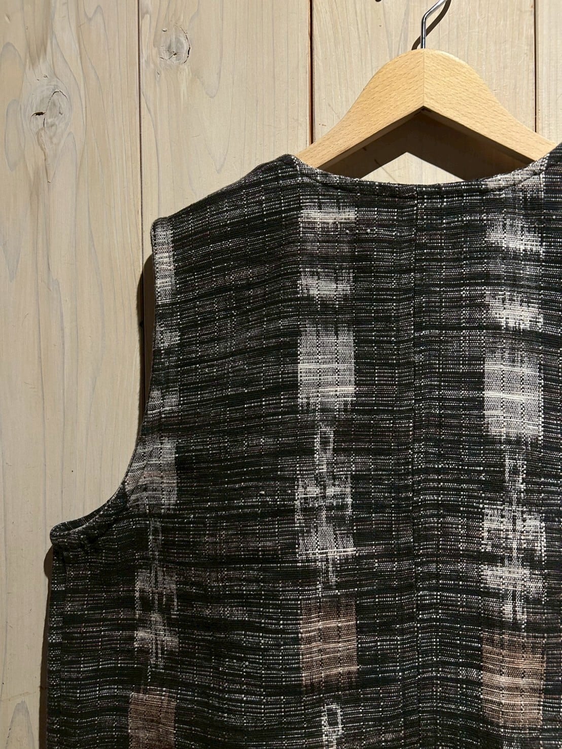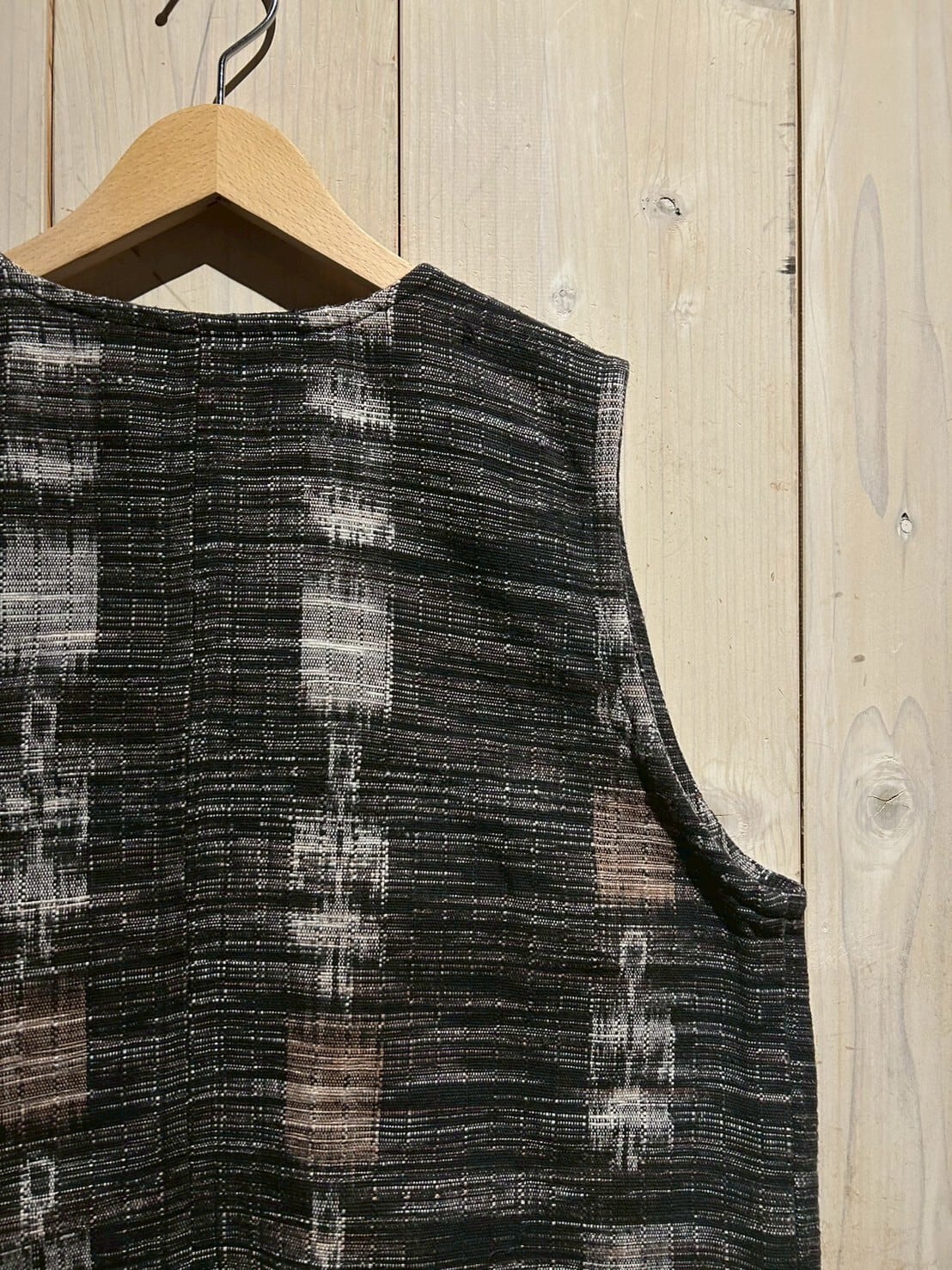 グアテマラ地方の伝統的な織を用いたボディに、アフリカンなテキスタイルを切り替えたベスト。