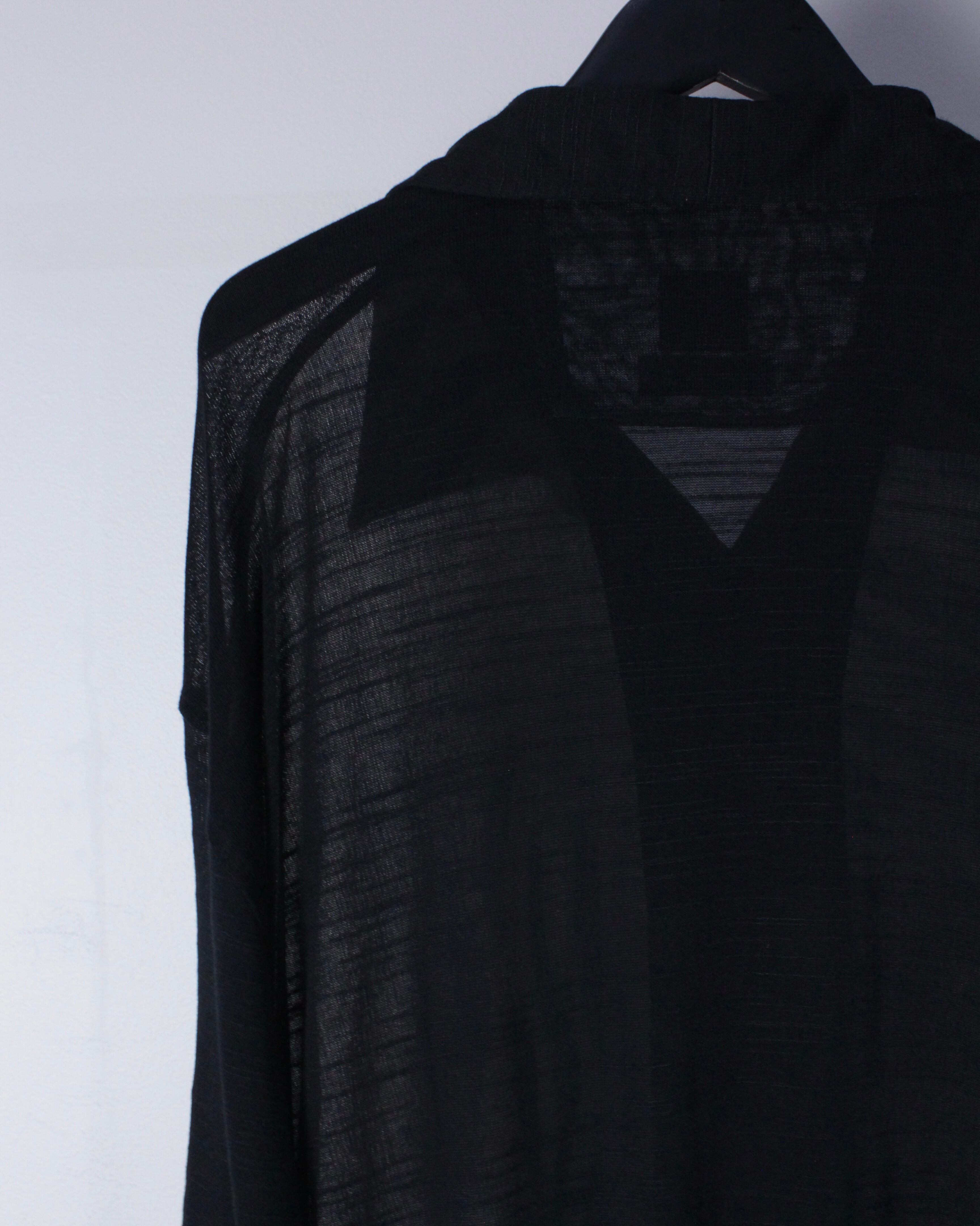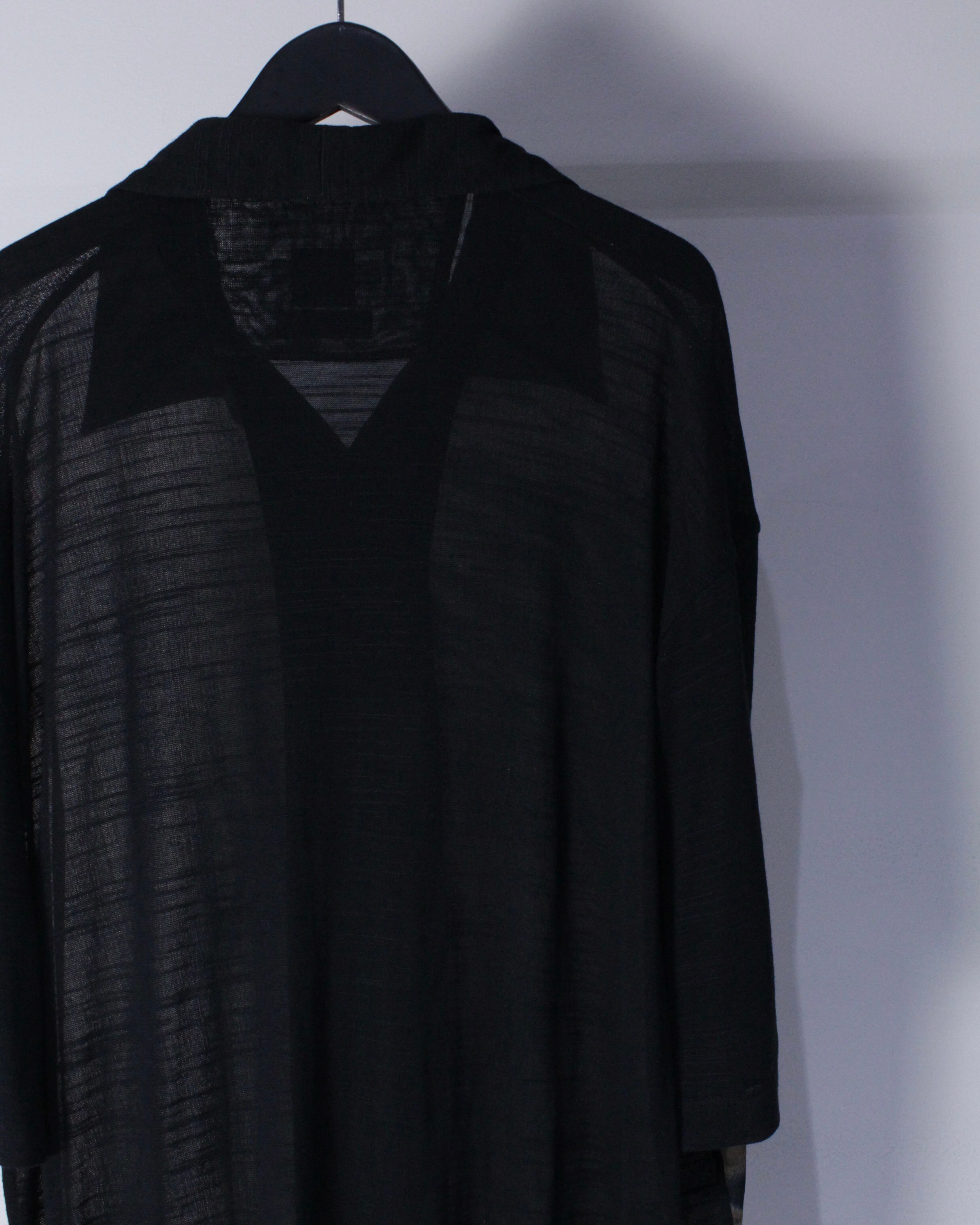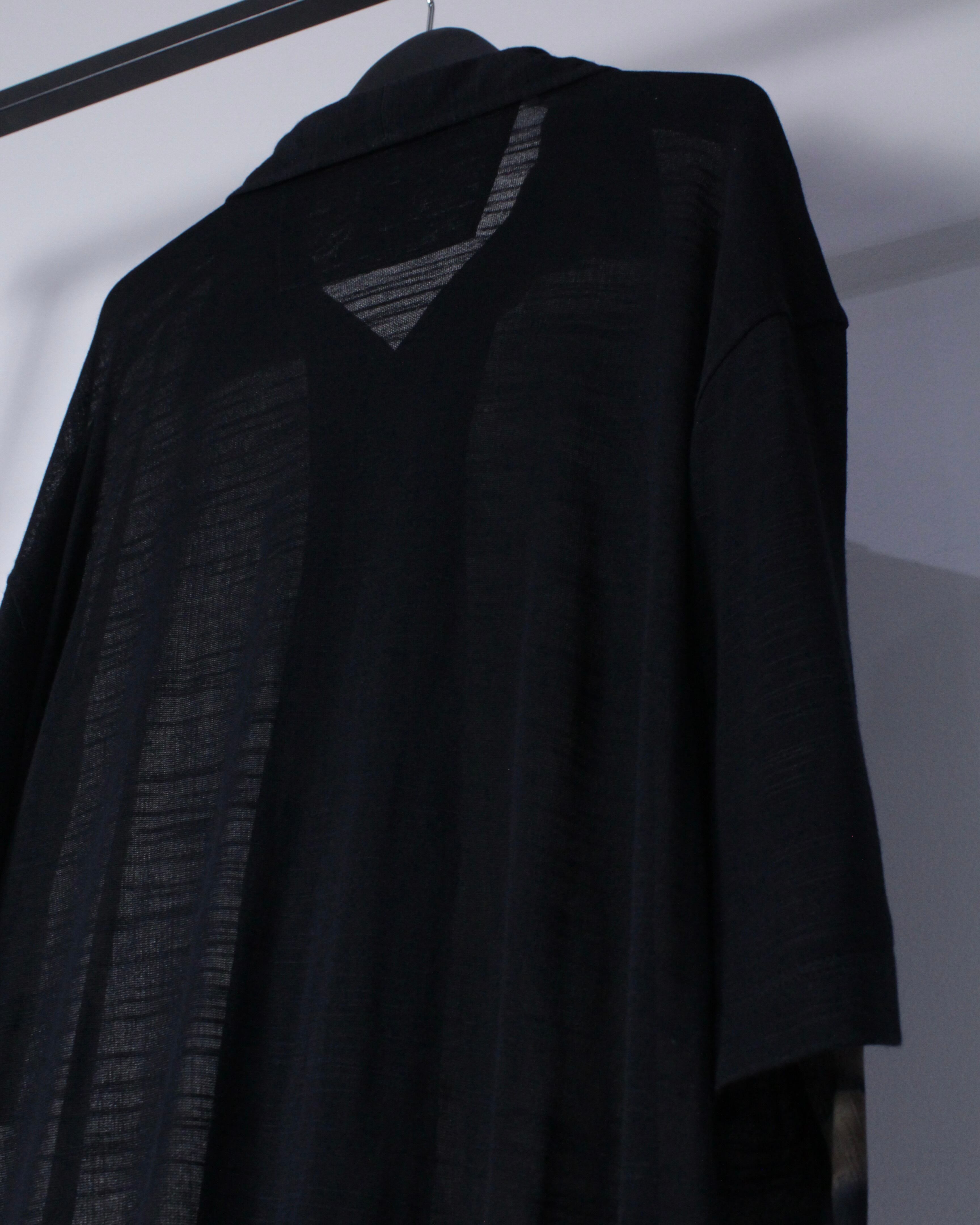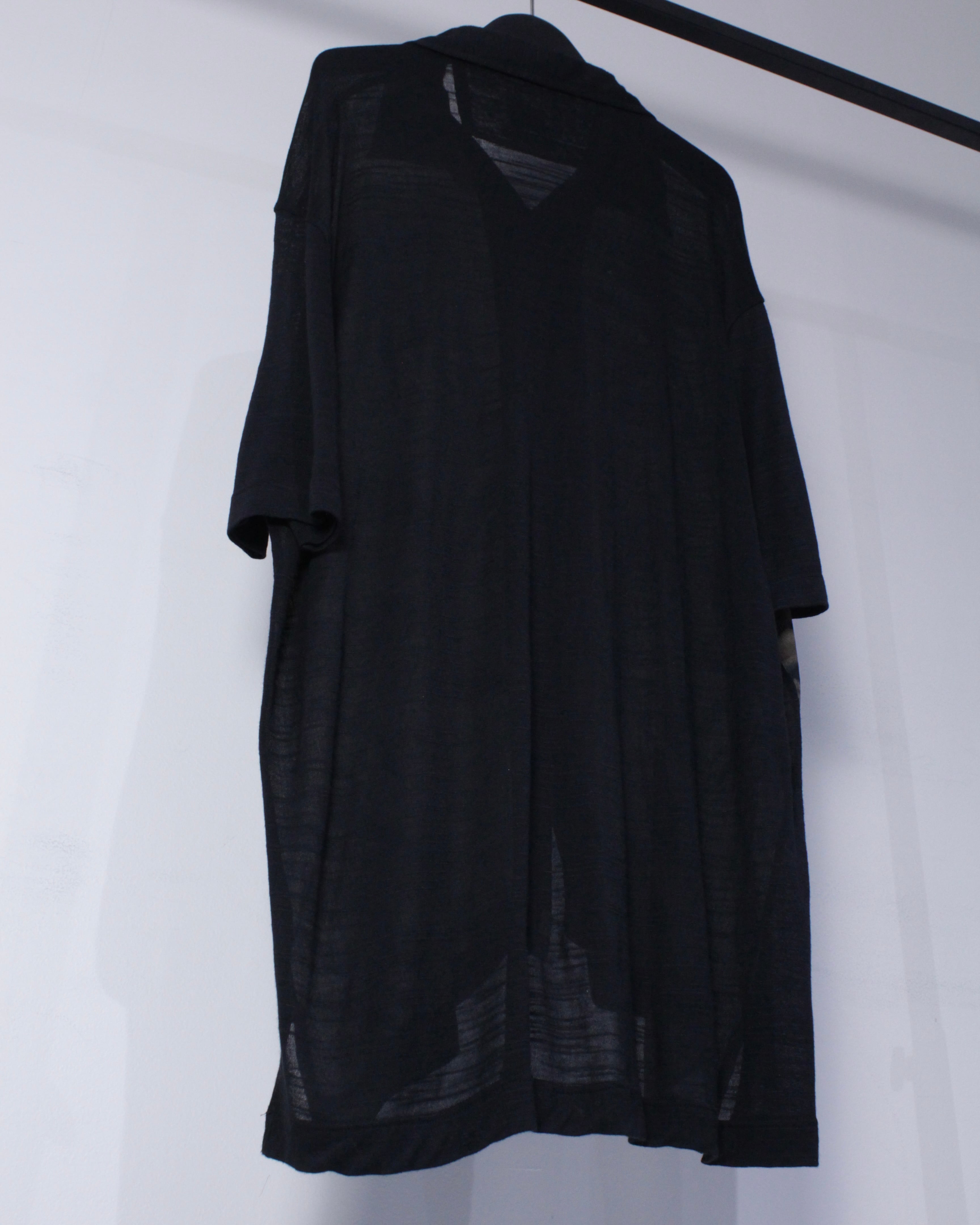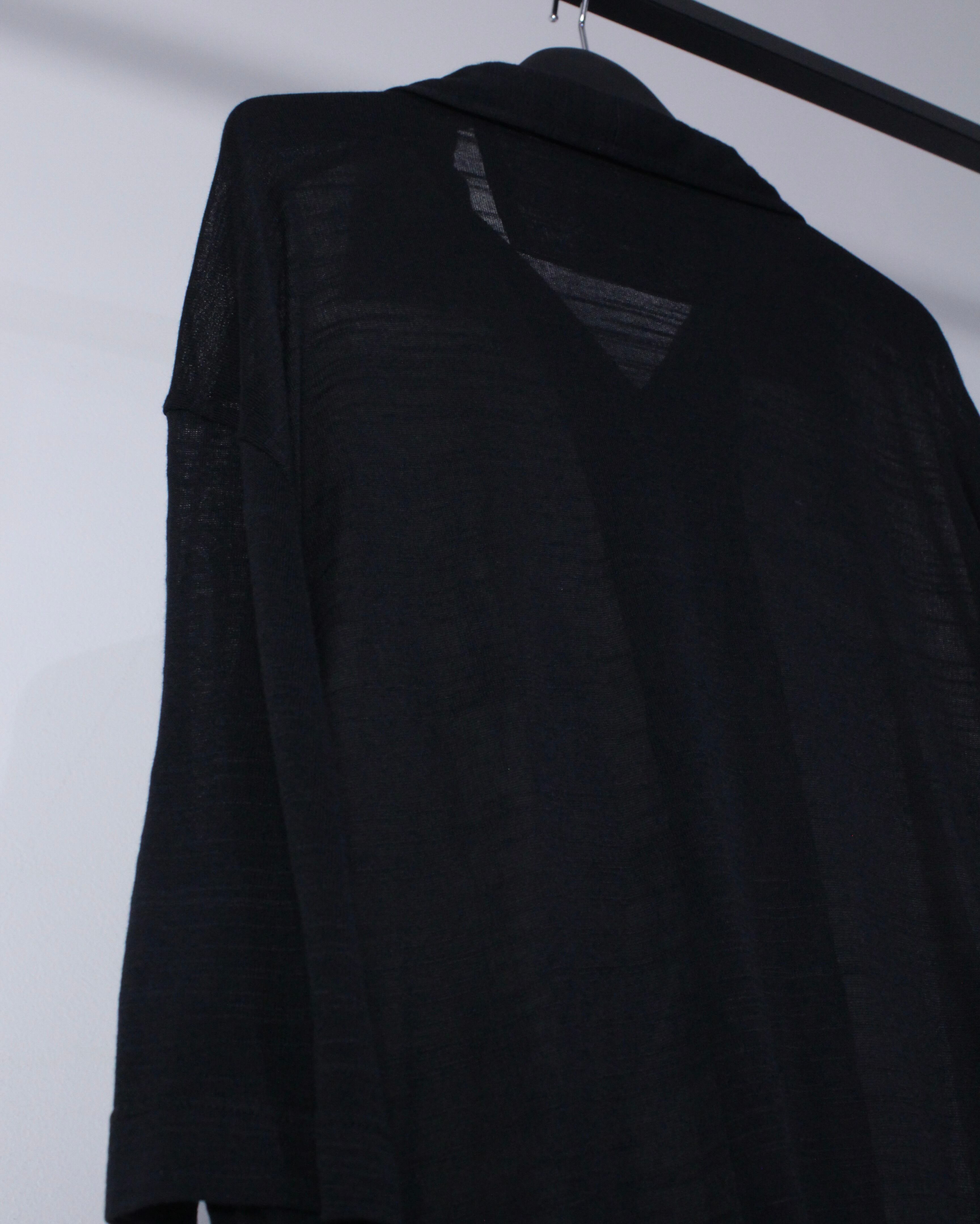 オープンカラーにルーズなサイジングで夏場にはTシャツやタンクトップの上からガバッと羽織るだけで完璧。色物や柄物を中に仕込んでシアーの透け感を活かしたレイヤードスタイルなんかも洒落てるかと。