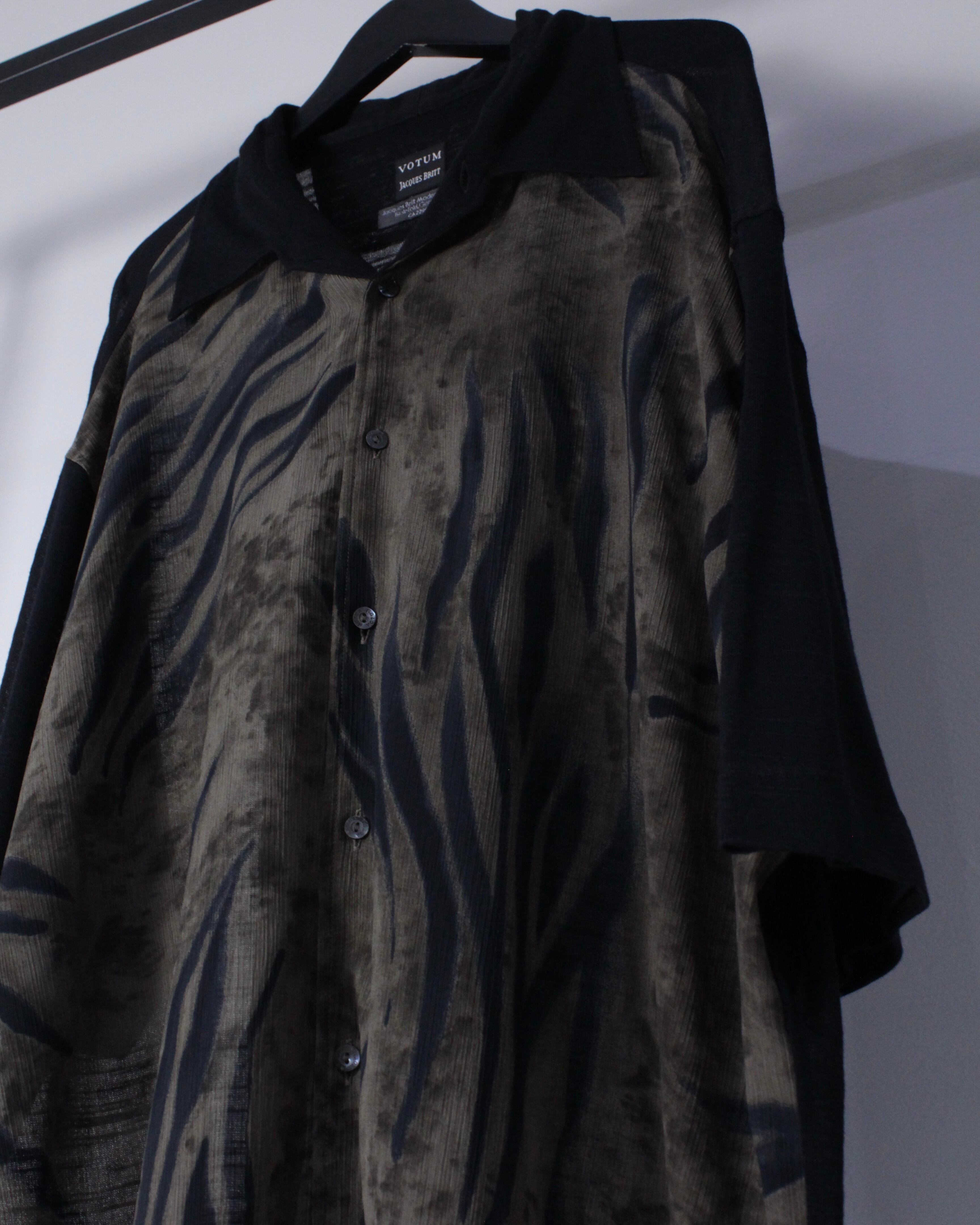 ブラックのシアーボディをベースに、どこか退廃的かつアーティスティックな雰囲気を漂わせる半袖シャツをご紹介。