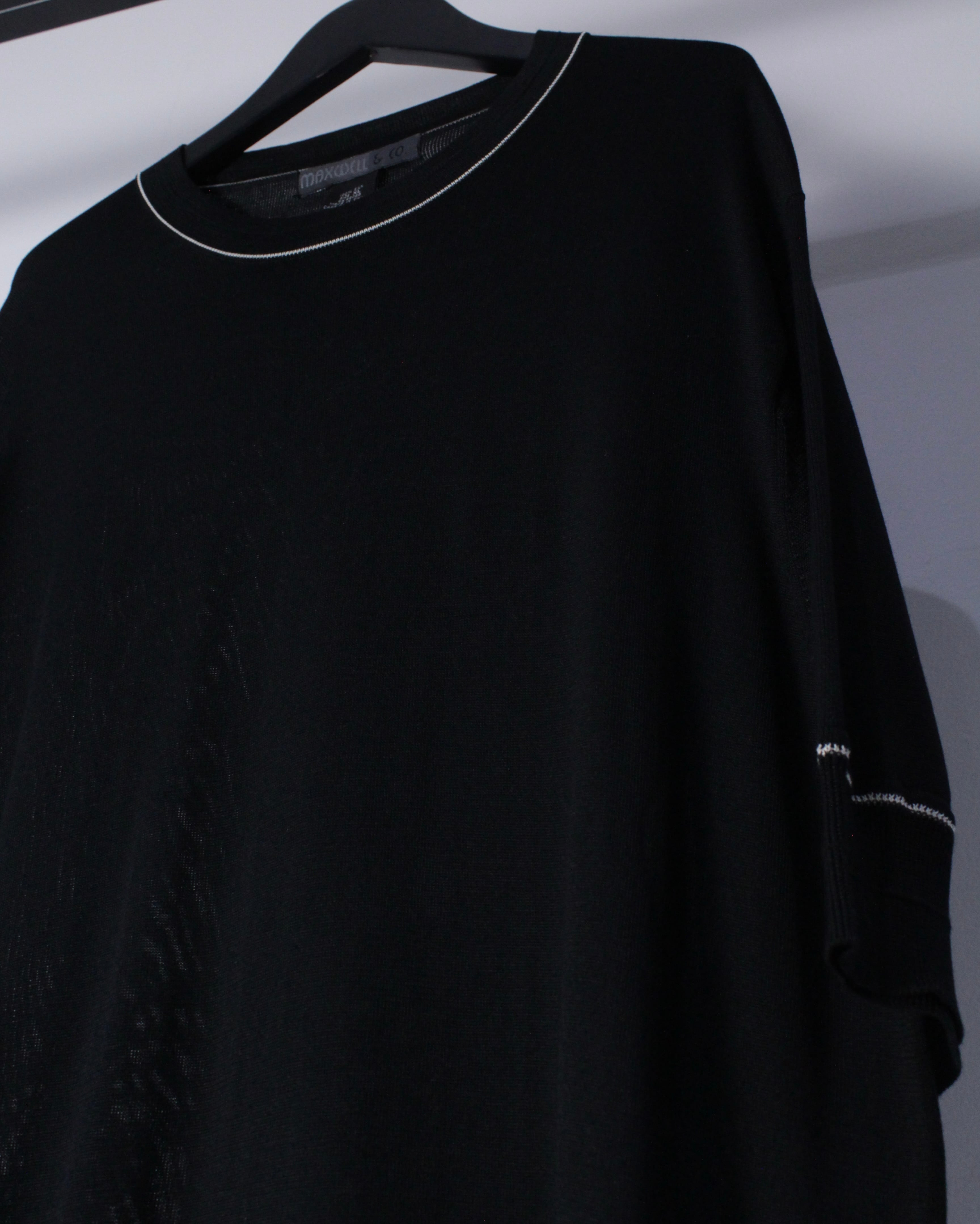 首元、袖口、裾には白のラインの至極シンプルな仕上がり。シルクを用いた事で上質な光沢を放ち、洗練された雰囲気を放っています。