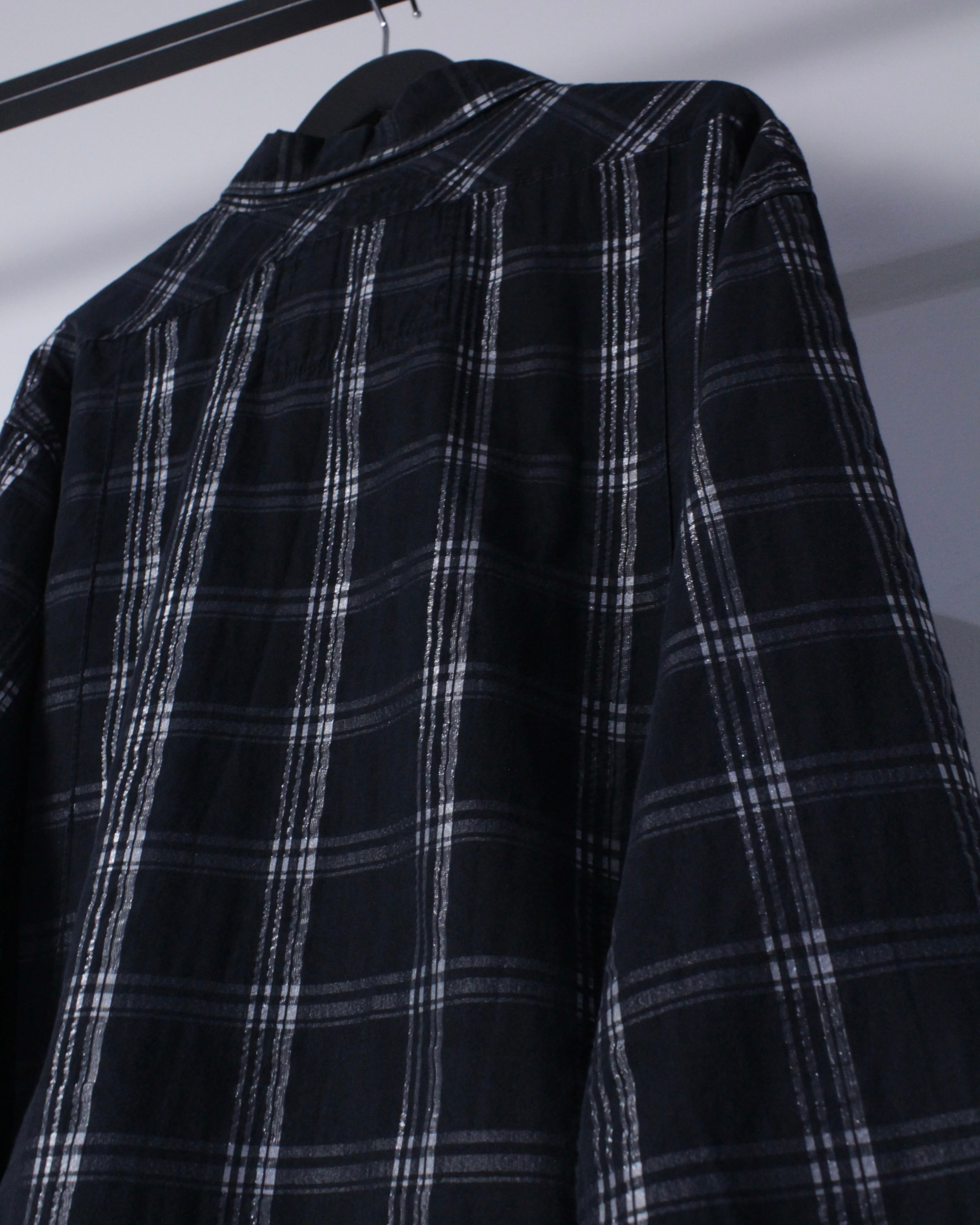 定番のチェックシャツでも銀糸を用いた事でモードなアイテムへと昇華。光の当たり加減で光沢を放つチェックが超洒落てます。