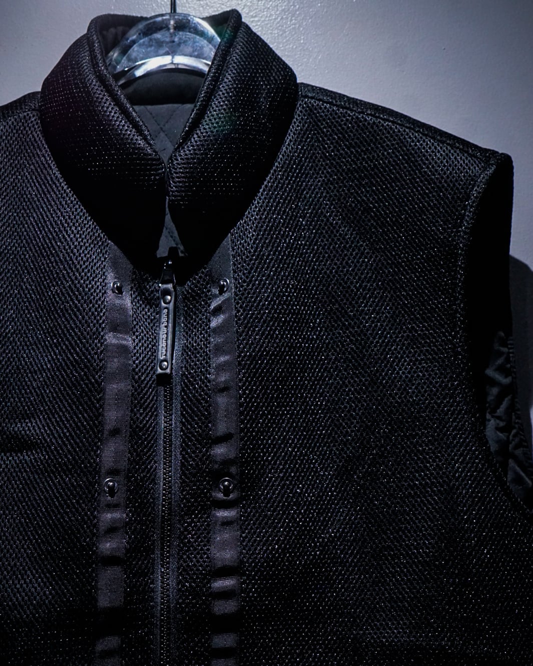 キルティングとメッシュを裏表で切り替えた、リバーシブルのベスト。