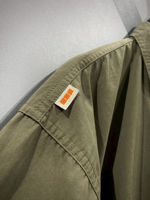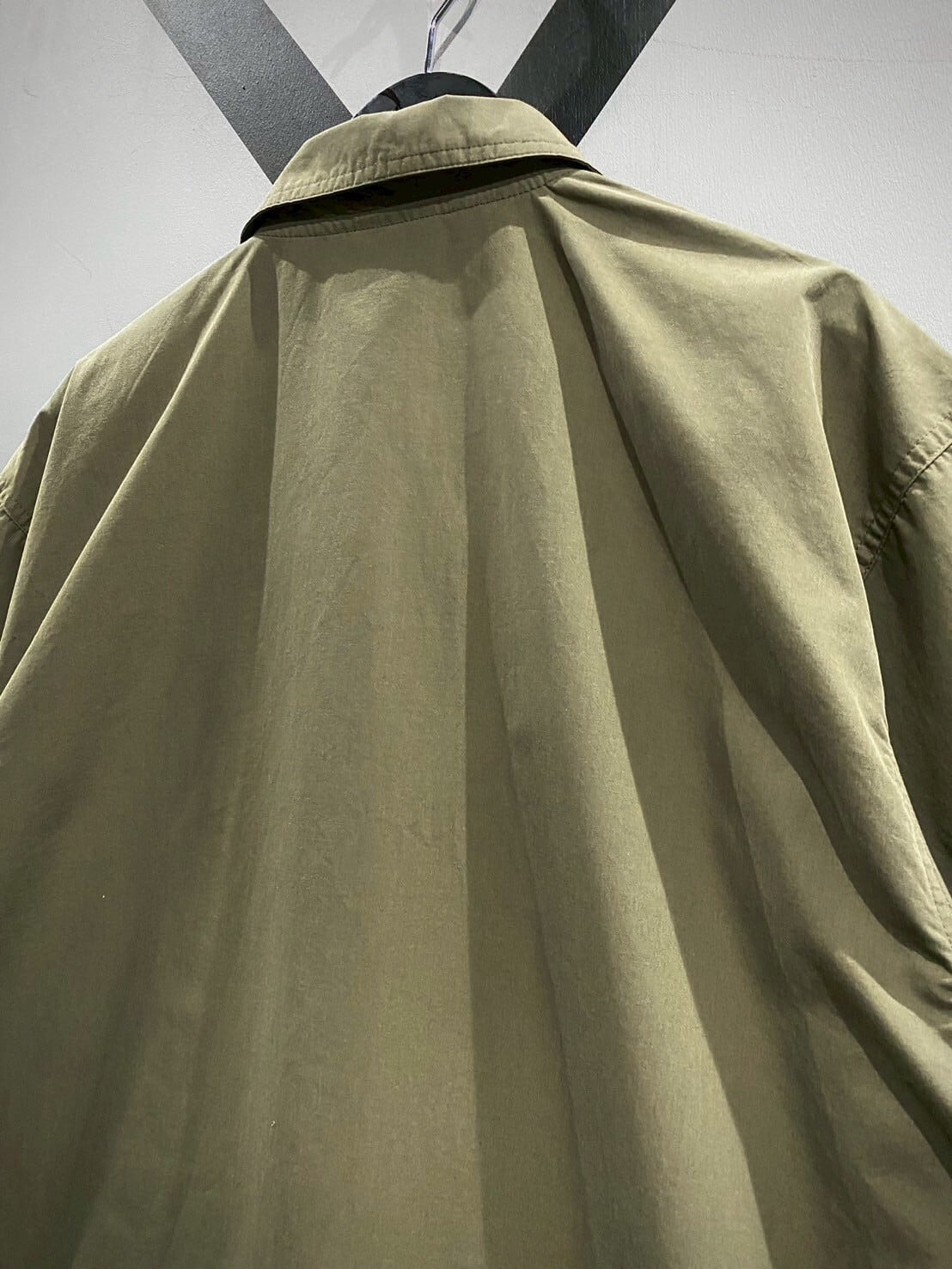 左胸にはブランドネームの刺繍にジップポケットのギミック。フロントは比翼仕立てでデザインを引き立て、ミニマルで洗練された雰囲気を漂わせています。