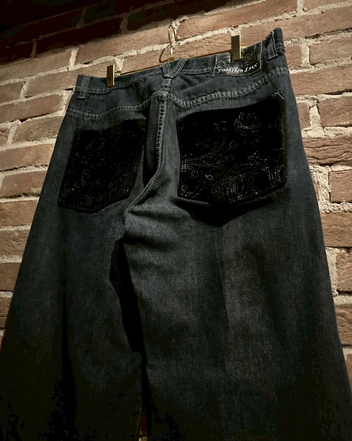 バックポケットに切り替えられたベロア部分には星や矢印、ペイズリー調の柄を刺繍で刻み込んだ、稀有な素材使いに高いデザイン性を併せ持った1本。